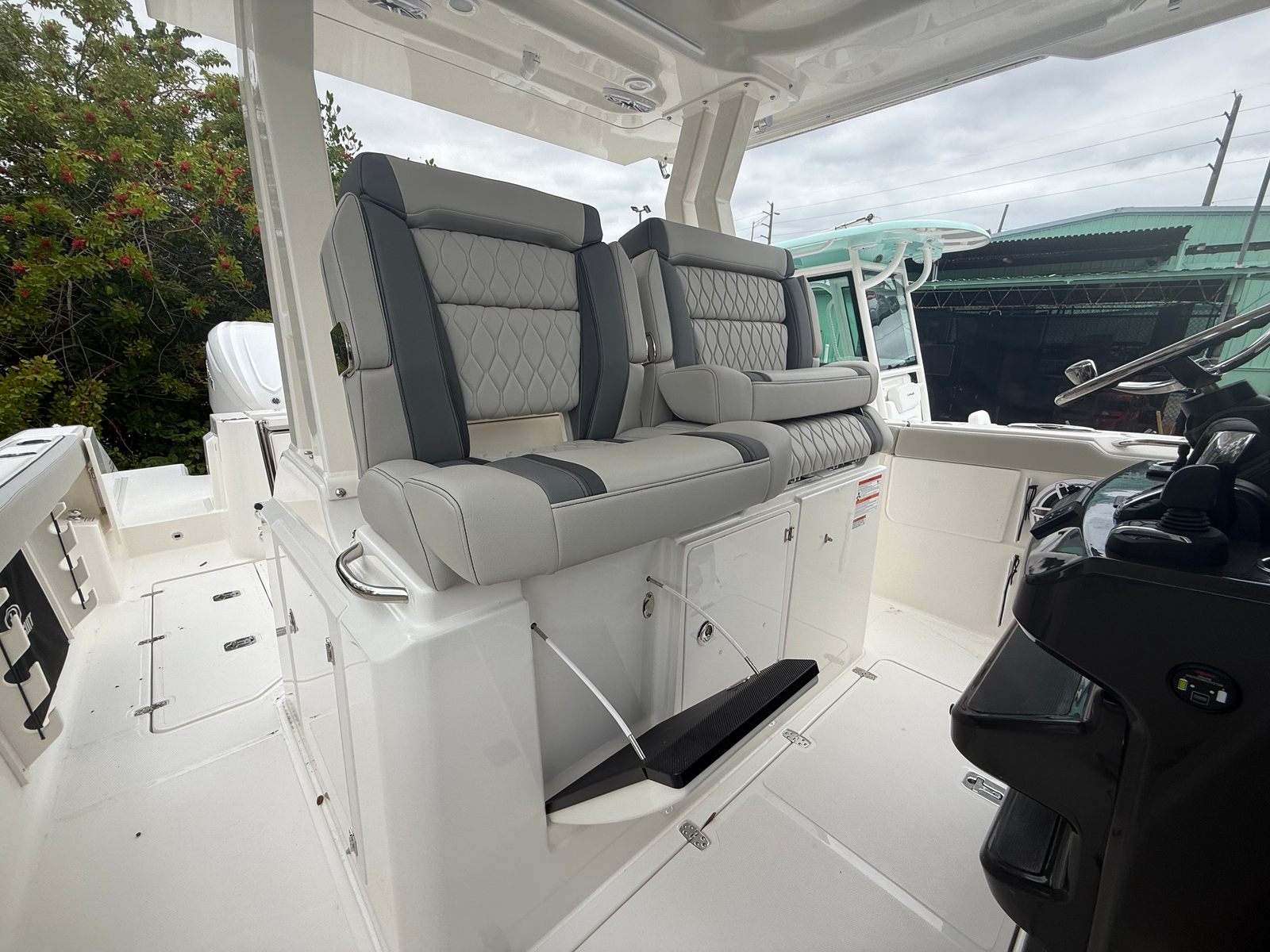 Power and precision define the Pursuit S 328’s performance. Equipped with twin Yamaha Pearlescent White F350USA2 engines, this Center Console boat delivers a combined 700 horsepower, ensuring exhilarating speed and responsive handling in any conditions. The Helm Master Full Maneuverability system provides intuitive control, making docking, navigating tight spaces, and handling open water effortless and enjoyable. Whether you’re chasing the horizon or cruising along the coastline, the S 328 offers a smooth, stable ride that inspires confidence and excitement.