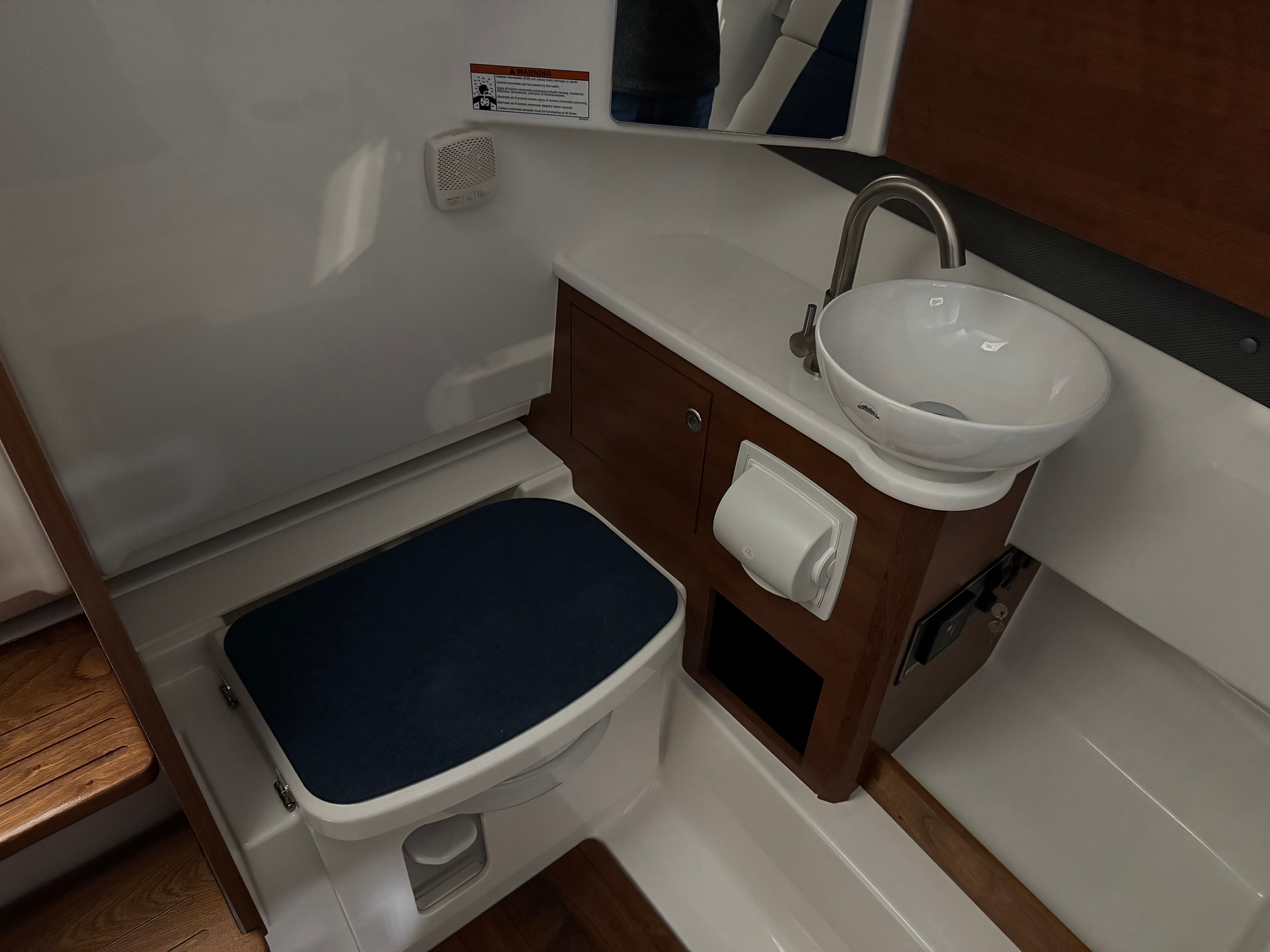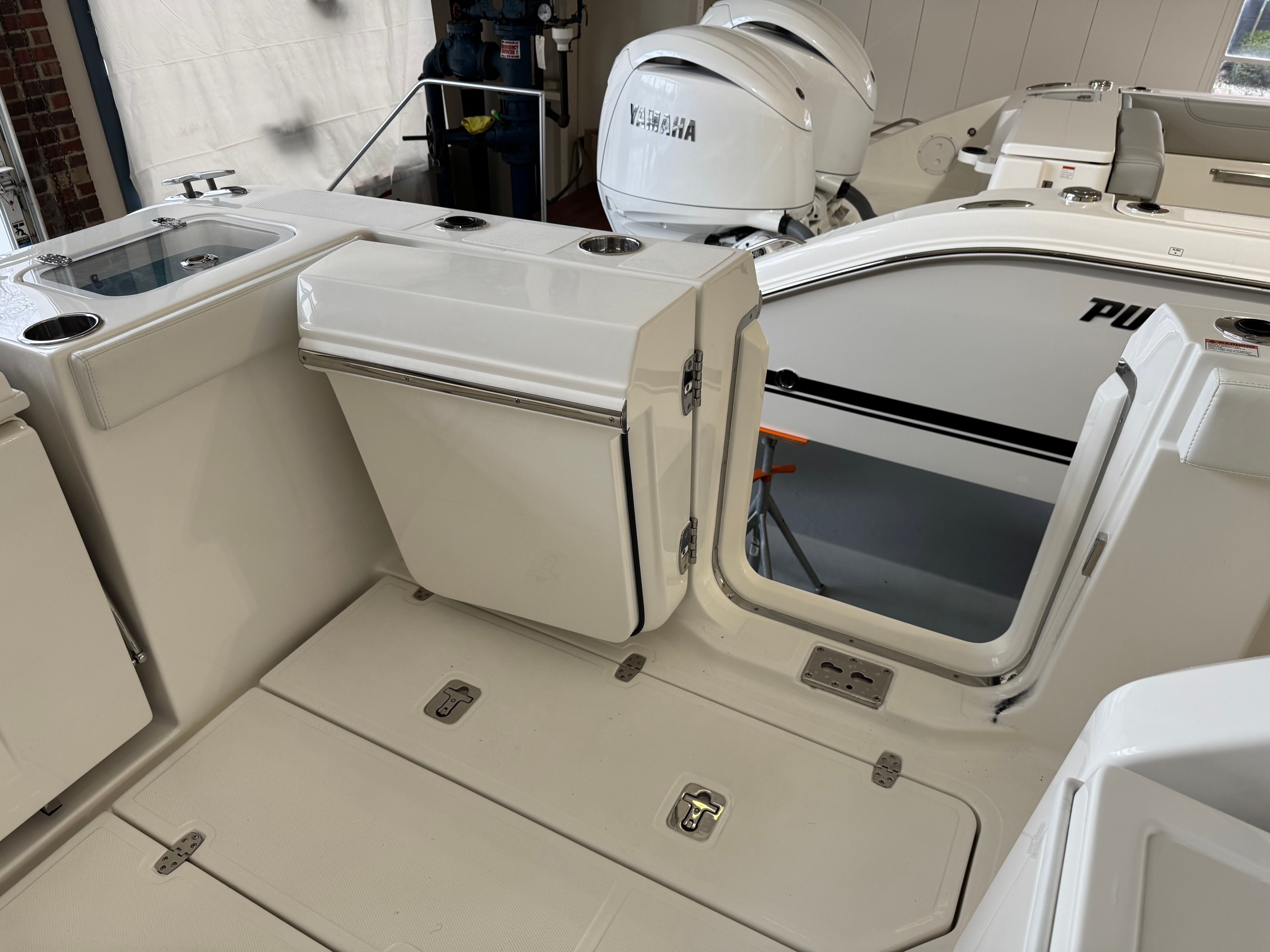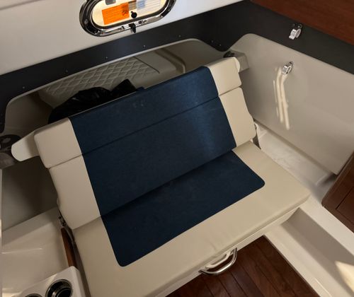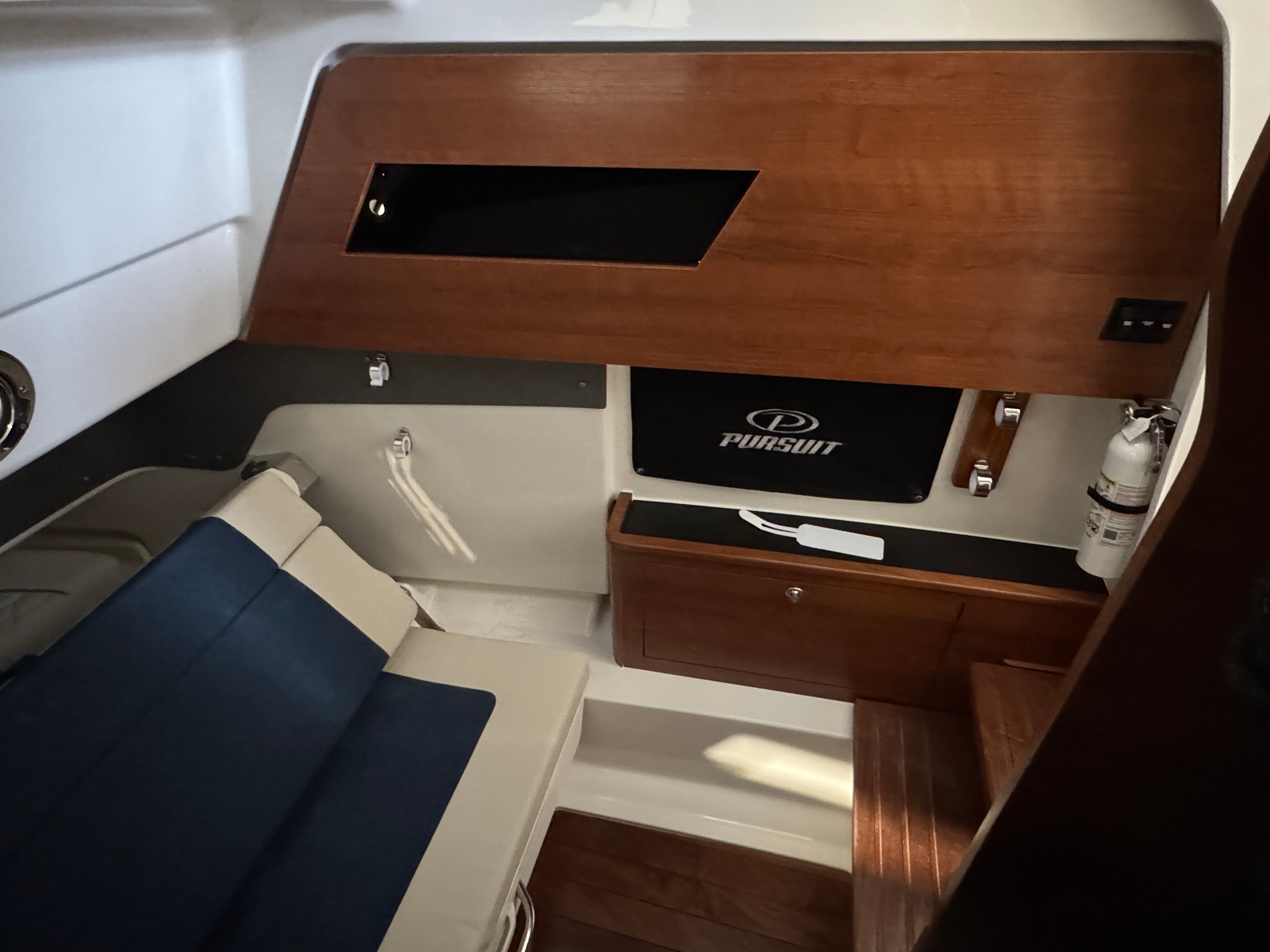 The Pursuit S 328 is as practical as it is stylish. The joystick control simplifies docking, making it easy to maneuver in marinas or tight slips. The efficient twin Yamaha F350 engines offer impressive performance without compromising on fuel economy, allowing you to spend more time on the water and less time refueling. The cockpit drawer 12V refrigerator adds a touch of convenience, ensuring your snacks and beverages are always within reach. The boat’s thoughtful layout provides plenty of storage for gear, water toys, and personal items, keeping the deck clutter-free and organized. The durable materials and high-quality finishes are designed to withstand the rigors of marine life, ensuring your investment remains in top condition for years to come.
