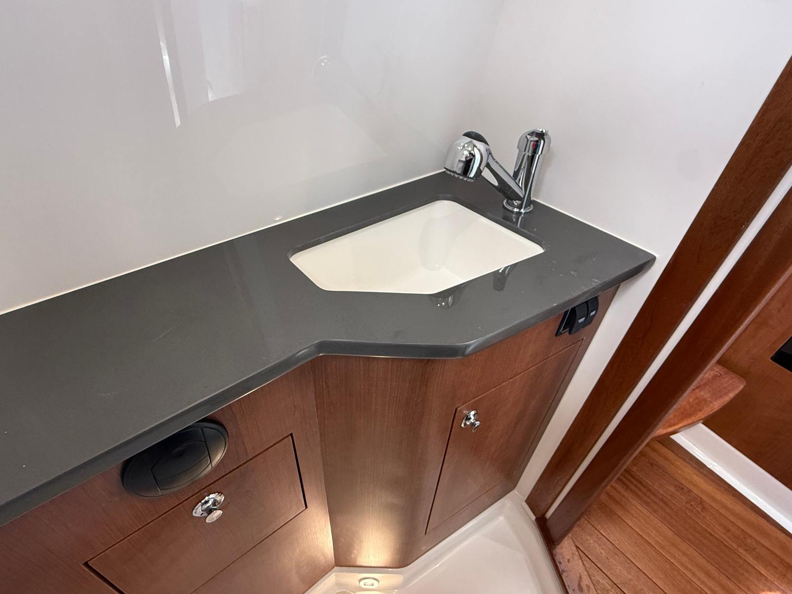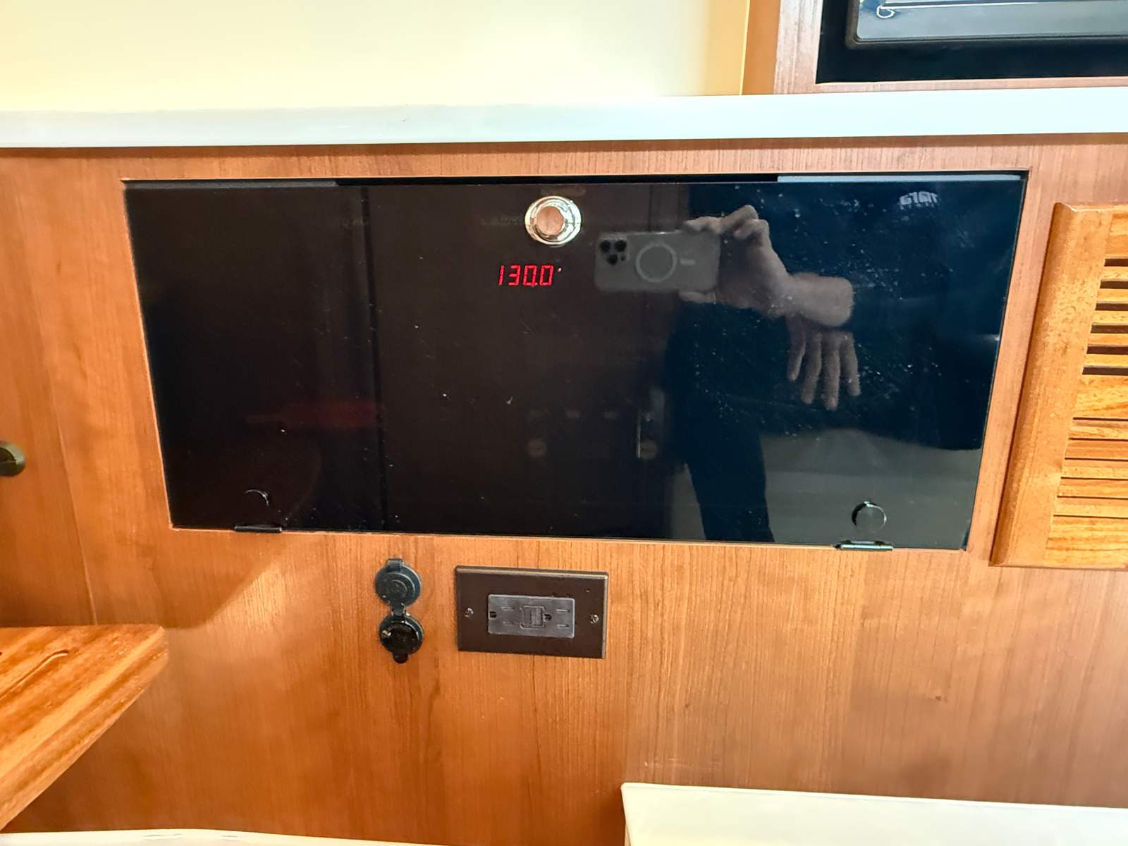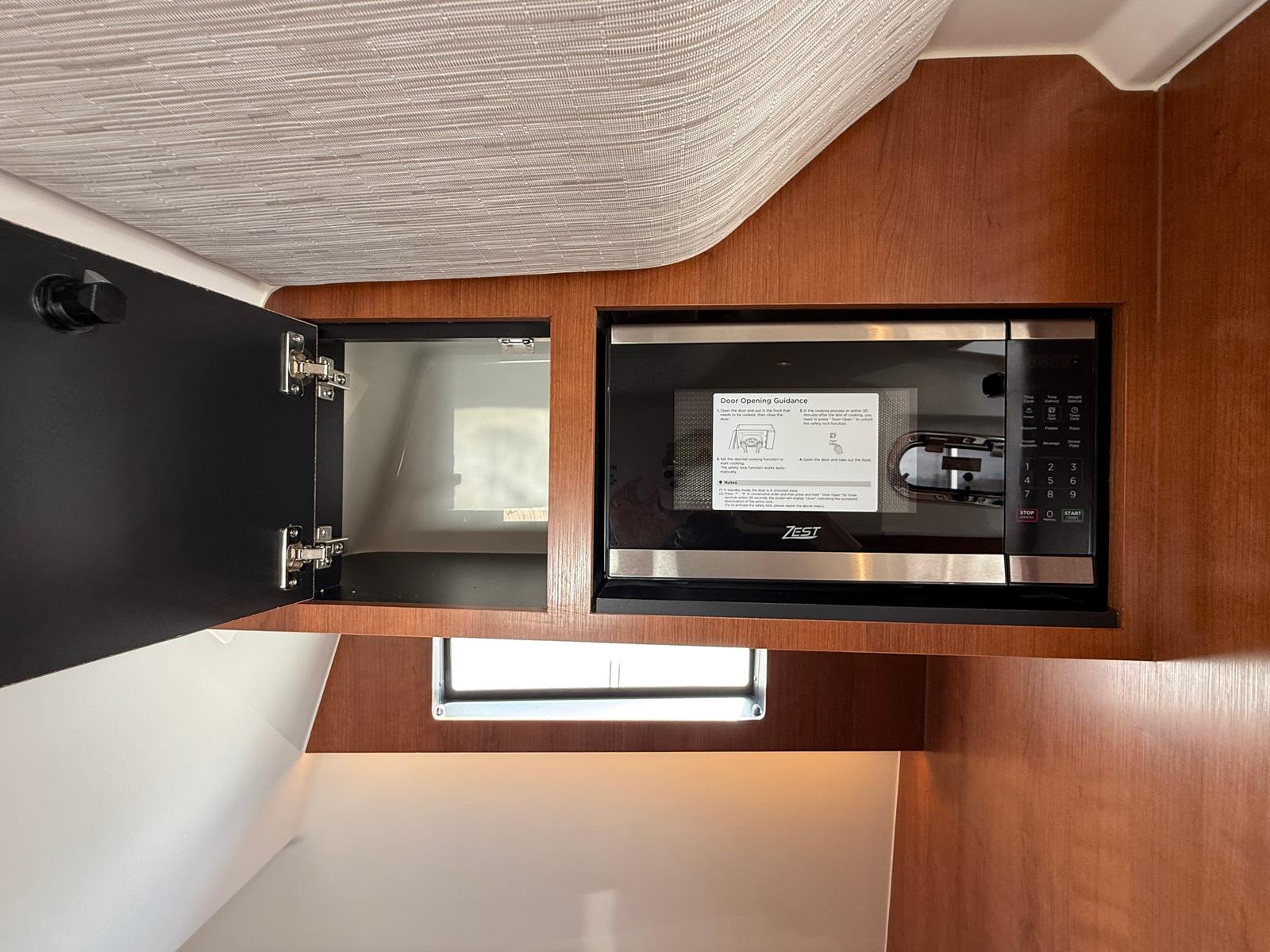 - Generator 120V/60Hz (5.0kW Fischer Panda Genset (16 gal diesel tank), Includes one GFI Outlet and 0.7 cu. Ft. Microwave (replaces upper storage in cabin)