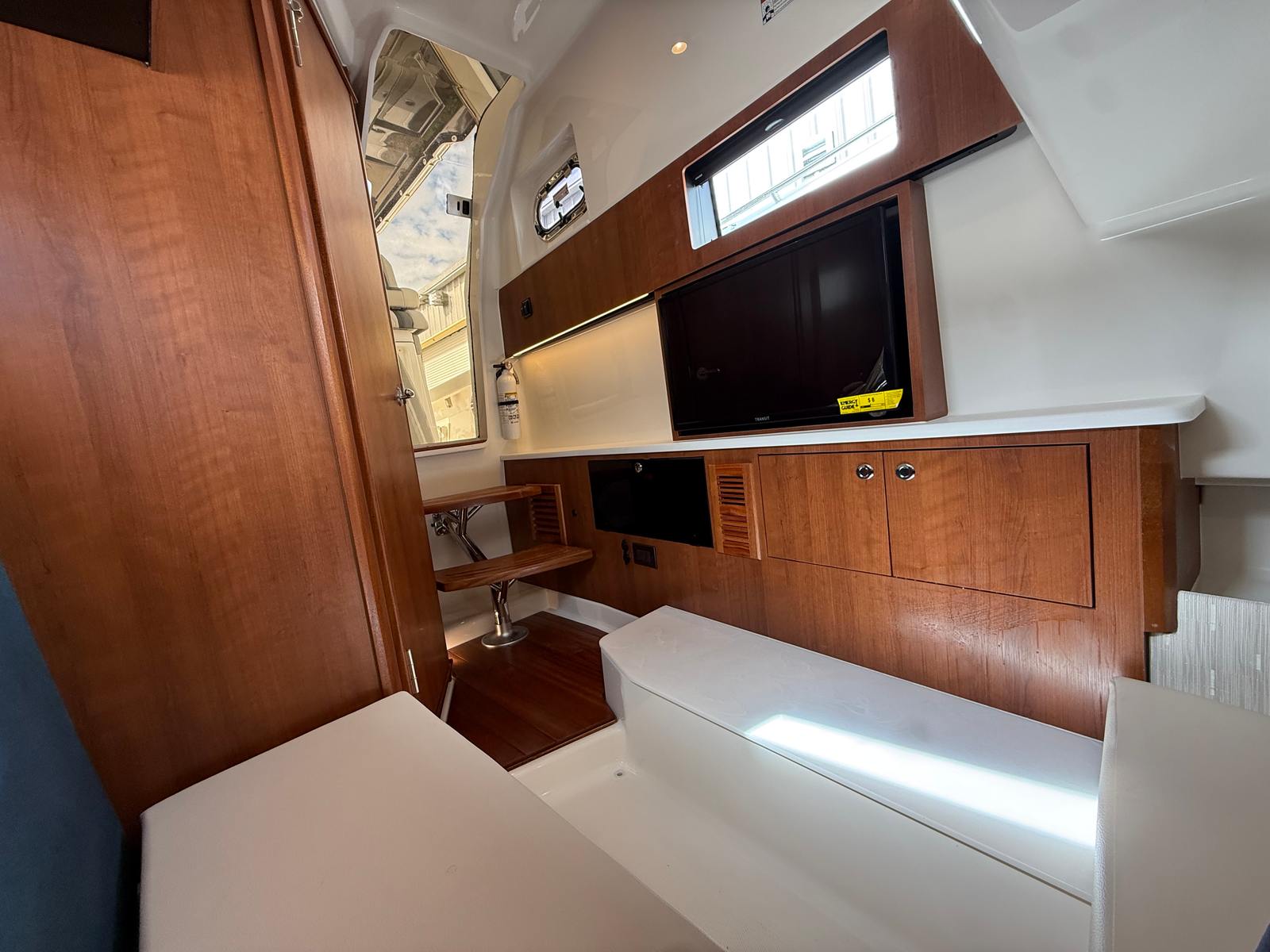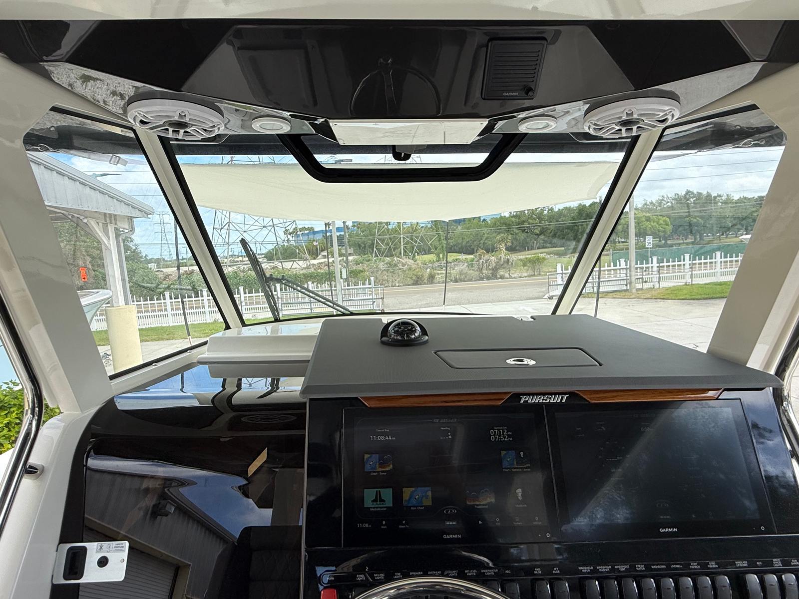The Pursuit S 358 is packed with premium features designed to enhance every moment on the water. The Fresh White hull and Platinum bootstripe offer a timeless and sophisticated look, while the Carbon helm ensures a modern and functional command center. Inside, the Tranquil Sea fabric and Sea Salt exterior vinyl upholstery create a relaxing and stylish environment for both captain and guests.Comfort is a priority on the S 358, with 110v/60Hz cabin air conditioning featuring reverse cycle (6,000 BTU) to keep the interior cool and comfortable, no matter the weather. For those who love entertaining in the cockpit, the 110V/60Hz cockpit air conditioning with reverse cycle (16,000 BTU) ensures everyone stays refreshed during warm summer days.Enjoy the sun in style with the bow Mediterranean-style sunshade, which is easily stowable when not in use. For added convenience and luxury, the custom hardtop features an integrated stainless steel retractable Makefast sunshade with one-touch operation, allowing you to adjust your shade preferences effortlessly.