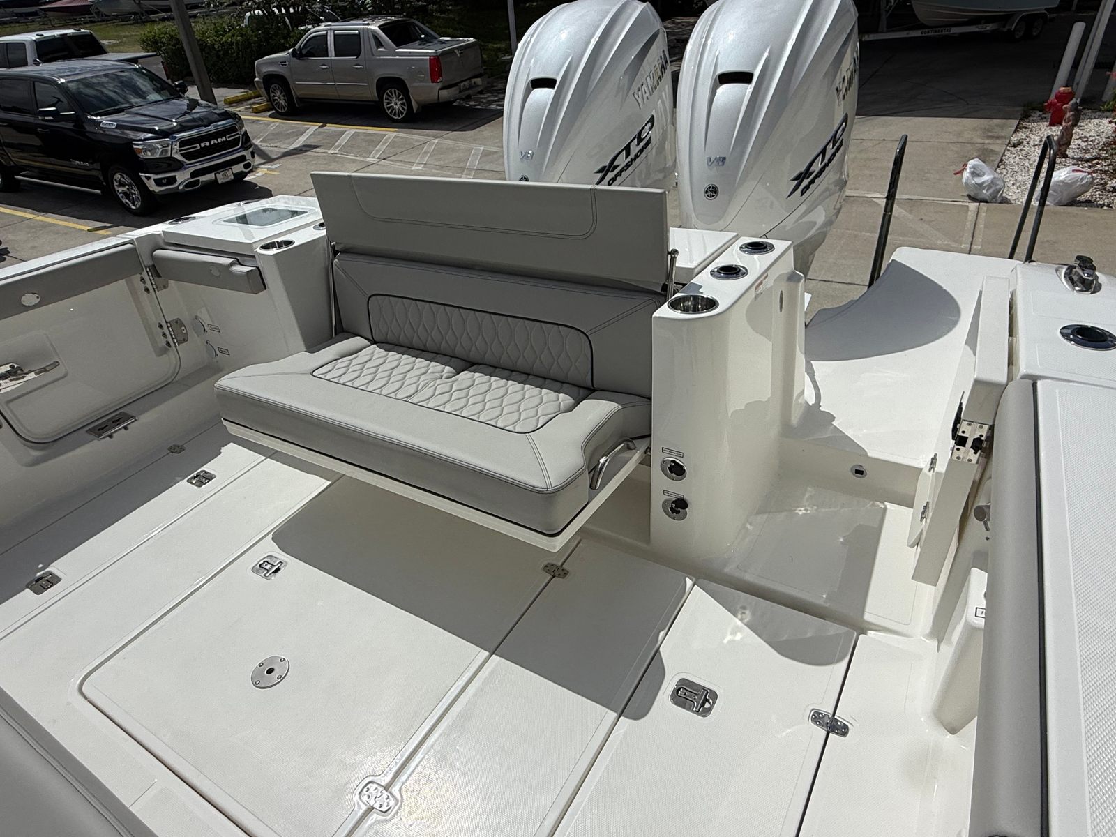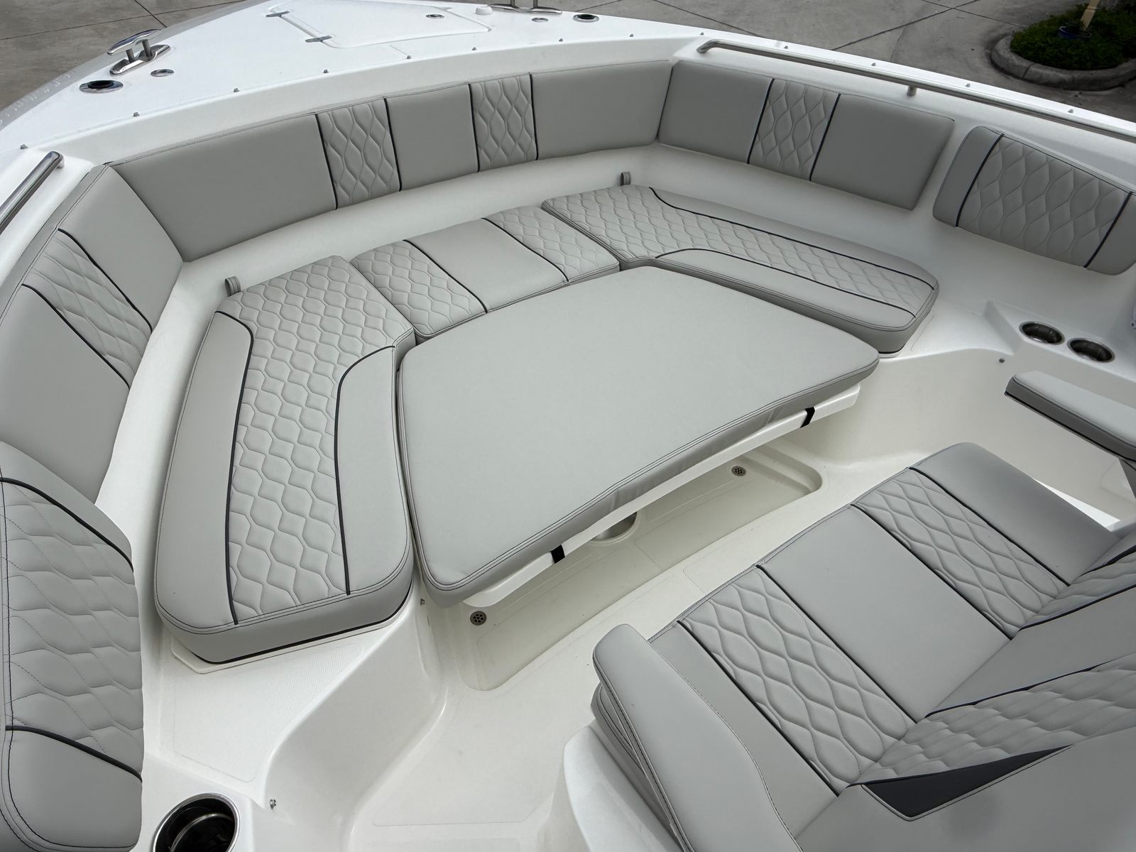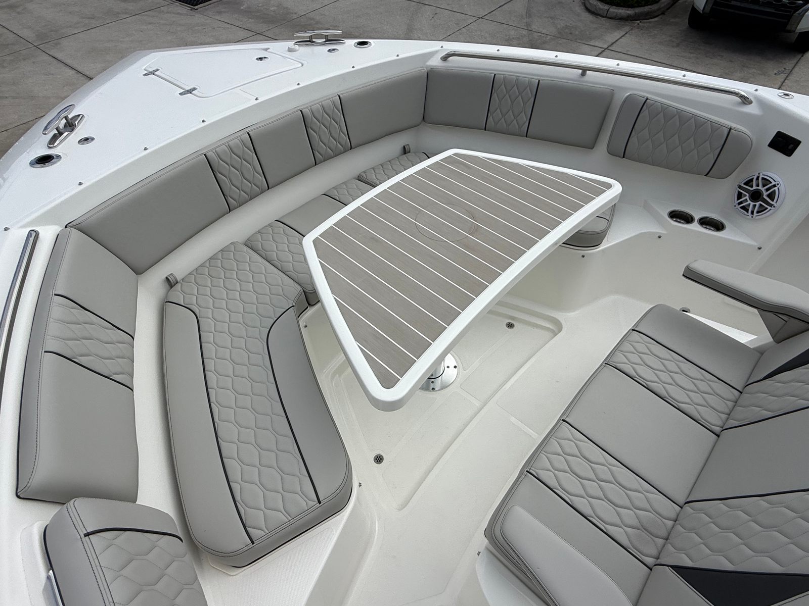 When it comes to performance, the Pursuit S 358 stands out with its twin Yamaha F450XTO outboard engines, delivering a combined 900 horsepower. This powerhouse setup ensures exhilarating acceleration, impressive top speeds, and smooth handling, making it a top contender among center console boats for sale. Whether you’re cruising along the coastline, heading offshore for a day of fishing, or enjoying water sports with family and friends, the S 358’s robust engines provide the confidence and capability you need for any adventure.
