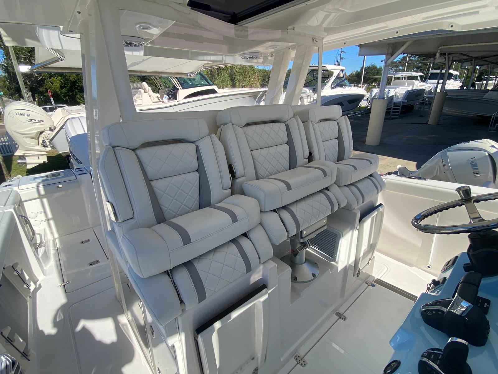 Power and precision are at the heart of the Pursuit S 358. Equipped with twin Yamaha XF450XTO engines, this Center Console is built for speed, agility, and reliability. With a combined 900 horsepower, you’ll experience thrilling acceleration and smooth cruising, whether you’re heading offshore for a fishing expedition or enjoying a leisurely cruise along the coastline. The advanced Yamaha engines are renowned for their efficiency and quiet operation, ensuring that every journey is as enjoyable as it is powerful. The responsive handling and robust construction of the S 358 make it a joy to captain, providing confidence in a variety of sea conditions.