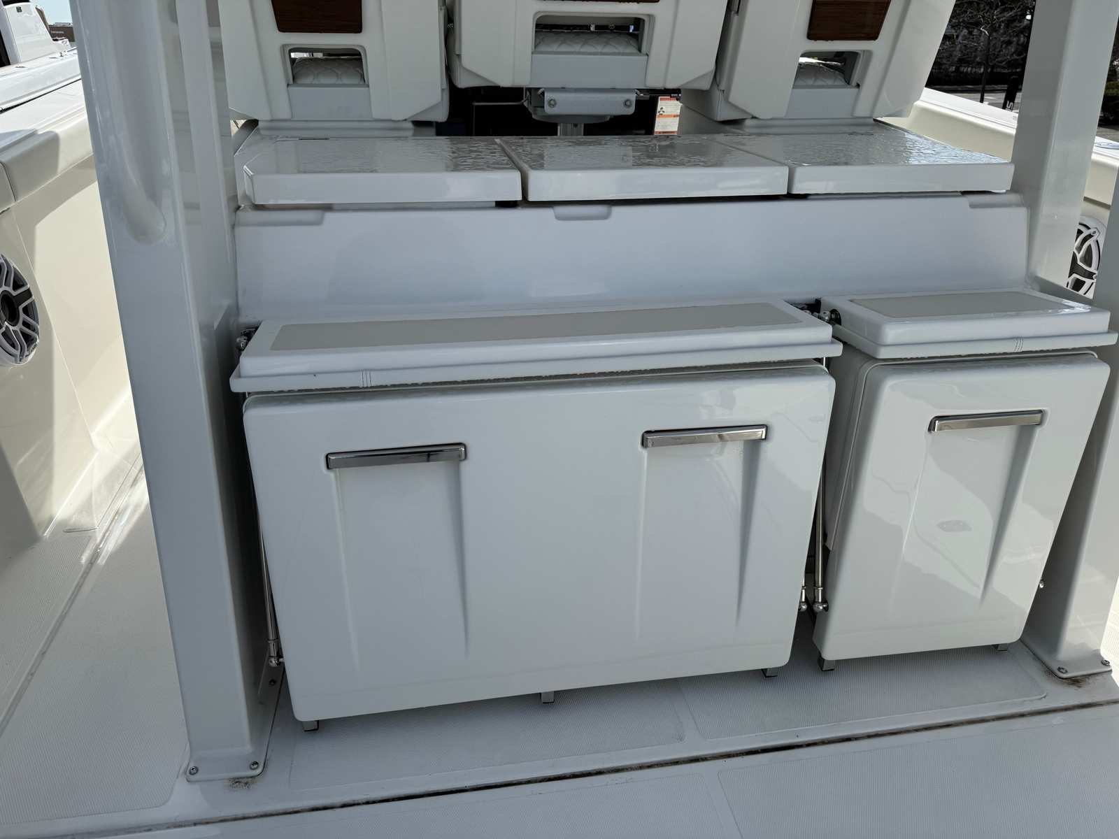 Practicality is at the core of the Pursuit S 358’s design. The manual engine flushing system simplifies maintenance, helping to extend the life of your engines and keep them running smoothly. The generator provides reliable power for all your onboard systems, so you can enjoy extended trips without worry. The hardtop-mounted rod holders and outriggers make it easy to switch from cruising to fishing at a moment’s notice, while the spacious deck offers plenty of storage for gear and supplies.Docking and maneuvering are effortless, thanks to the Yamaha Joystick Control and Helm Master EX system, which provide precise handling in tight spaces. The SeaKeeper 2 Gyro Stabilizer minimizes roll and keeps the boat steady, enhancing comfort for everyone onboard. With its combination of advanced features and user-friendly design, the S 358 is as practical as it is luxurious.