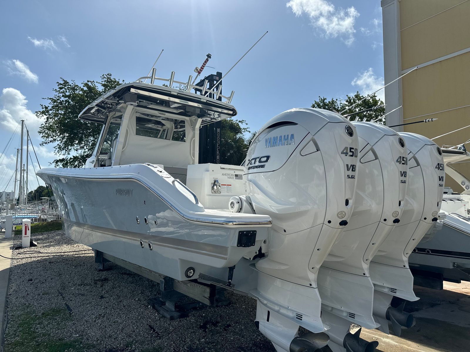 At the heart of the Pursuit S 378 are three powerful engines, delivering a combined 1350 horsepower. This impressive setup provides exhilarating speed, responsive handling, and the confidence to tackle offshore adventures or quick trips to your favorite coastal destinations. The triple-engine configuration ensures optimal performance, whether you are cruising at a leisurely pace or pushing the throttle for an adrenaline-filled ride. The S 378’s advanced hull design enhances stability and efficiency, offering a smooth and dry ride even in choppy conditions. With this level of power and engineering, you can expect a boating experience that is both thrilling and reliable.