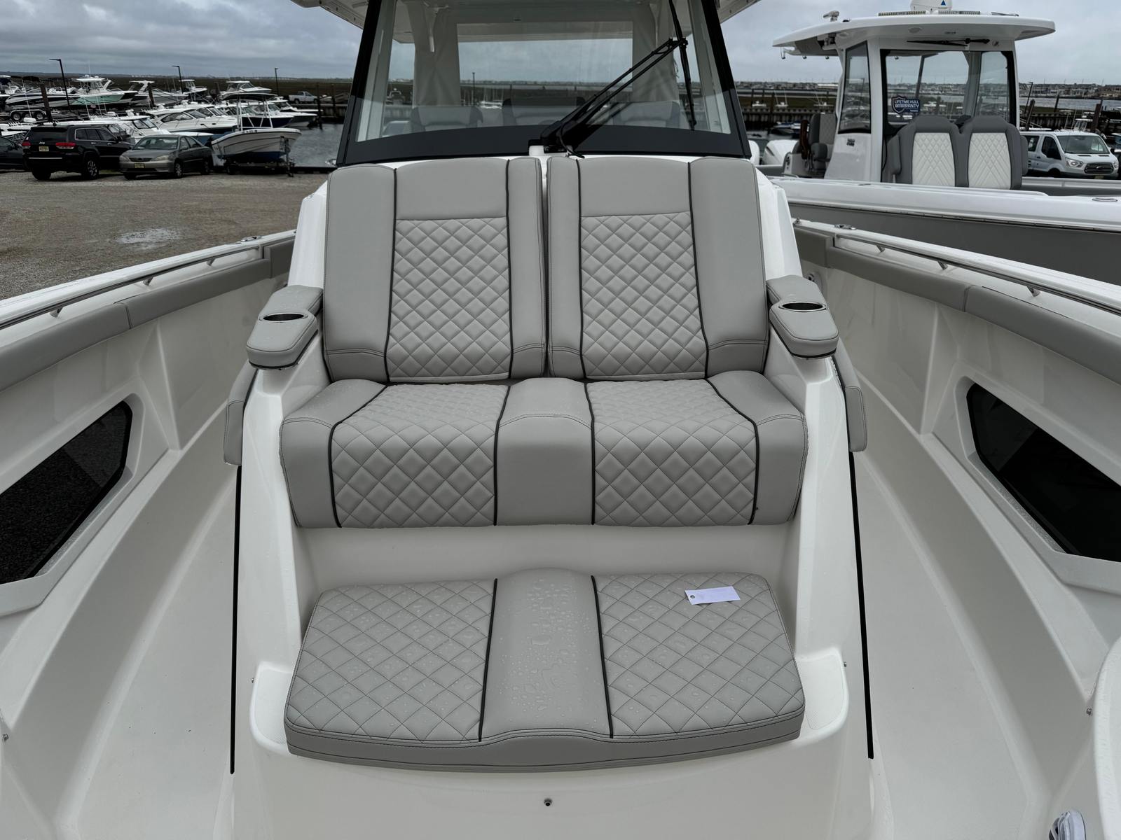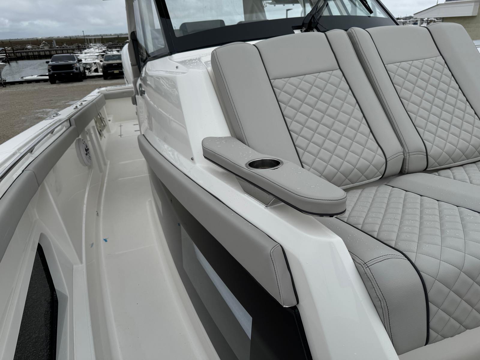 The Pursuit S 378 is loaded with premium features that set it apart from other center console boats for sale. At the helm, you will find a sophisticated electronics suite, including a GARMIN WIDESCREEN 16" DISPLAY package and a second GARMIN WIDESCREEN 16" DISPLAY for enhanced navigation and control. The Garmin Radar Open Array GMR Fantom 54 ensures you have the latest radar technology at your fingertips, while the SiriusXM Receiver for Weather (subscription required) keeps you informed of changing conditions.For added safety and convenience, the Garmin GC-14 Rear Facing Camera provides clear visibility behind the boat, making docking and maneuvering easier than ever. The underwater LED lights (Sea Blaze X2 Spectrum, four in total) create a stunning visual effect and enhance nighttime visibility, while the ACR RCL-100 LED spotlight with remote control at the helm ensures you can illuminate your surroundings with ease.Entertainment is taken to the next level with the premium stereo upgrade, featuring M6 Sport Speakers and a subwoofer with full spectrum backlighting, all custom-tuned with an 8-channel DSP amp. The system is controlled via the multifunction displays, and a Sirius receiver is included (with a three-month subscription), so you can enjoy your favorite music and channels while on the water.Aesthetically, the Pursuit S 378 boasts a sleek black bootstripe and a fresh white hardtop liner, adding to its modern and sophisticated appearance. Every detail is crafted to enhance both form and function, ensuring you enjoy every moment aboard.