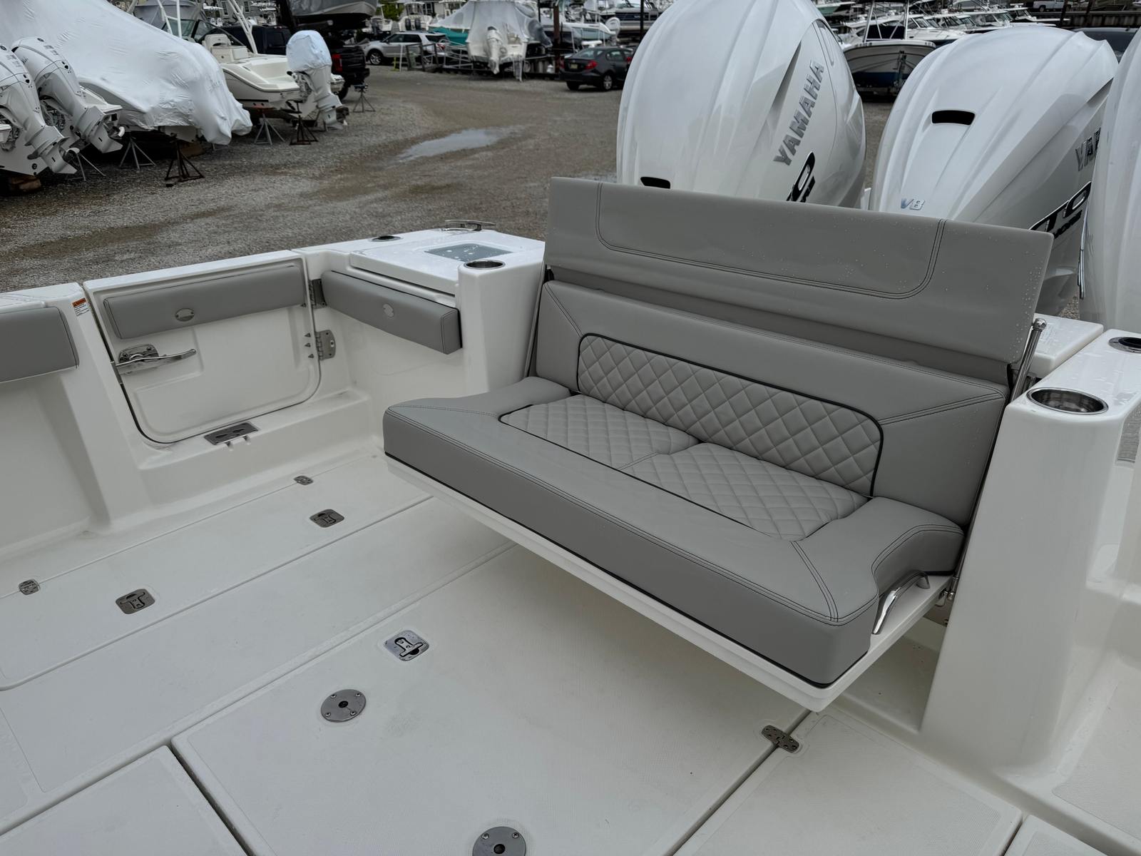 Practicality is at the heart of the Pursuit S 378’s design. The triple engine configuration not only delivers impressive speed but also provides redundancy for added safety and reliability. The advanced navigation and camera systems make docking and tight maneuvers straightforward, even for less experienced boaters. The underwater LED lights and spotlight enhance visibility during nighttime operations, while the weather receiver keeps you informed and prepared for any changes.Storage solutions are thoughtfully integrated throughout the boat, making it easy to stow gear, tackle, and personal items. The efficient layout ensures that everything you need is within reach, so you can focus on enjoying your time on the water. The Pursuit S 378 is also designed with fuel efficiency in mind, allowing you to cover more distance without frequent stops, making it ideal for extended trips or spontaneous getaways.