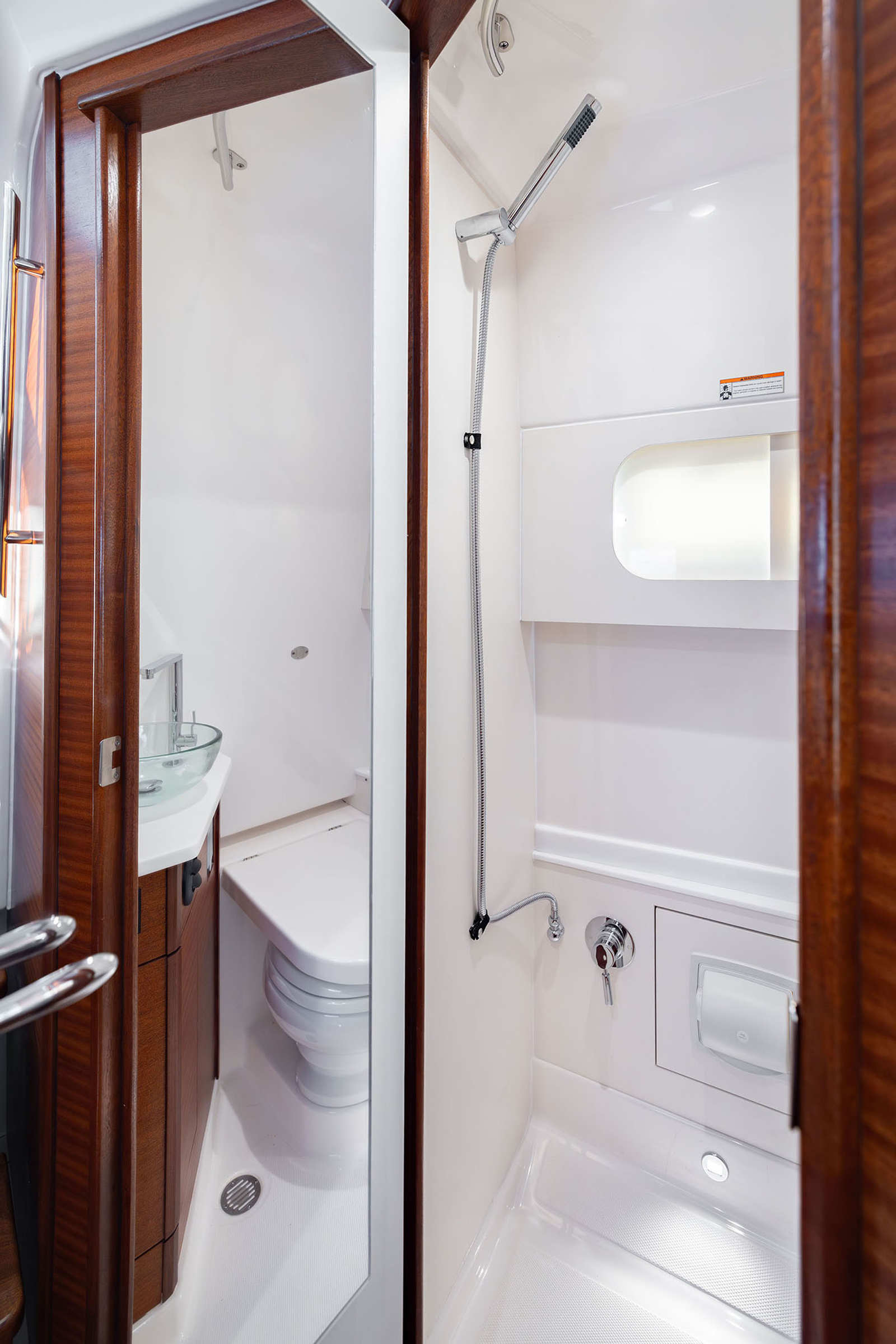 The Pursuit S 388 Center Console is loaded with innovative features designed to enhance your boating experience. The Multifunction Display Interface puts navigation and system controls at your fingertips, while the manual engine flushing system simplifies maintenance and helps keep your engines running smoothly. Comfort is paramount, with a 240v/60Hz cockpit air conditioning system and windshield defogger vent (16,000 BTU) ensuring a pleasant environment regardless of the weather.For sun protection and relaxation, the bow Mediterranean style sunshade is easily stowable, and the custom hardtop features an integrated electric retractable sunshade for instant shade at the touch of a button. The helm area is a showcase of premium upgrades, including an Edson solid teak steering wheel with power knob, a leather-wrapped dash pad in black, synthetic teak flooring on the helm footrest treads, and teak accents on dash storage pockets and the entertainment center. Select color options—Biscuit or Smoke—allow you to personalize the flooring and entertainment area to match your style.