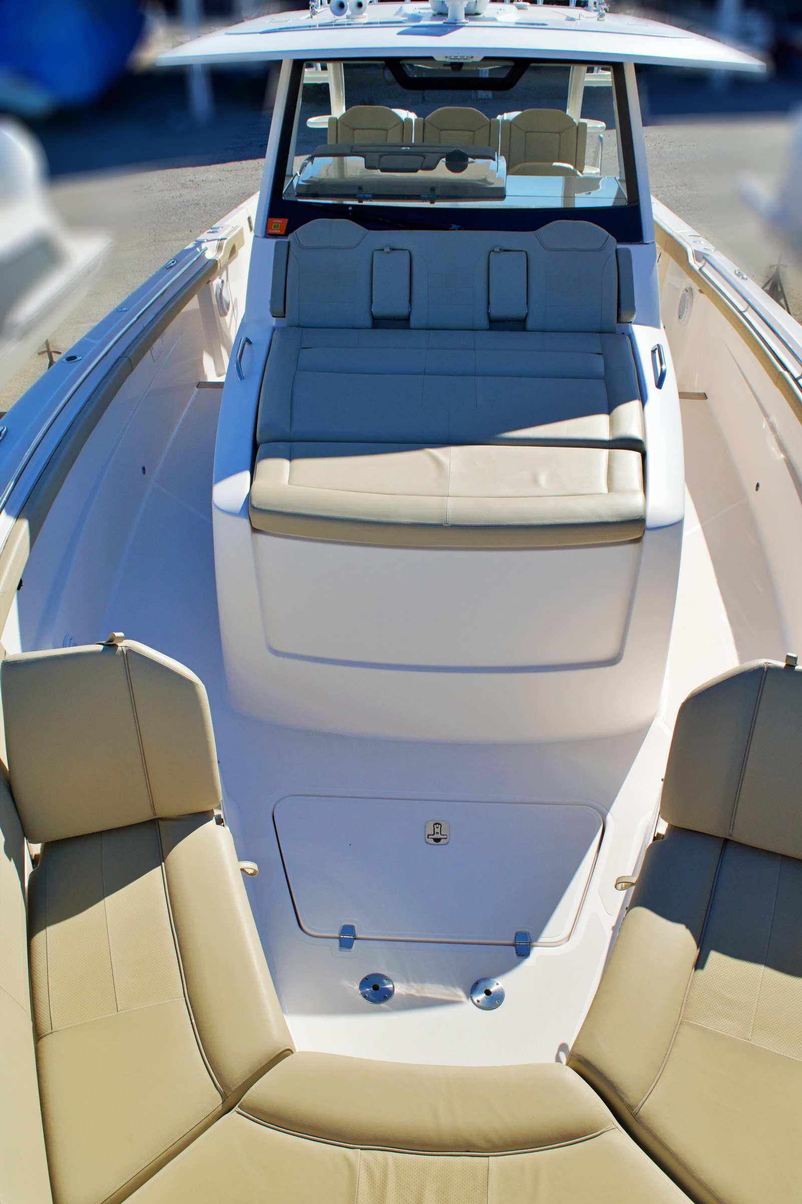 The Pursuit S 408 is designed with both comfort and functionality in mind. Its spacious center console layout allows for easy movement around the deck, making it ideal for fishing, entertaining, or simply soaking up the sun. The helm station is thoughtfully arranged, providing excellent visibility and intuitive controls for the captain. High-quality materials and finishes are evident throughout, reflecting Pursuit’s commitment to craftsmanship and durability.This 42-foot center console boat offers generous seating options, ensuring that everyone on board can relax in comfort. The open deck design is perfect for social gatherings, while the ample storage compartments keep gear and supplies organized and out of the way. The Pursuit S 408’s robust construction and attention to detail make it a reliable choice for both offshore and inshore adventures.
