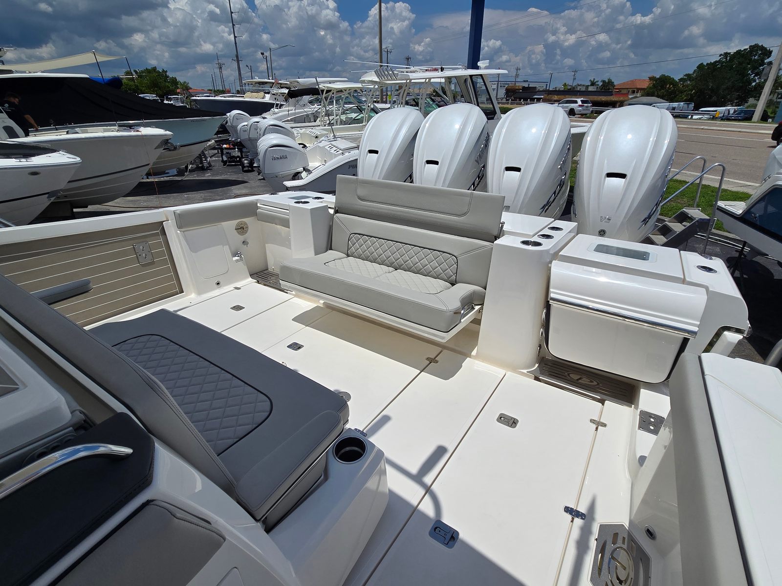At the heart of the Pursuit S 428’s exceptional performance are four powerful engines, delivering a combined 1,800 horsepower. With only 57 engine hours, this Center Console boat is practically brand new and ready to unleash its full potential on the open water. The quad-engine configuration ensures rapid acceleration, impressive top speeds, and the confidence to tackle a wide range of sea conditions. Whether you’re heading offshore for a day of fishing or cruising along the coastline, the S 428’s robust powertrain provides a smooth, responsive, and exhilarating ride every time you take the helm.