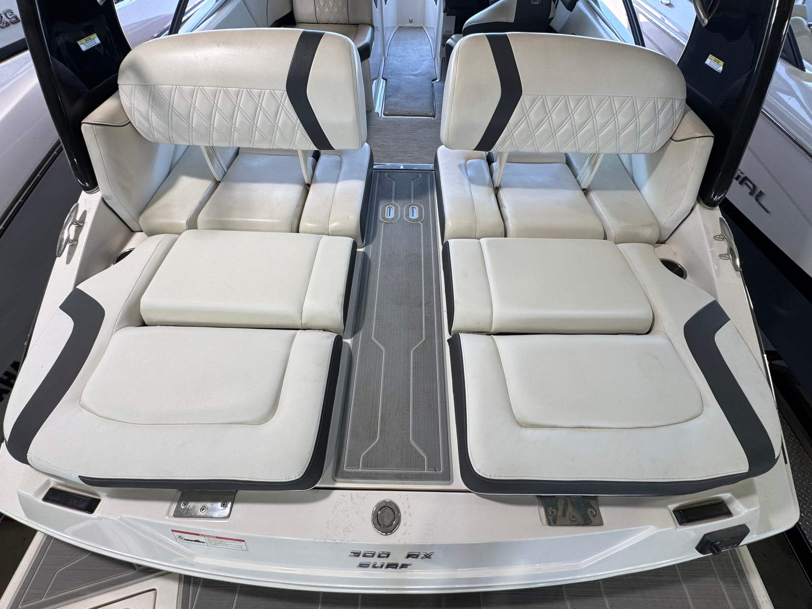 The Regal 2300 RX Surf is packed with features designed to enhance your boating experience. Its spacious bow seating area invites guests to relax and soak up the sun, while the open cockpit layout ensures everyone has a comfortable spot to enjoy the ride. The boat’s innovative hull design contributes to a smooth, dry ride, even when the water gets choppy. The 24-foot length provides generous storage options for gear, water toys, and personal items, keeping the deck clutter-free and organized.This model is also equipped with surf-specific technology, allowing you to create the perfect wake for surfing or wakeboarding. The intuitive controls make it easy to customize the wave, ensuring every rider can enjoy their ideal experience. The attention to detail in the design and construction of the 2300 RX Surf is evident in every aspect, from the premium upholstery to the ergonomic helm station.