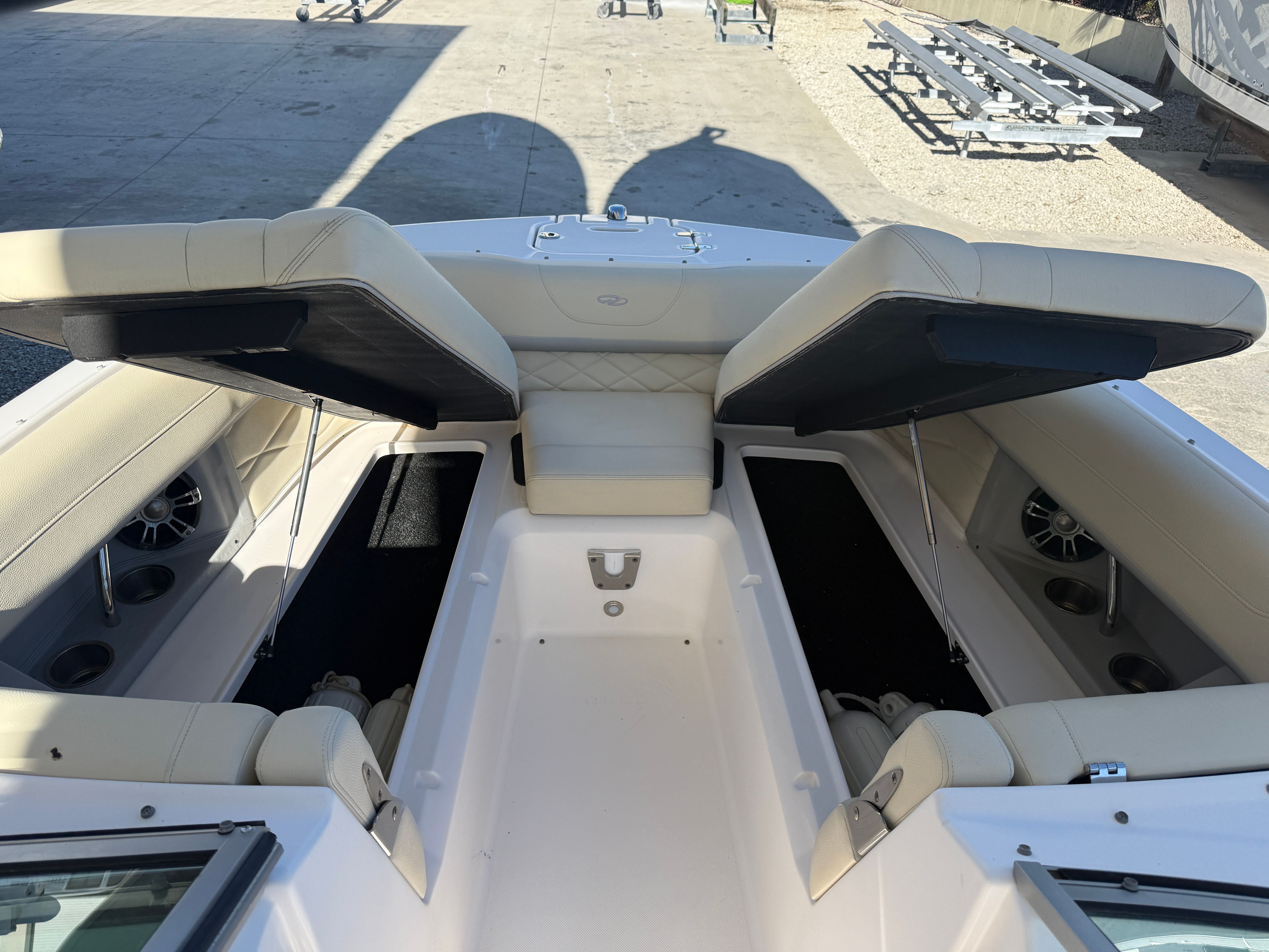 Benefits: Owning a Regal 26 OBX Bowrider opens up a world of fun and relaxation. The generous seating arrangement invites friends and family to gather for memorable days on the water, while the open bow design creates a welcoming atmosphere for lounging and enjoying the sunshine. The 300-horsepower engine provides the perfect balance of speed and efficiency, allowing you to explore new destinations or enjoy watersports with ease. Regal’s attention to detail ensures a smooth, comfortable ride, making every outing enjoyable for passengers of all ages.