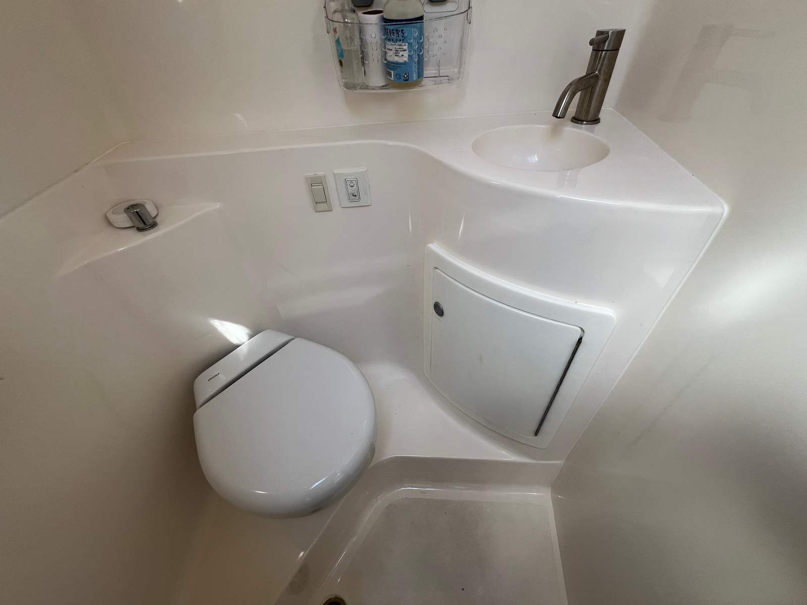 Electric toilet with pump out fittings
