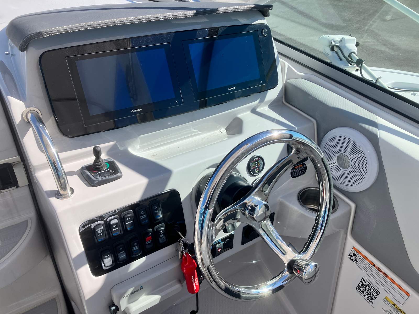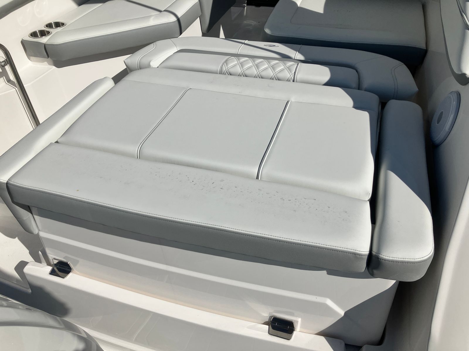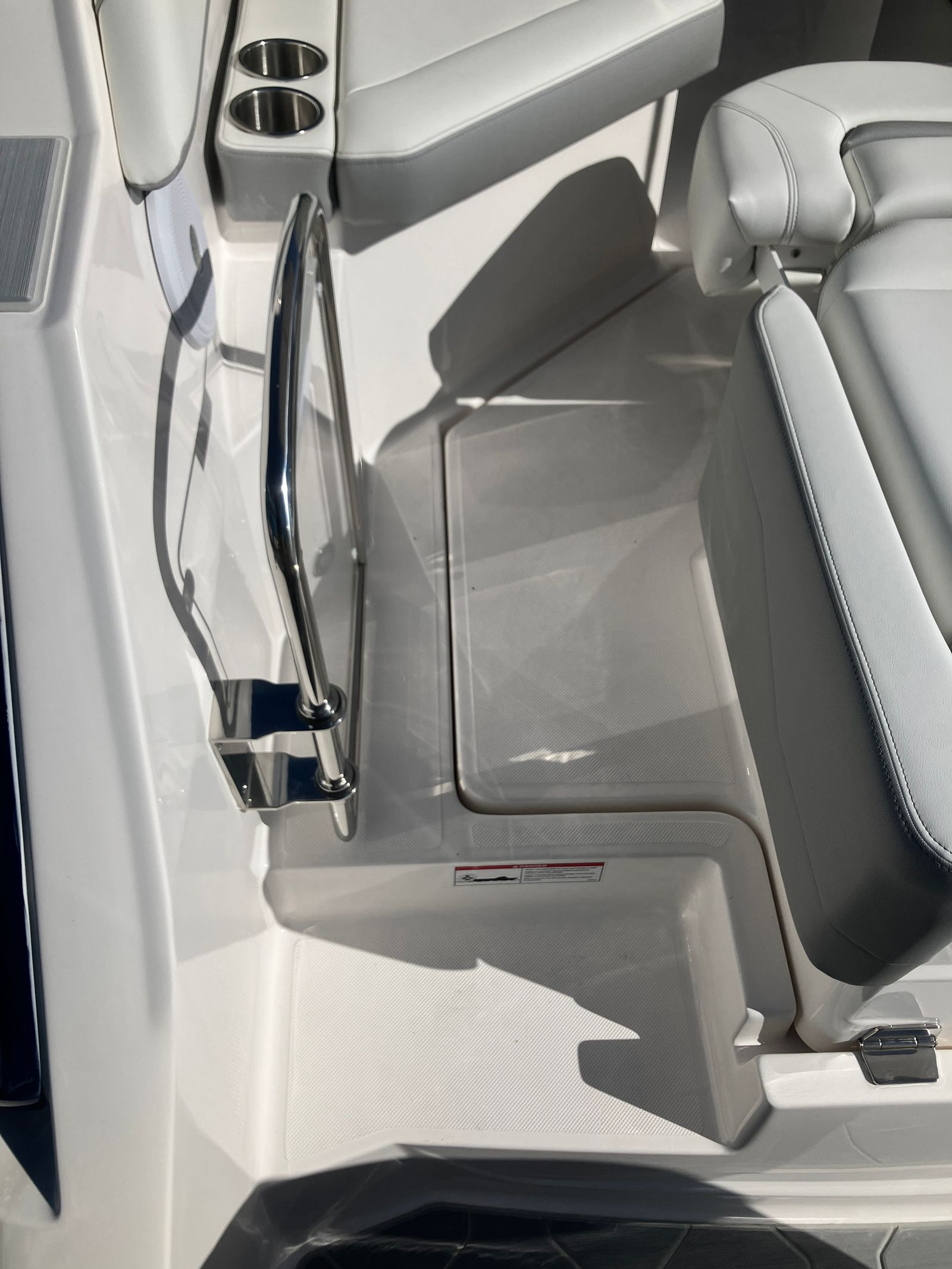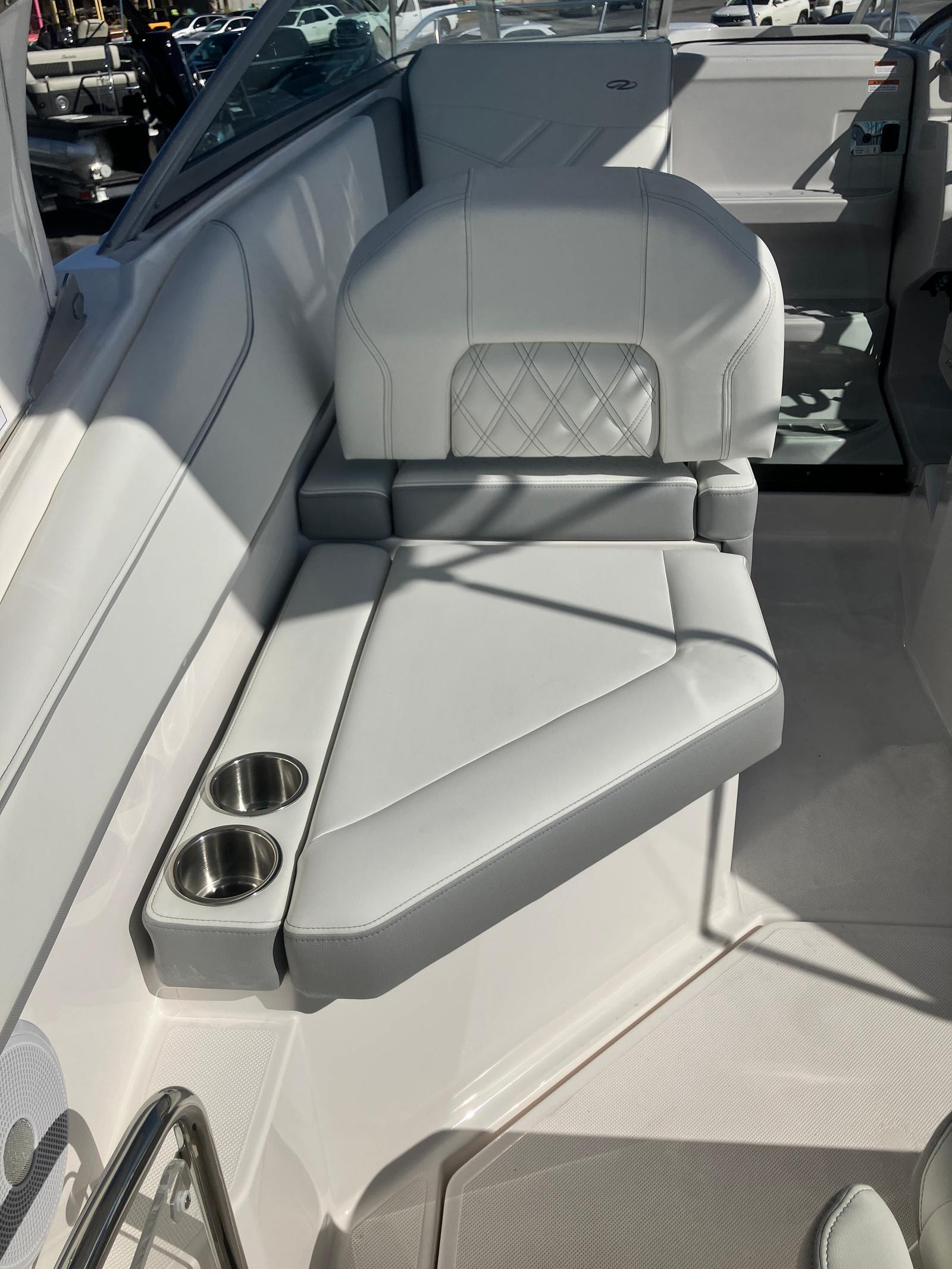 The Regal 26 XO is designed with practicality in mind, making it an ideal choice for a wide range of boating activities. The generous length and smart layout provide ample storage for gear, water toys, and provisions, ensuring you have everything you need for a day on the water or an overnight adventure. The ease of docking, thanks to the integrated steering and responsive handling, means you can confidently navigate marinas and tight spaces without stress.Fuel efficiency is another key advantage, allowing you to spend more time exploring and less time refueling. The durable SeaDek swim platform not only enhances safety but also simplifies boarding and disembarking, making it easy for guests of all ages to enjoy the water. The Steel Grey canvas offers reliable protection from the sun and rain, ensuring your comfort no matter the weather conditions.