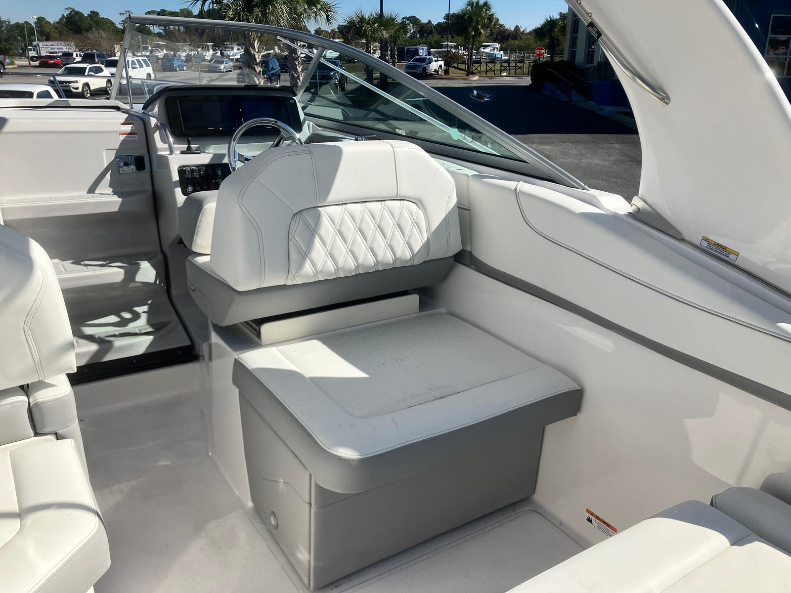 Owning the Regal 26 XO cruiser opens up a world of fun and relaxation on the water. The spacious layout is perfect for socializing, with plenty of room for family and friends to gather, relax, and enjoy the scenery. The comfortable seating and thoughtfully designed interior make every outing a pleasure, whether you are hosting a sunset cocktail party or embarking on a weekend getaway. The SeaDek swim platform invites endless hours of swimming, sunbathing, and watersports, creating lasting memories for everyone on board.The advanced Yamaha engine not only delivers impressive power but also ensures quiet and efficient operation, allowing you to enjoy peaceful cruises without excessive noise or vibration. The integrated steering system makes piloting the boat a breeze, even for less experienced captains, while the durable construction and high-quality materials guarantee years of worry-free ownership.