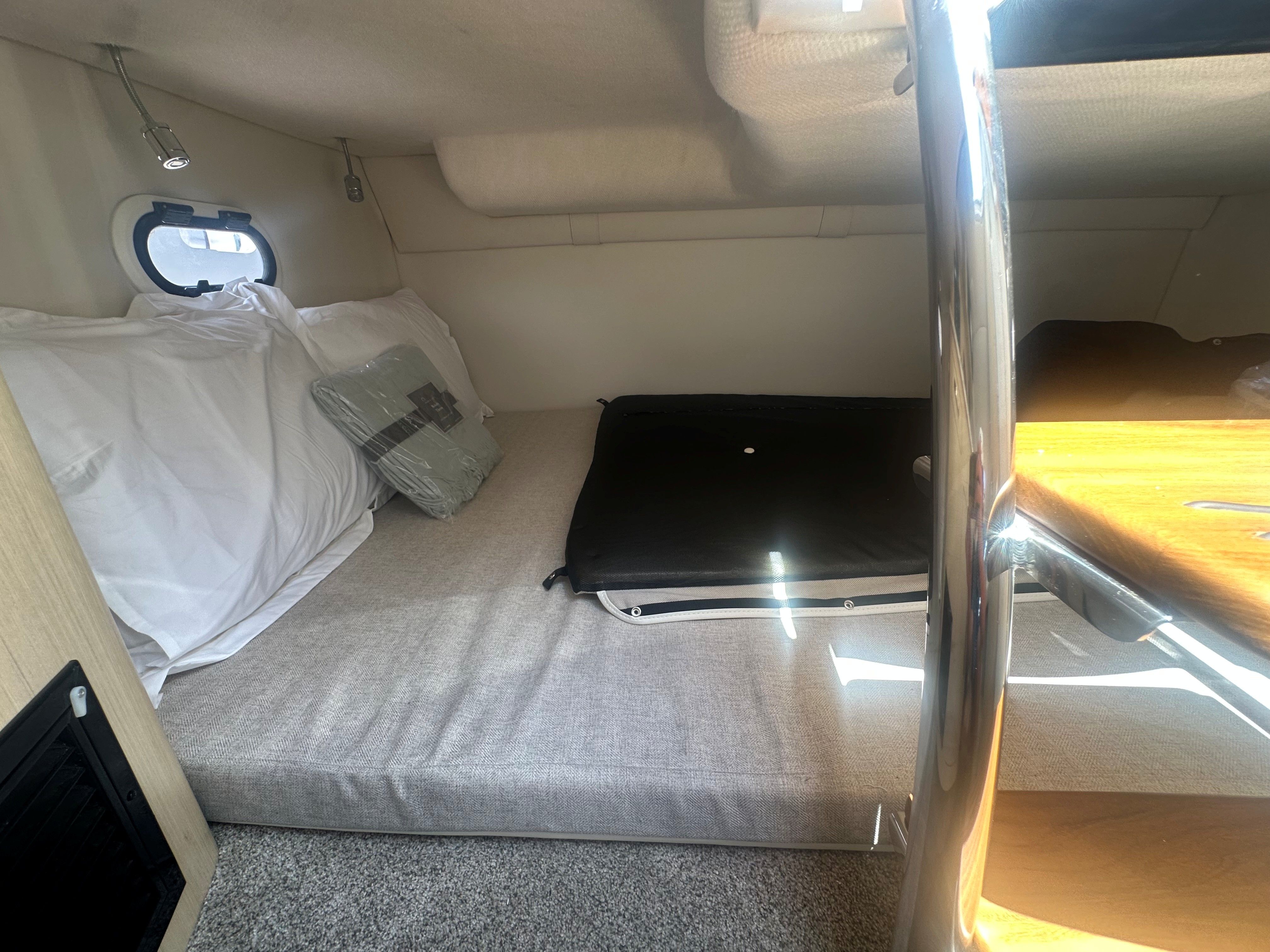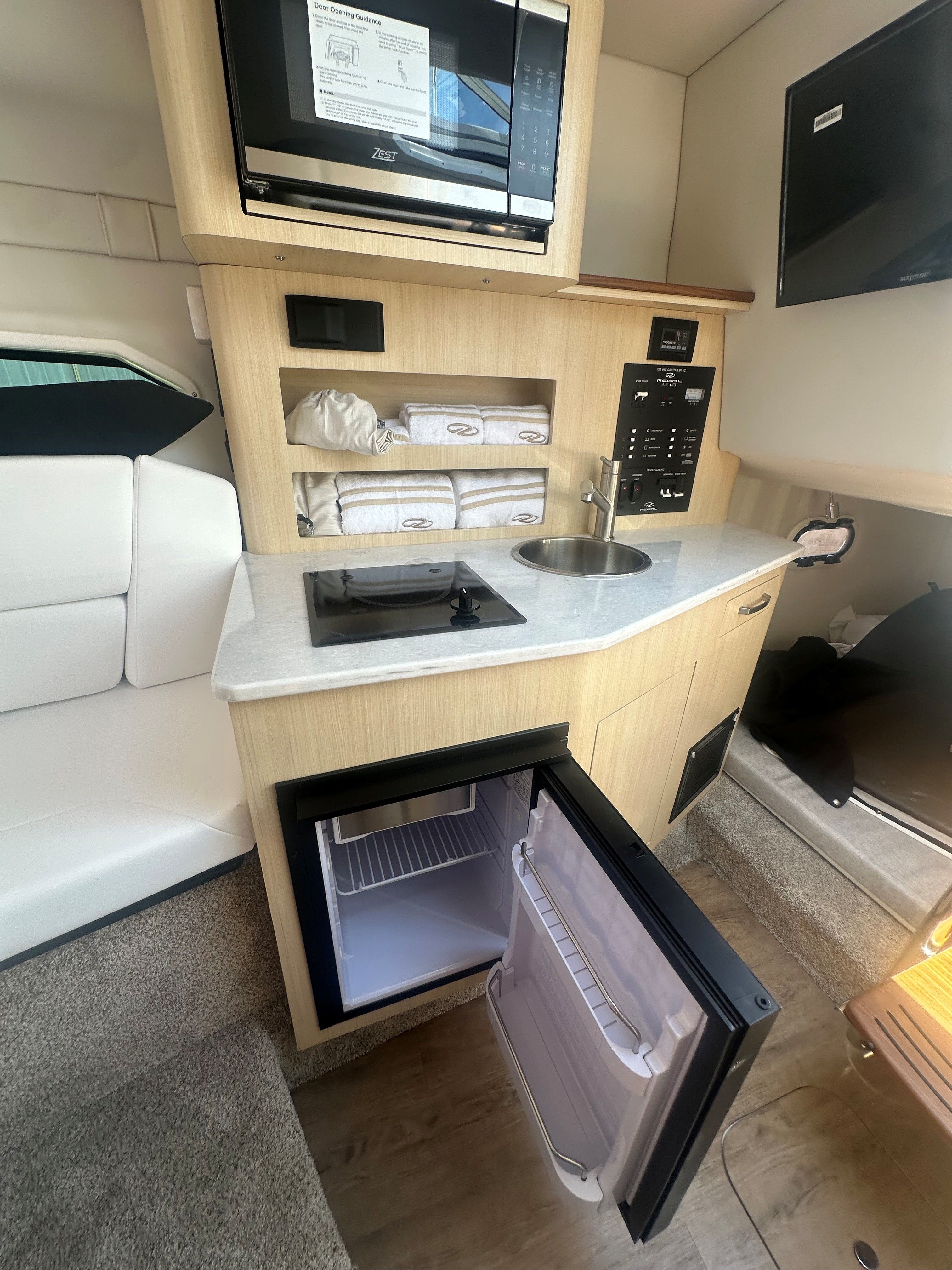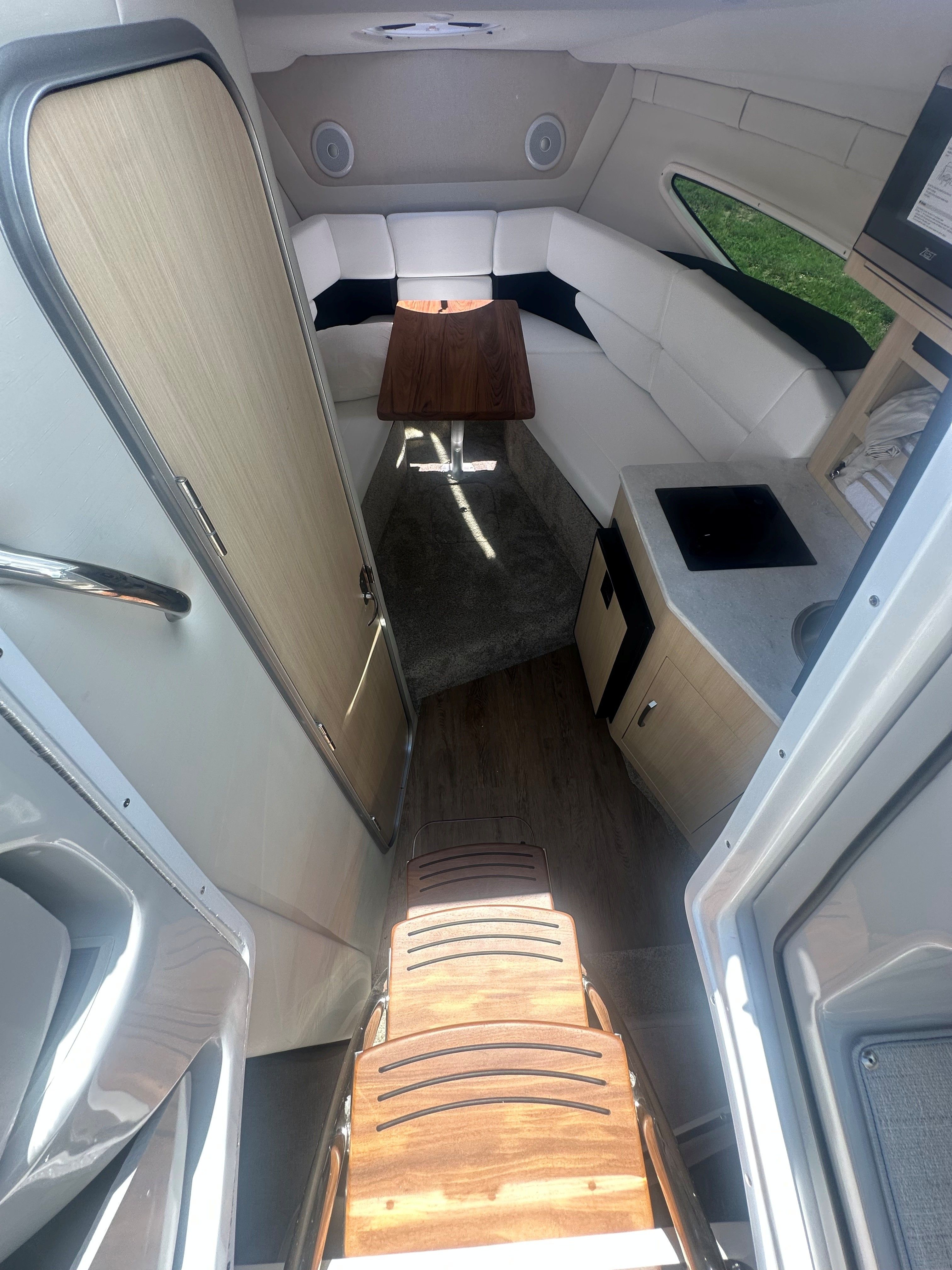 The Regal 26 XO is designed with practicality in mind, offering features that make ownership easy and enjoyable. The anchor windlass simplifies the process of securing your boat, saving time and effort when arriving at your favorite spot. The bow thruster provides added control when docking, making it easier to navigate tight spaces and challenging conditions. The efficient Yamaha engine delivers both power and fuel economy, allowing you to spend more time on the water and less time refueling. With ample storage throughout the boat, you can bring along all the gear and supplies you need for a day of fun or a weekend adventure.
