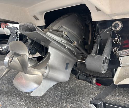 Beautiful Regal 28 Express sitting on a triple axle trailer powered by a Volvo Penta V8 350 with only 124 fresh water hours! Loaded with gas generator, Power Tower, AC and Heat, Windlass anchor, bow thruster, aft thrusters, full enclosure, stereo performance and lighting package, salon TV flat screen, underwater lighting, foredeck sun pad, remote control spotlight. This boat will be fully serviced and lake ready to go! Financing is available.