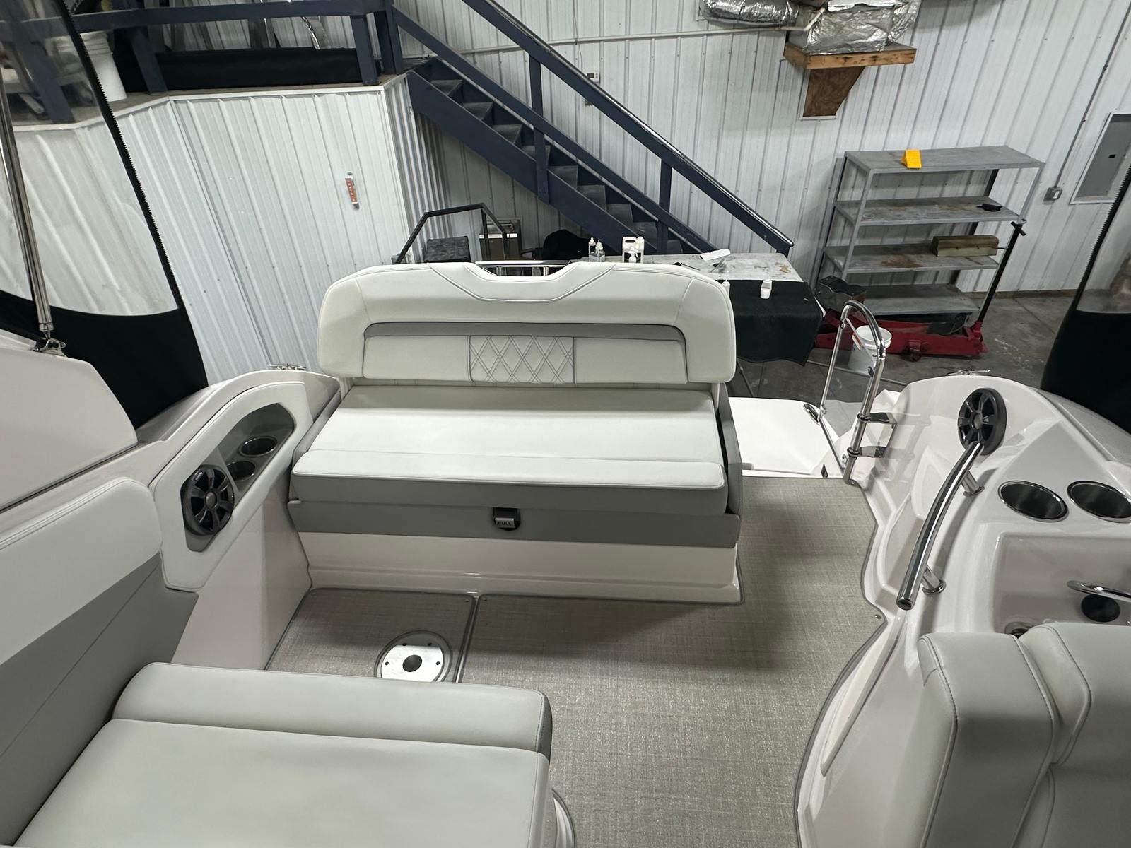 The Regal 28 Express is as practical as it is luxurious. With its efficient single engine and 300 horsepower, you’ll appreciate the balance between performance and fuel economy, making longer trips more affordable. The bow thruster simplifies docking, so you can confidently navigate tight spaces and busy marinas. The two batteries and battery charger provide peace of mind, ensuring your electronics and amenities stay powered throughout your adventures.Cockpit storage keeps your gear organized, whether you’re packing for a day of water sports or a weekend getaway. The cabinetry offers additional space for personal items, making overnight stays comfortable and convenient. The camper enclosure protects you from unexpected weather, while the Sea Grass Snap In carpet is easy to clean and maintain, keeping your boat looking its best season after season.