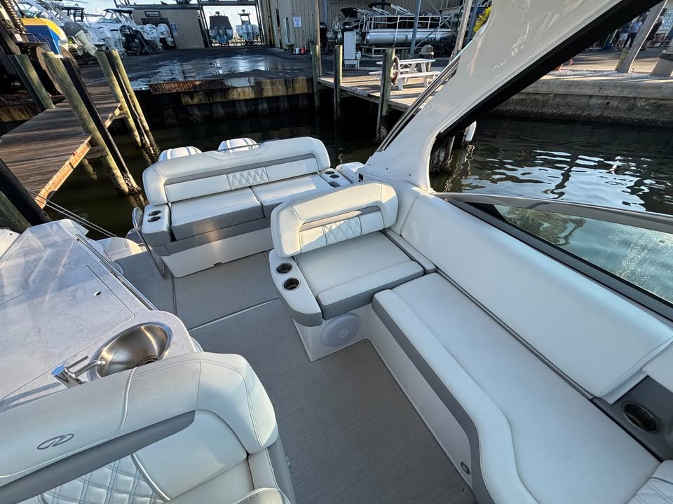 The 2023 Regal 33 XO is as practical as it is luxurious. Its spacious layout and smart storage solutions make it easy to bring along everything you need for a day or weekend on the water. The cruiser’s design facilitates easy docking, whether you’re navigating tight marina spaces or anchoring in open water. Fuel efficiency is a hallmark of Regal engineering, ensuring that you can enjoy longer trips without frequent stops for refueling.This Regal boat for sale is also ideal for a variety of activities, from leisurely cruises to more active pursuits. The open deck space is perfect for sunbathing, dining, or simply enjoying the view, while the comfortable seating ensures that everyone on board has a place to relax. The dual engines provide the power and reliability needed for safe and enjoyable travel, making this cruiser a versatile choice for boaters of all experience levels.
