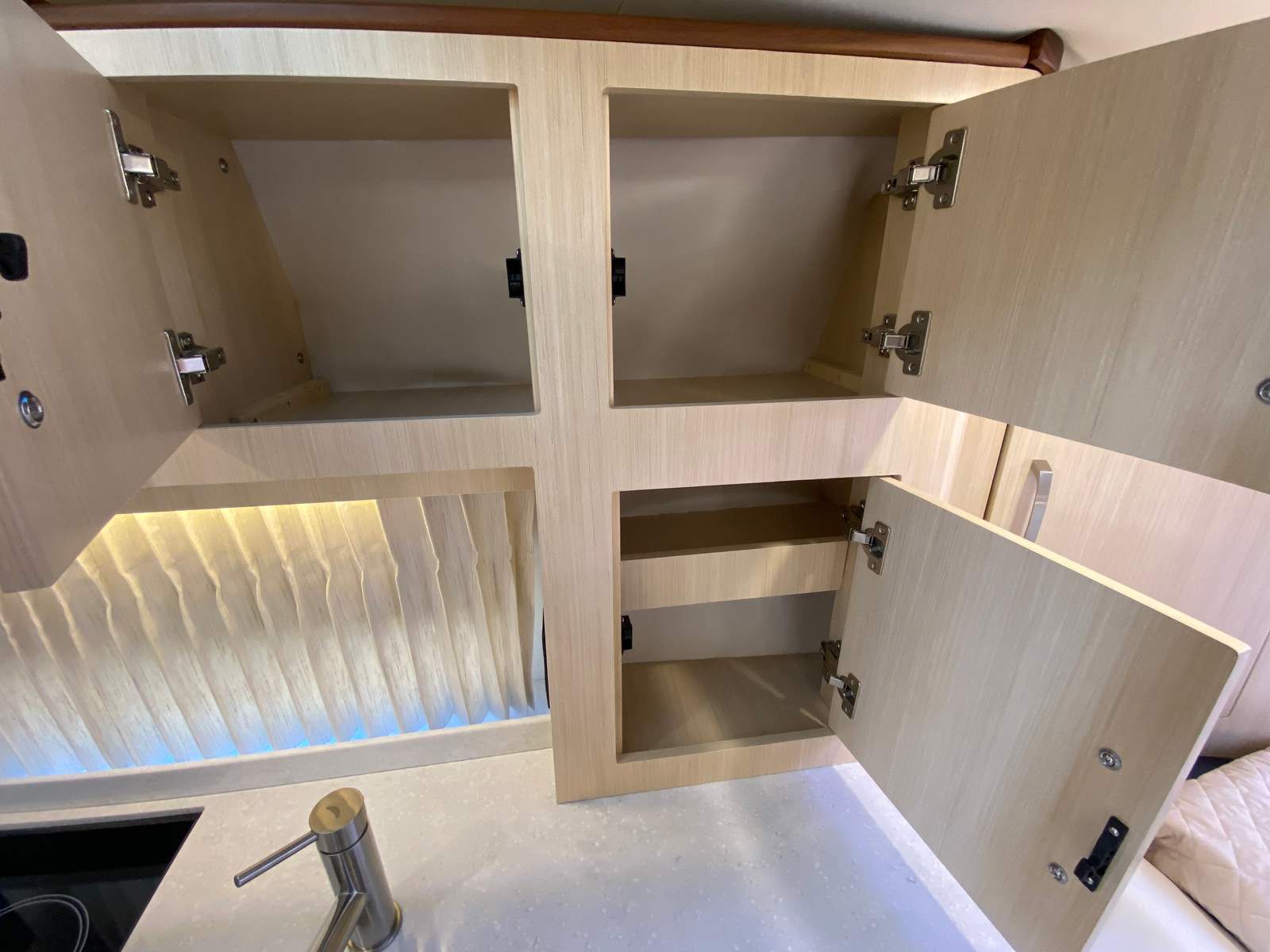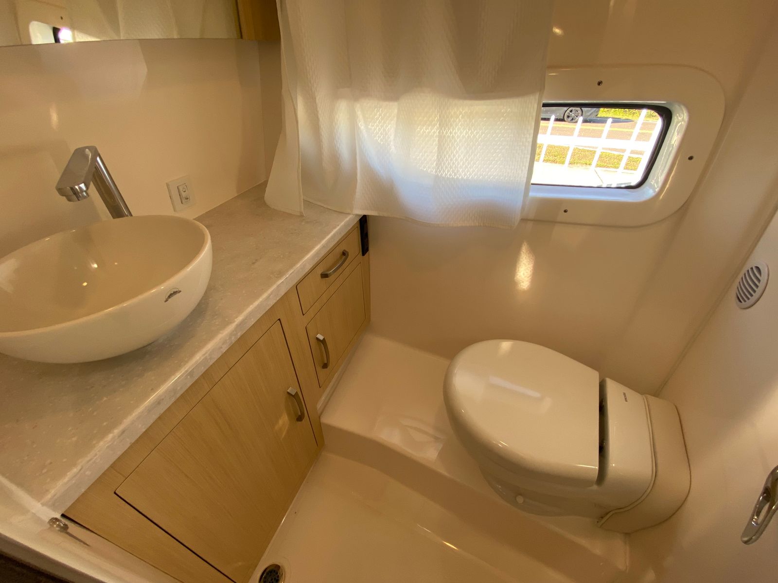 Practicality is at the heart of the Regal 33 XO’s design. The bow thruster simplifies docking, allowing you to maneuver with precision in crowded marinas or tight spaces. Fender clips offer quick and secure attachment points, streamlining the process of protecting your boat during docking. The absence of bottom paint means less maintenance and a cleaner hull, contributing to long-term performance and value.The aft cockpit electric Sureshade for the hard top provides adjustable shade, ensuring comfort during hot summer days or unexpected rain showers. The spacious layout offers plenty of storage for gear, supplies, and personal items, making it easy to keep the deck organized and clutter-free. Whether you are planning a day trip or an extended voyage, the Regal 33 XO is equipped to handle your needs with ease.