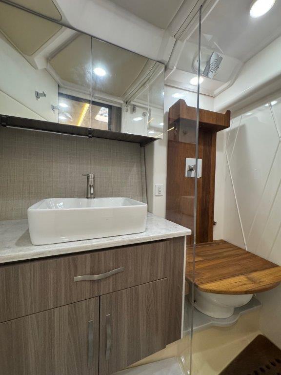 From the Multi-Position open bow seating to the convertible face-to-face aft cabin seating and open-air salon refreshment center, this layout is engineered for comfort and versatility.
