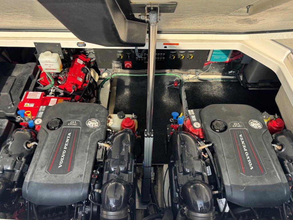 With only 214 hours on twin Volvo V8 350 DP CAT engines and just 100 hours on the 6.5kW Westerbeke Generator, she is completely dialed in and fully serviced – including both engines and generator – and ready to hit the water today. Powered by Joystick control for effortless docking and featuring a bow thruster, this Regal is designed for ease of operation and luxury performance.
