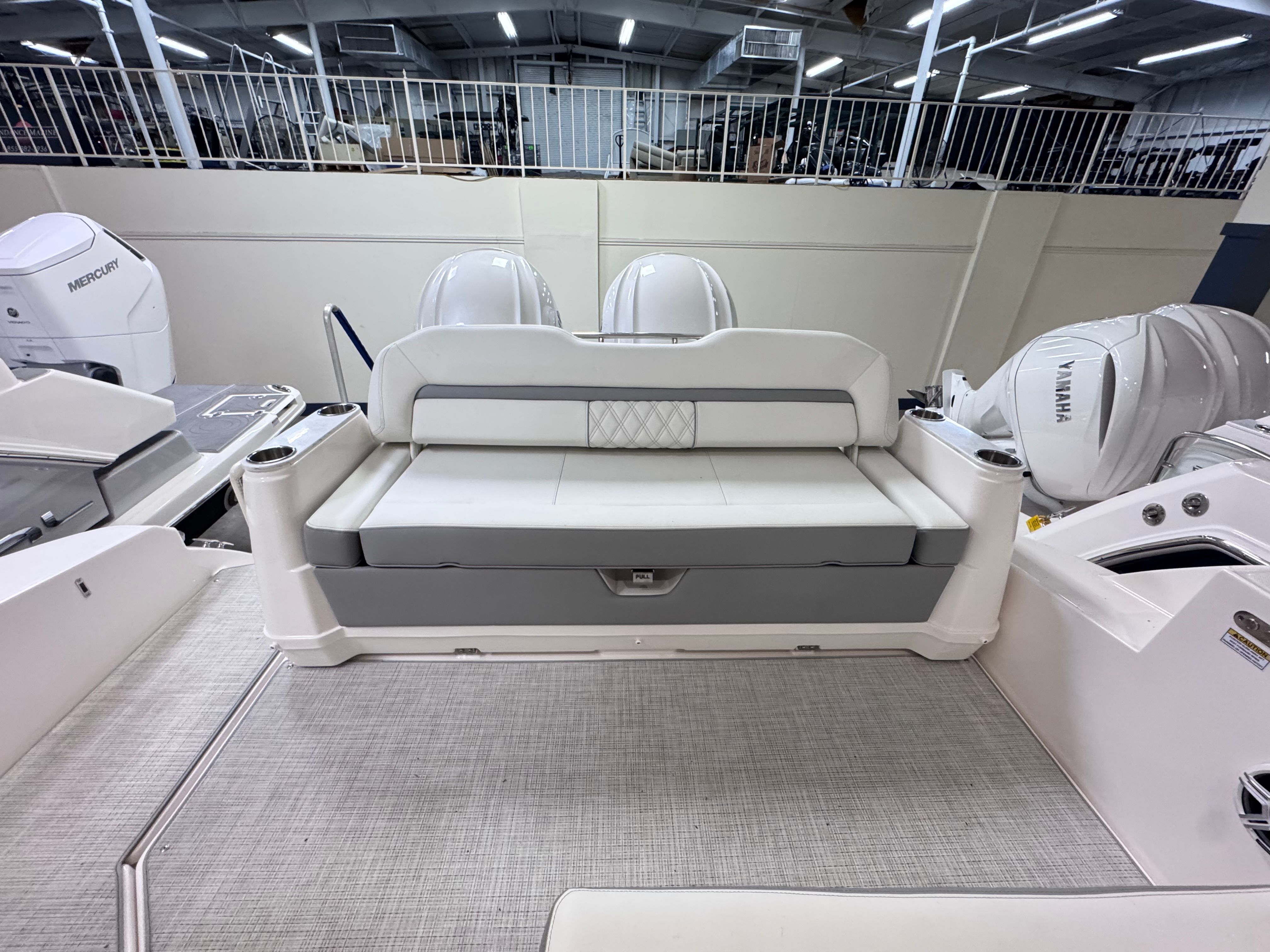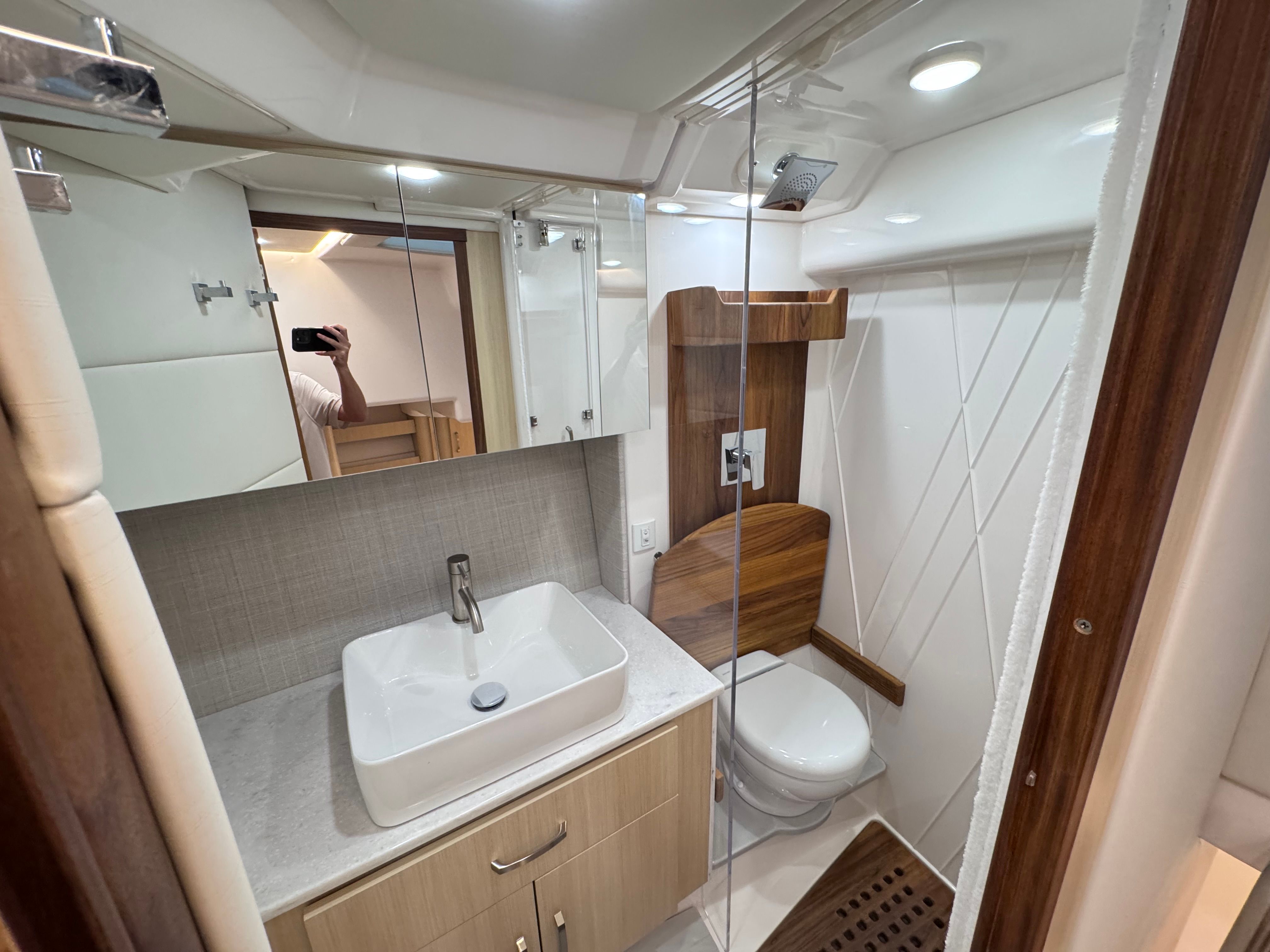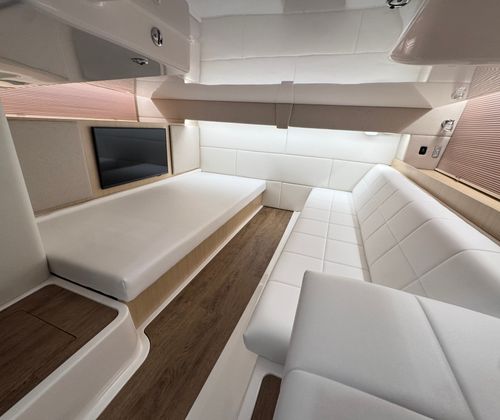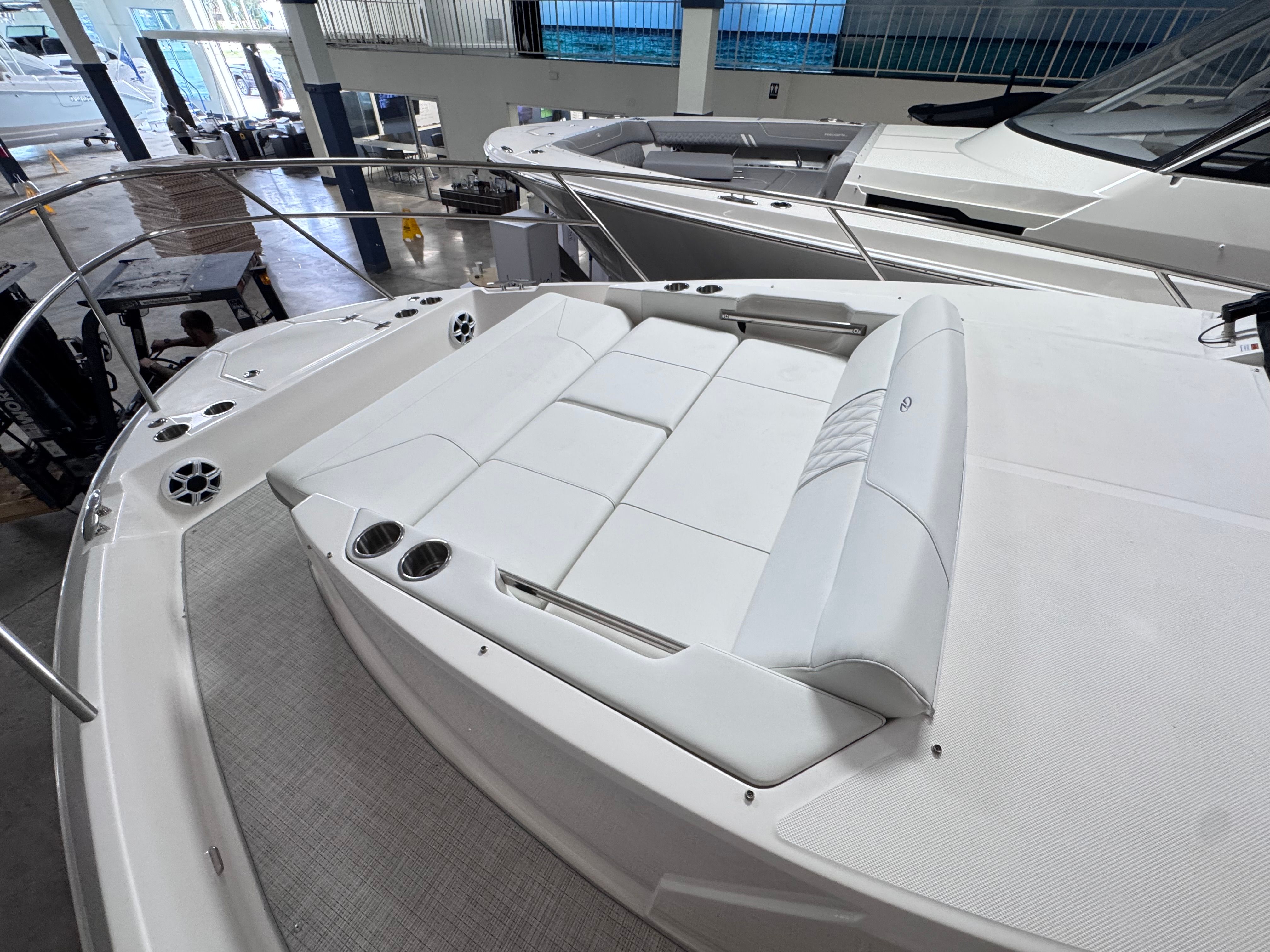 Step aboard the Regal 36 XO and discover a world of comfort and sophistication. The yacht is equipped with a manual bow sunshade system, offering customizable protection from the sun while you relax on deck. Transom seat covers add a layer of luxury and protection, ensuring your seating remains pristine. The windshield privacy cover provides added security and comfort, allowing you to enjoy private moments with your guests.The Mediterranean Blue canvas not only enhances the yacht’s aesthetic appeal but also offers durability and weather resistance. Inside the cockpit, the Seagrass mat delivers a soft, inviting surface underfoot, perfect for barefoot relaxation. The pillow package in neutral, coastal tones creates a serene ambiance, while the mosaic countertops add a touch of elegance to the galley area. The salon floor, finished in toasted oak, brings warmth and sophistication to the interior, making every moment onboard feel special.