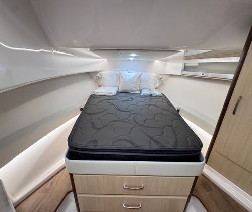 Beyond its luxurious appeal, the Regal 36 XO is designed with practicality in mind. The spacious deck and well-appointed interior offer ample storage for gear, supplies, and personal items, making it easy to keep the yacht organized and clutter-free. The efficient twin-engine setup simplifies docking and maneuvering, even in tight spaces, so you can spend more time enjoying the water and less time worrying about logistics.Fuel efficiency is a key advantage of the Yamaha V8 F450 engines, allowing for longer trips without frequent refueling stops. The durable canvas and protective covers help maintain the yacht’s pristine condition, reducing maintenance and ensuring your investment remains beautiful for years to come. The comfortable seating, sunshade system, and inviting interior make every moment onboard enjoyable, whether you’re cruising, anchoring, or entertaining.