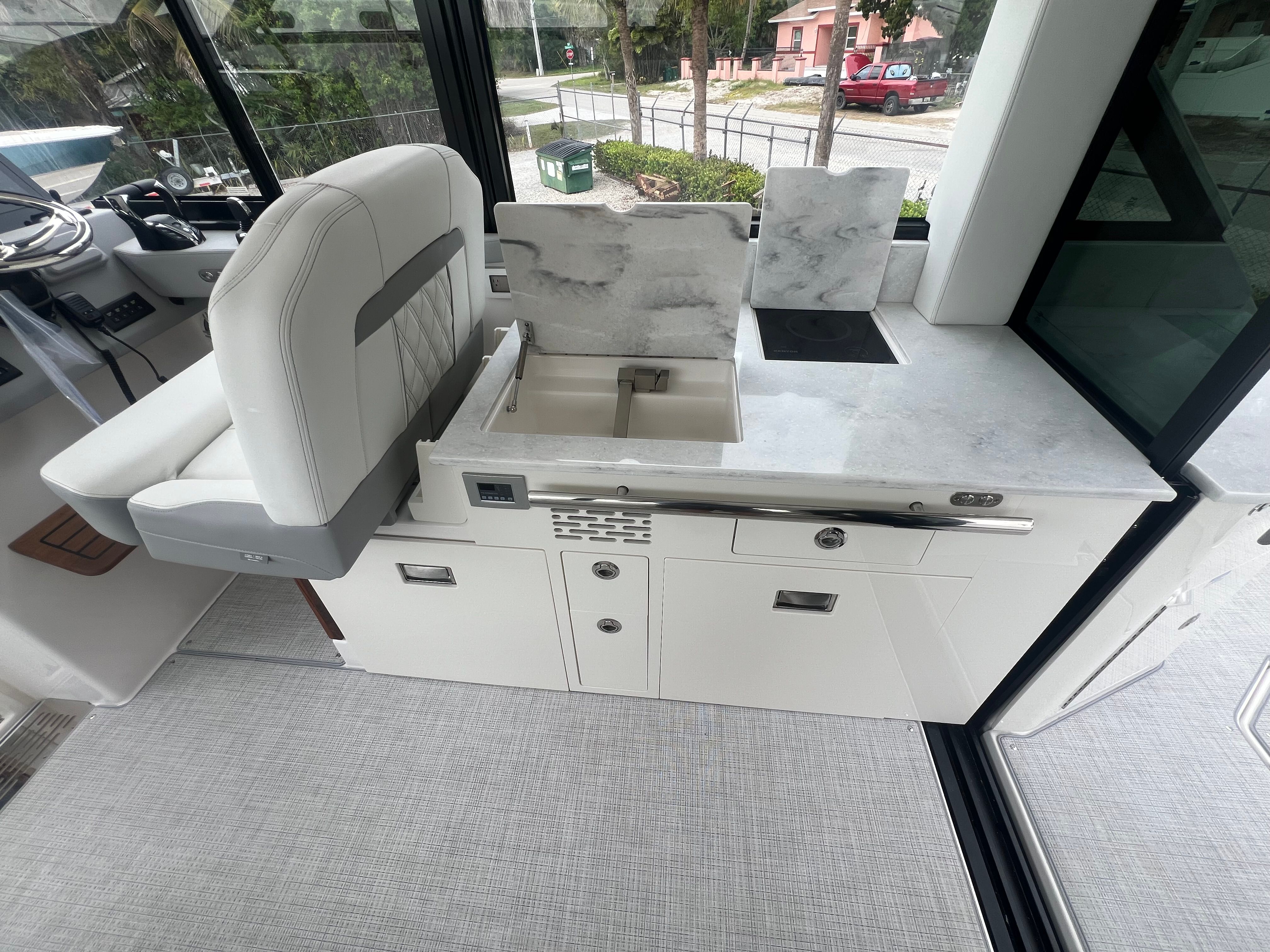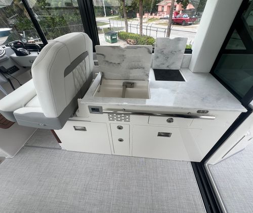 The 2026 Regal 36 XO is packed with special features that enhance comfort, convenience, and enjoyment on every voyage. The TV in the mid cabin provides entertainment for guests, creating a cozy retreat for movie nights or catching up on your favorite shows. The aft cockpit canvas with a Palm Beach enclosure offers protection from the elements while maintaining an open, airy feel, allowing you to enjoy the outdoors in any weather. The manual bow sunshade system extends your comfort zone, providing shade and relaxation on sunny days.For those who love to entertain, the electric grill is perfect for preparing delicious meals on board, while the cruise package ensures a smooth and enjoyable journey. The Garmin HD closed array radar adds a layer of safety and navigation precision, making it easy to chart your course and avoid obstacles. The windshield privacy cover offers added comfort and discretion, allowing you to enjoy your time on the water in complete privacy. Every detail of the Regal 36 XO is designed to maximize your enjoyment and create unforgettable memories.