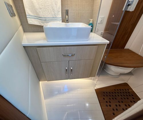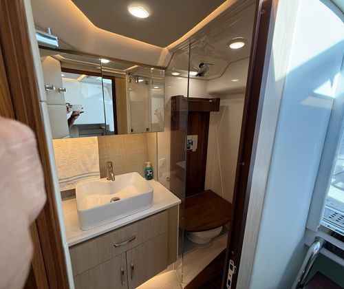 Power and precision are at the heart of the Regal 36 XO. Equipped with twin engines delivering a combined 850 horsepower, this yacht offers a thrilling ride that’s both smooth and responsive. The dual-engine setup ensures optimal maneuverability and reliability, making it easy to navigate through open waters or tight docking situations. With only 140 engine hours, you can trust that the performance of this yacht remains at its peak, ready to deliver countless hours of excitement and adventure. Whether you’re cruising at high speeds or enjoying a leisurely journey, the Regal 36 XO provides a dynamic boating experience that’s second to none.