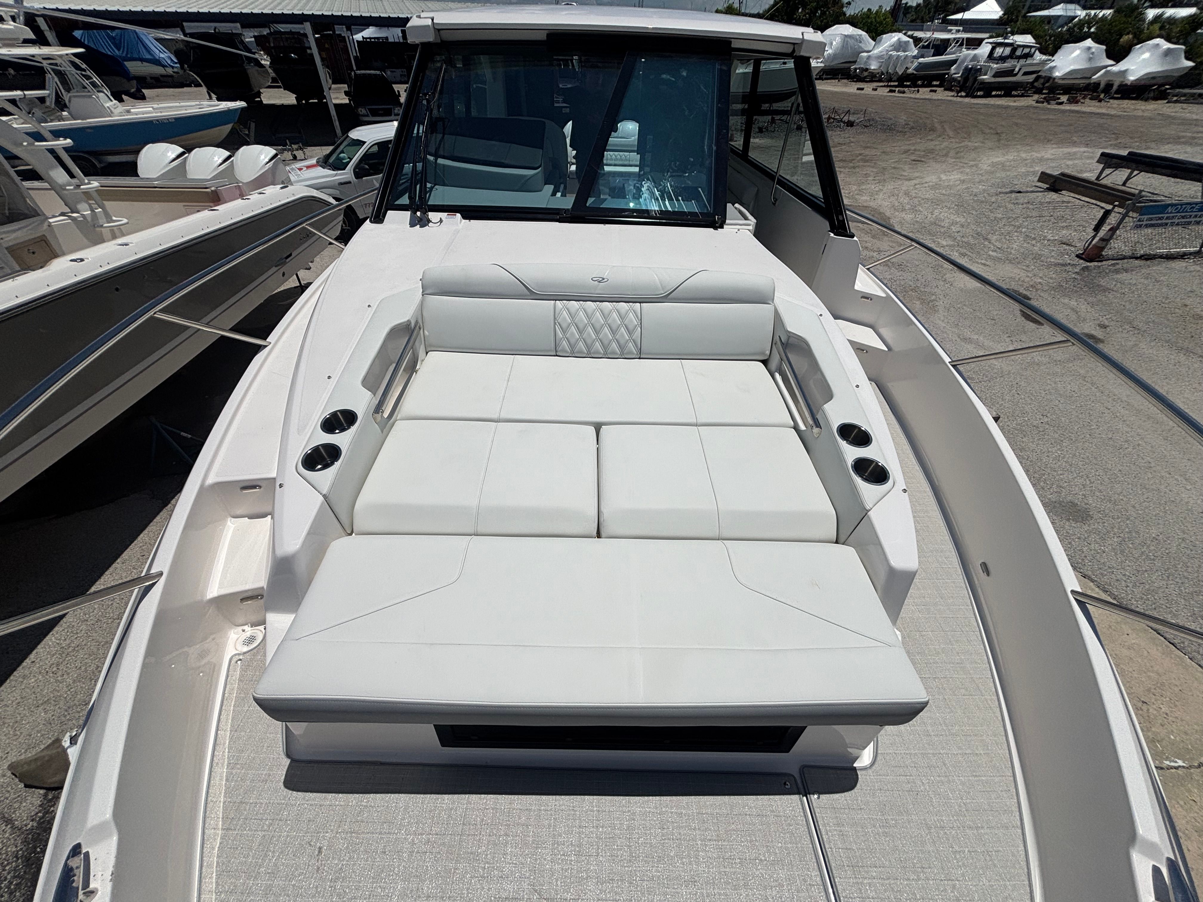 The Regal 36 XO is a 2026 yacht that measures an impressive 37.25 feet in length, making it ideal for both intimate getaways and lively social gatherings. With its sleek lines and modern profile, this yacht commands attention wherever it goes. The hull bottom features the eye-catching Tahiti Beach White finish, adding a touch of elegance and sophistication to its appearance. As a new yacht, the Regal 36 XO promises pristine condition and the latest advancements in marine technology, ensuring you enjoy every moment on the water.