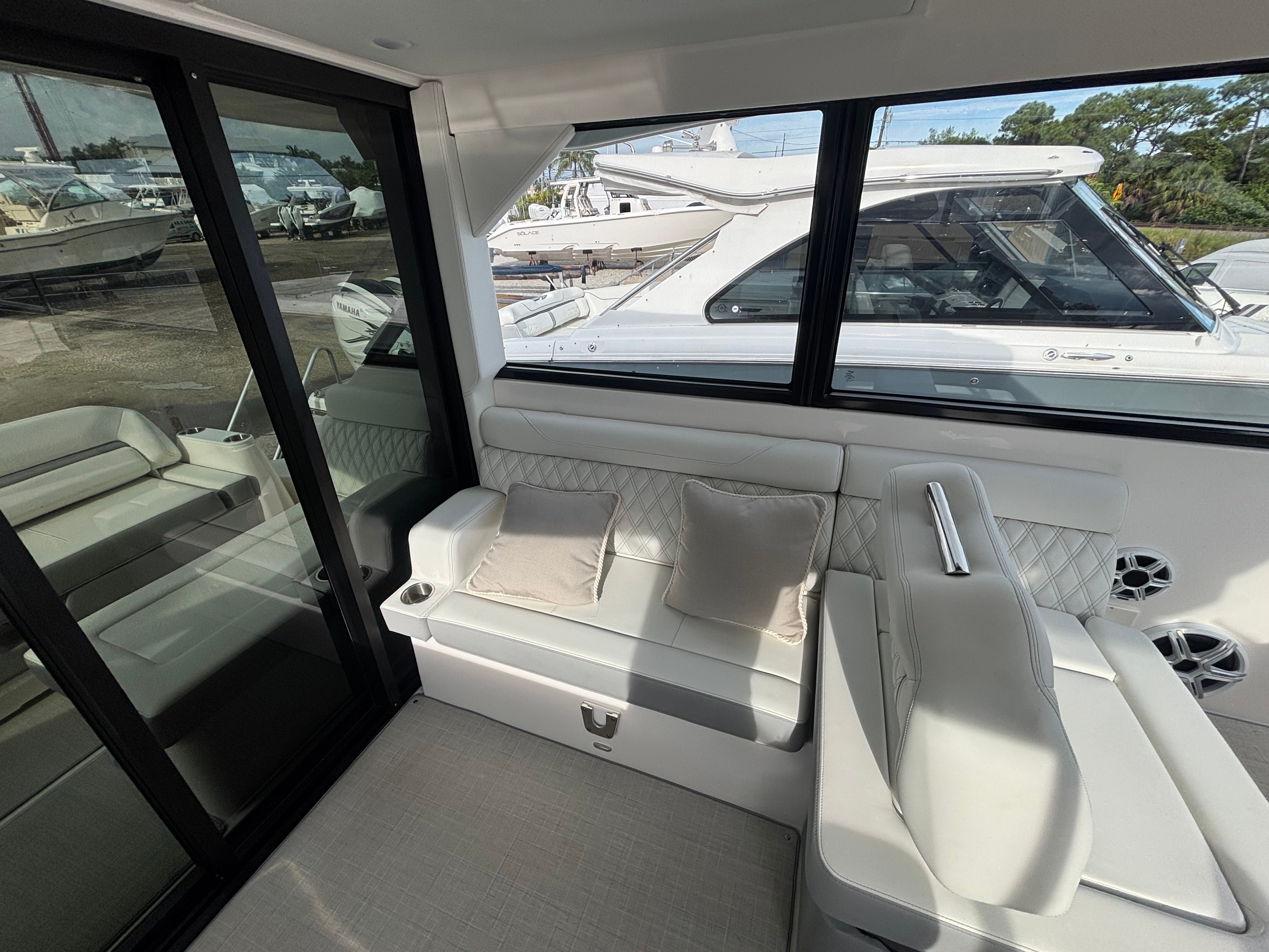 Under the hood, the Regal 36 XO is powered by two robust engines delivering a combined 900 horsepower. This impressive setup provides exhilarating speed and smooth handling, whether you are cruising along the coastline or exploring open waters. The dual-engine configuration ensures reliable performance and enhanced maneuverability, making docking and navigation effortless. The inclusion of a bow thruster further enhances control, allowing you to handle tight spaces and challenging conditions with confidence. For those seeking a yacht boat for sale that offers both power and precision, the Regal 36 XO is a standout choice.