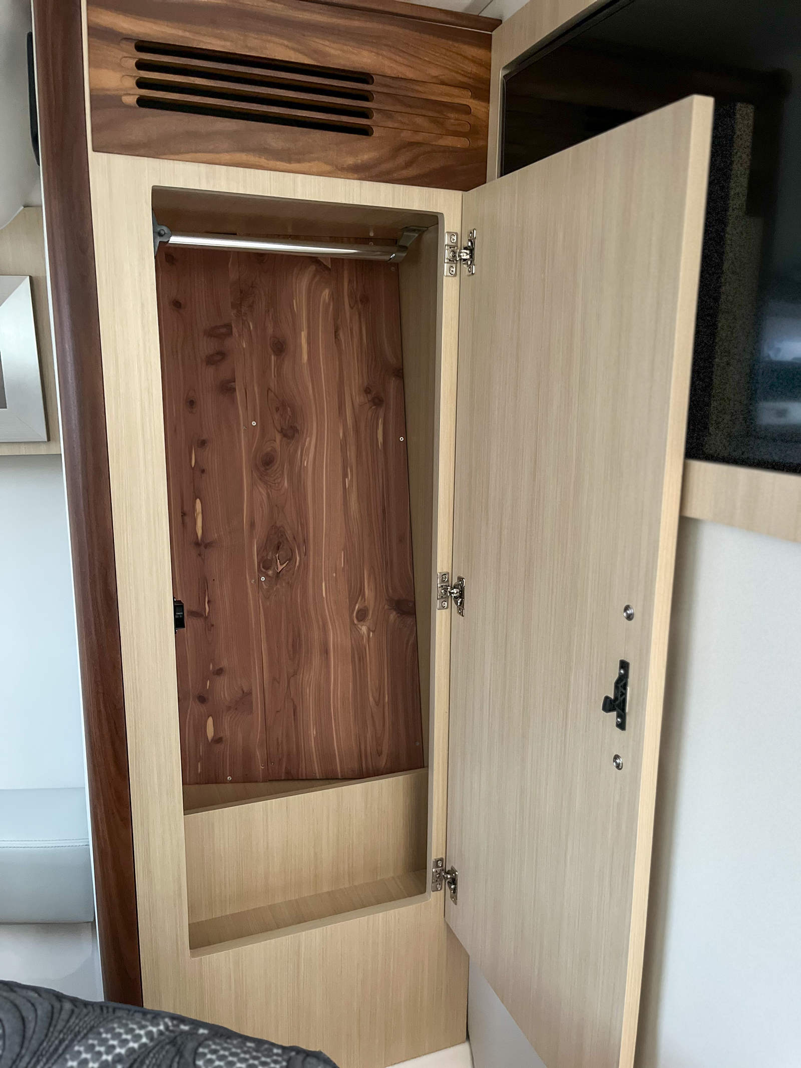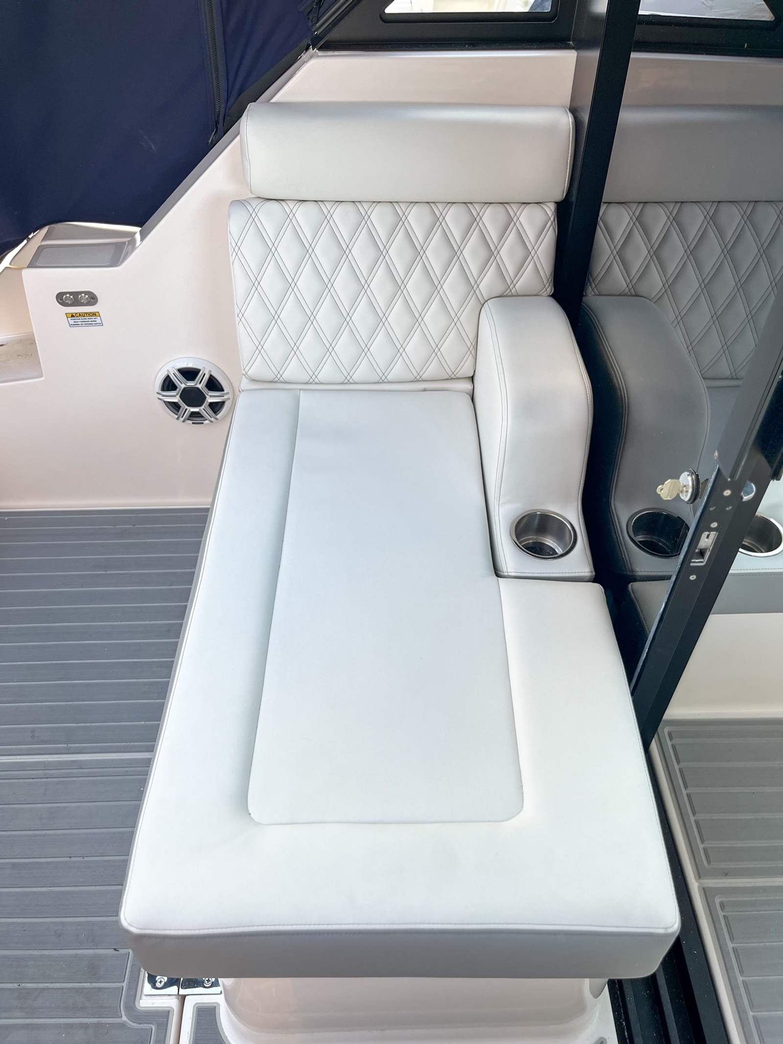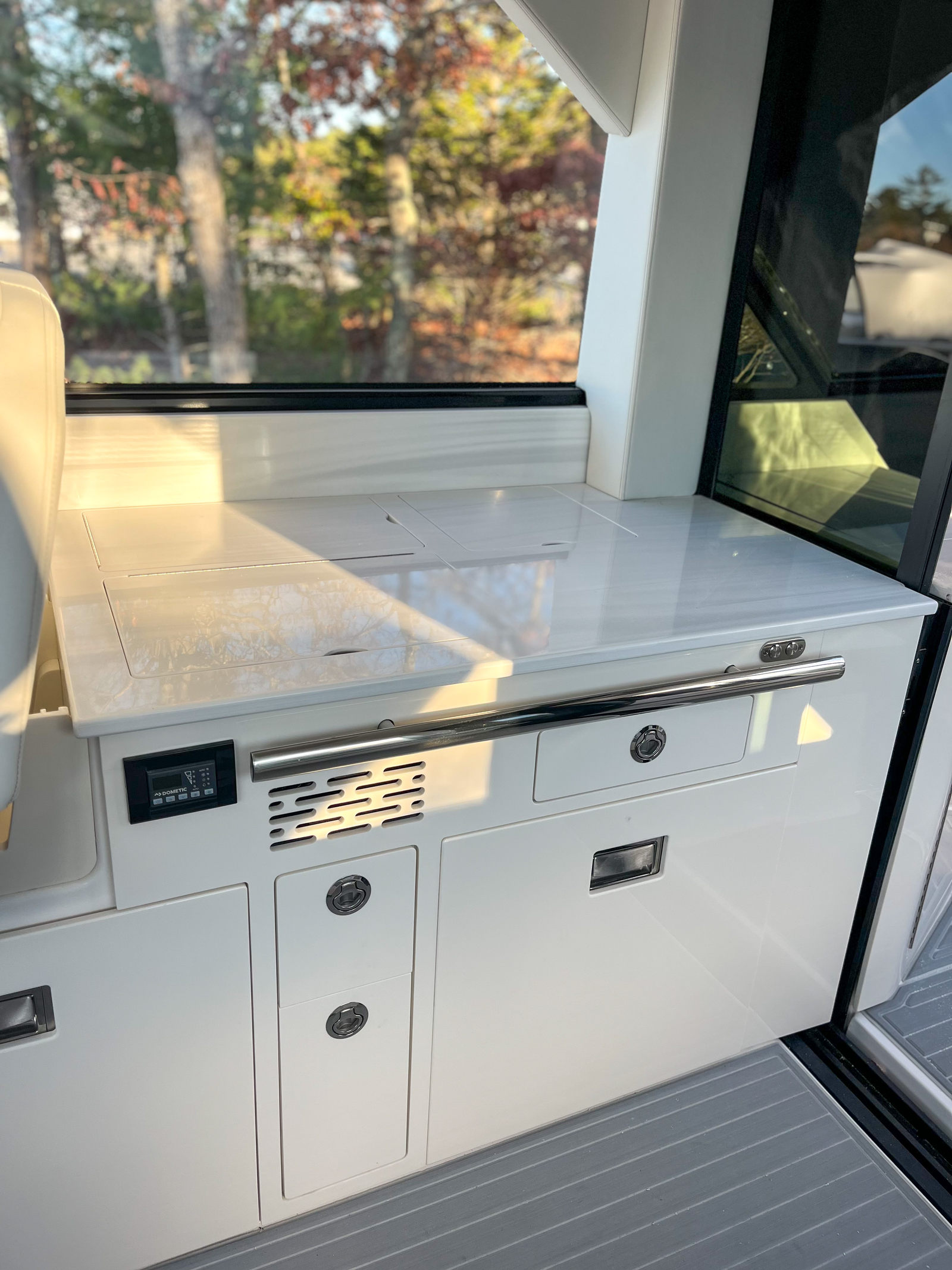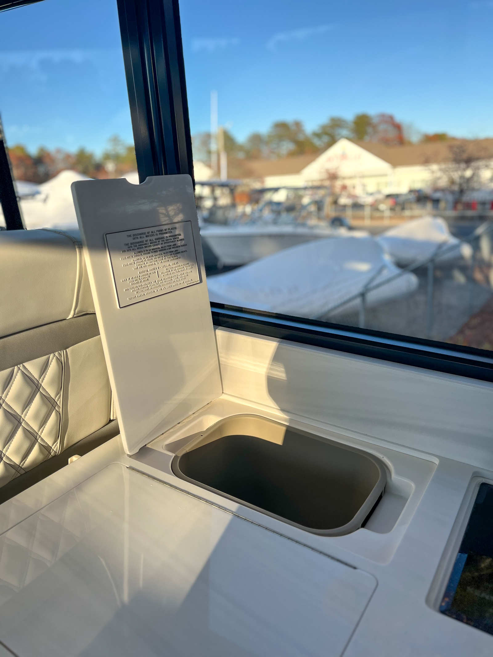 Step aboard the Regal 36 XO and discover a world of premium features designed for comfort and convenience. The yacht’s coastal package enhances its versatility, making it ideal for both short trips and extended journeys. The Mediterranean Blue canvas adds a touch of elegance, while the salon floor in toasted oak creates a warm, inviting atmosphere. Strato Wind countertops provide a modern aesthetic and durable workspace for onboard entertaining.Enjoy the convenience of the manual bow sunshade system, offering protection from the sun while you relax on deck. The titanium anchor windlass with rope and chain ensures secure anchoring, while the cockpit refrigerator keeps your refreshments chilled and ready. Stay connected and safe with the Garmin VHF radio, a vital tool for communication on the water.