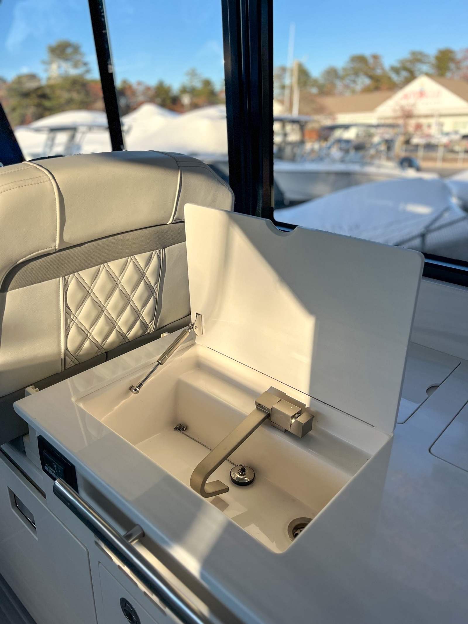 Powering the Regal 36 XO are twin Yamaha F450UCA2 engines, finished in striking white. Together, these engines deliver a robust 900 horsepower, ensuring exhilarating speed and smooth handling. Whether you’re cruising along the coast or venturing out for a day of exploration, the Regal 36 XO’s advanced propulsion system offers reliable performance and impressive maneuverability. The combination of twin engines and cutting-edge technology means you can expect a responsive ride, efficient fuel consumption, and the confidence to tackle a variety of water conditions.