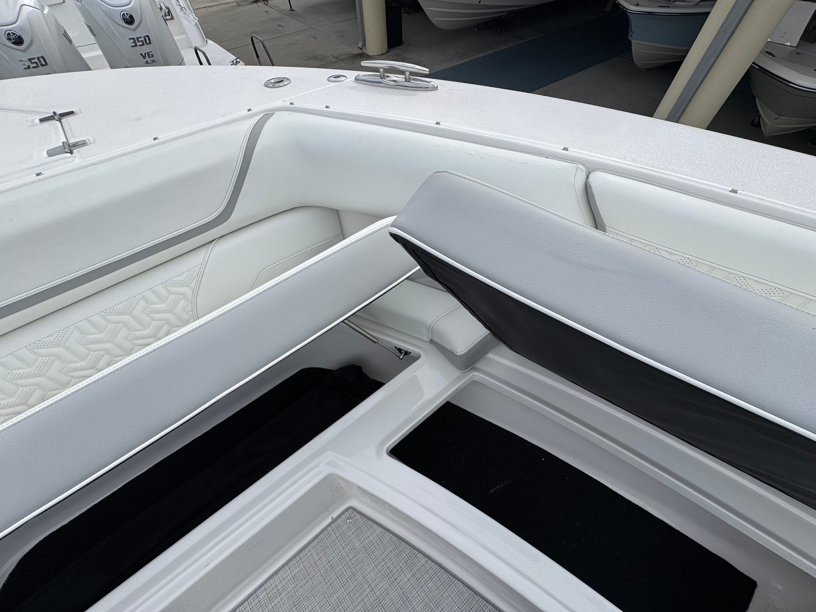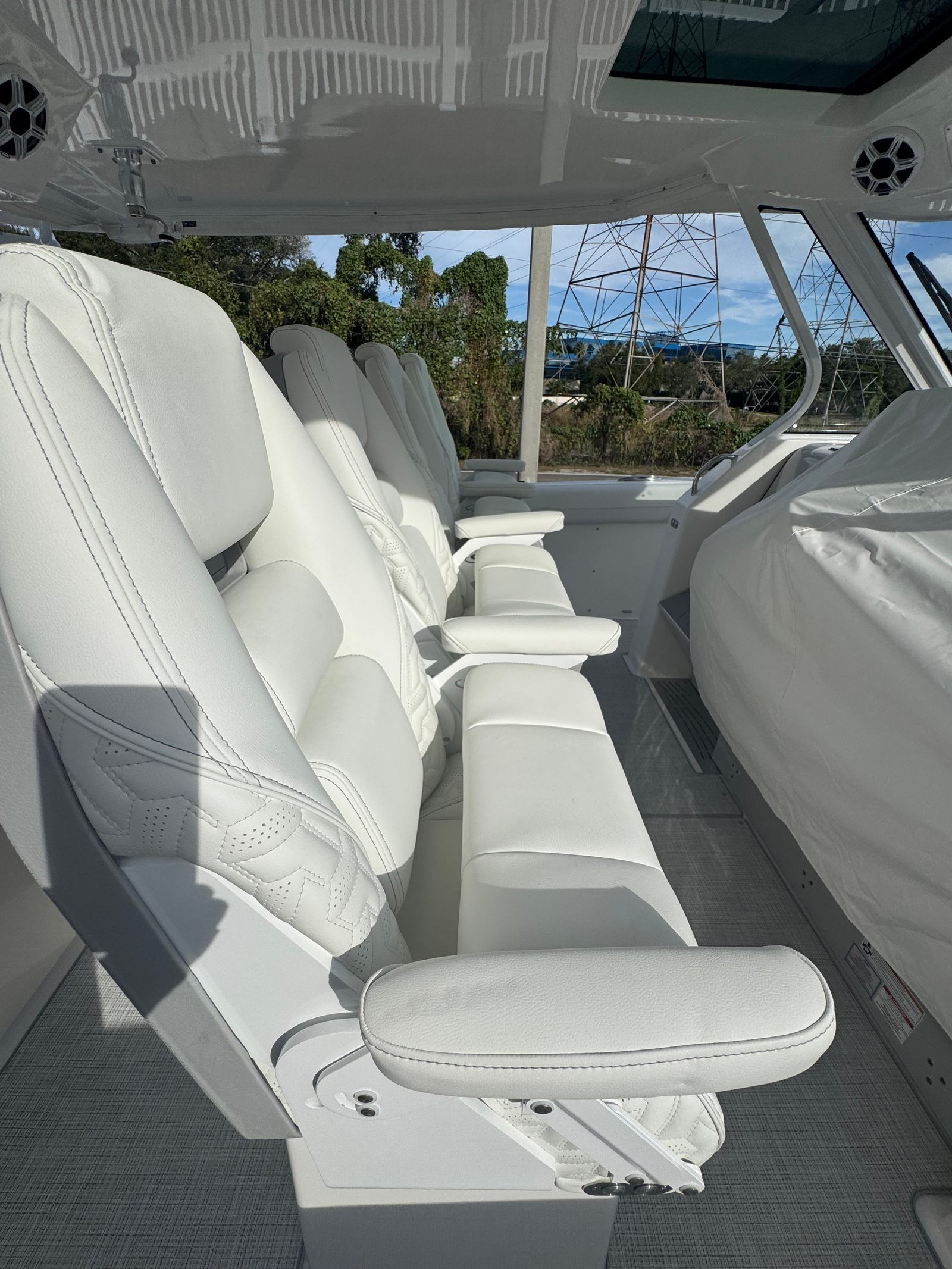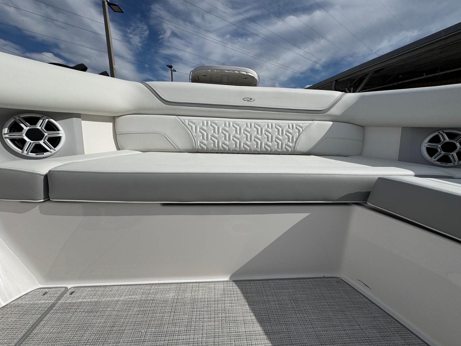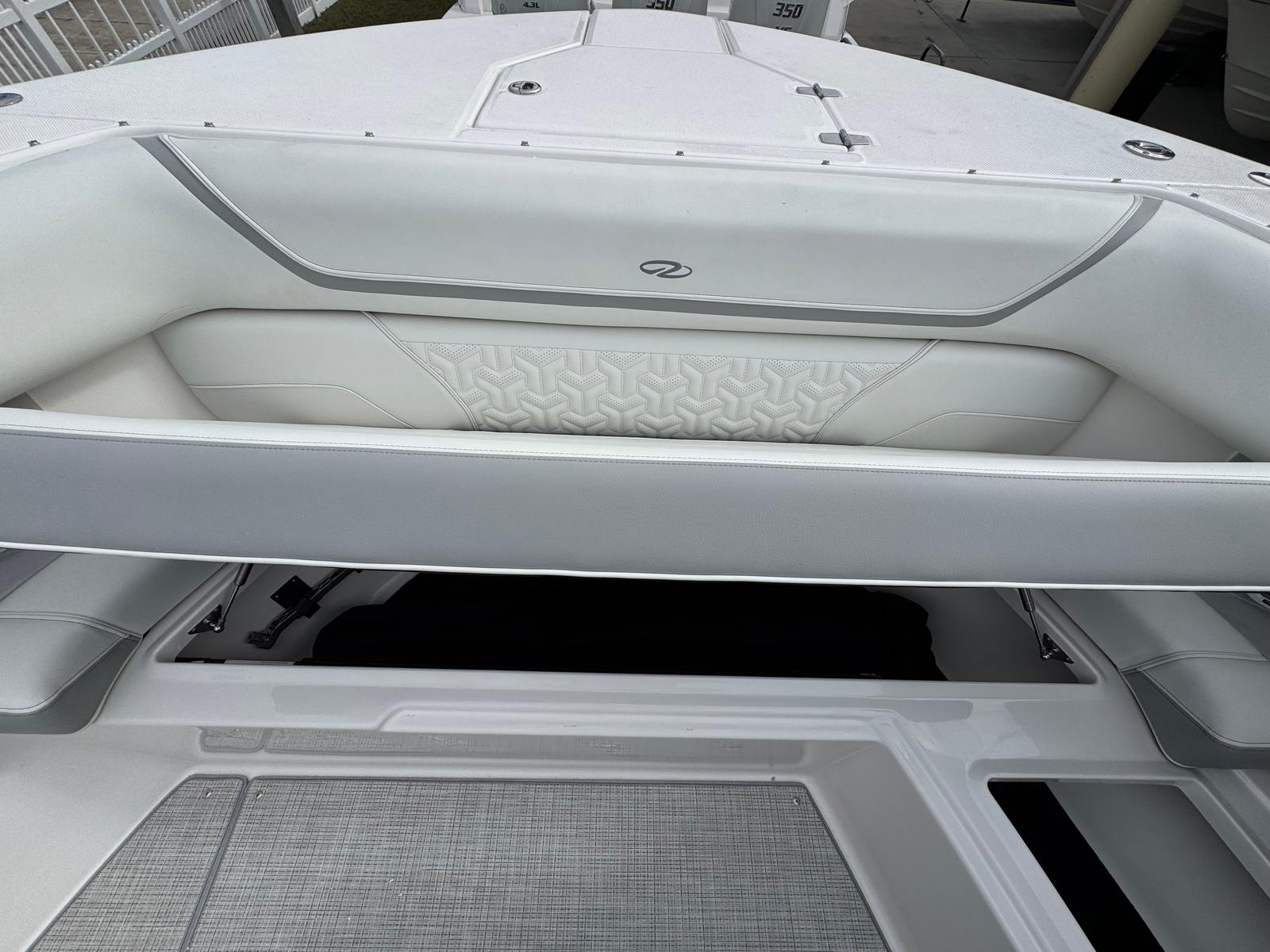 The Regal 38 SAV is designed with both style and functionality in mind. Its Steel Grey hull is complemented by a Graphite bootstripe, while the bottom color in Tahiti Beach White adds a touch of elegance. The yacht’s exterior zones are thoughtfully coordinated, featuring Pure White and Lunar Grey finishes that create a harmonious and modern look. The triple Yamaha 350 engines are a standout feature, providing unmatched power and reliability.Inside and out, the Regal 38 SAV offers a spacious and inviting environment. The open deck layout is perfect for socializing, with plenty of room for guests to relax and enjoy the scenery. The yacht’s design maximizes usable space, ensuring that every inch is both practical and luxurious. High-quality materials and finishes are used throughout, reflecting Regal’s commitment to excellence.
