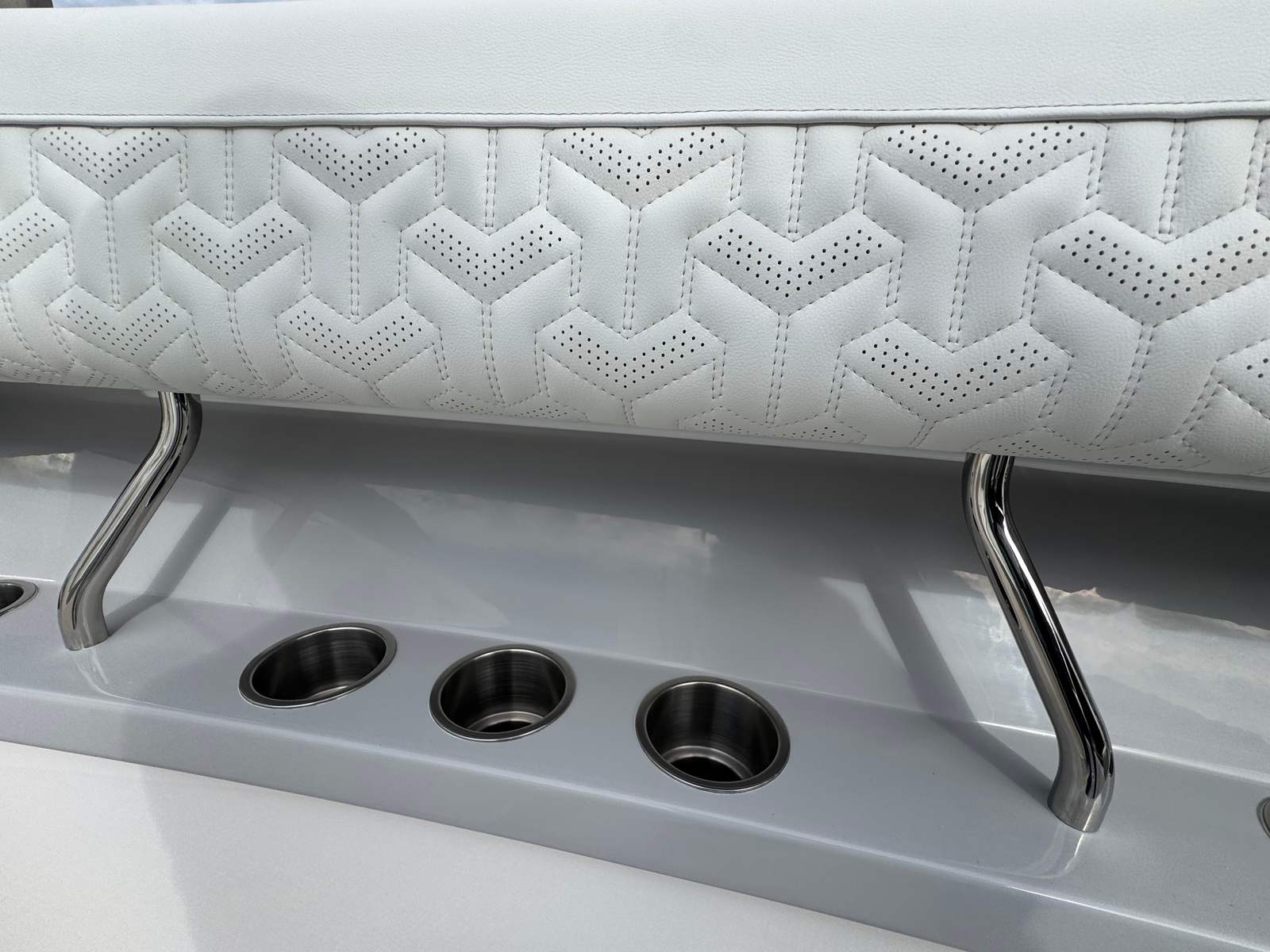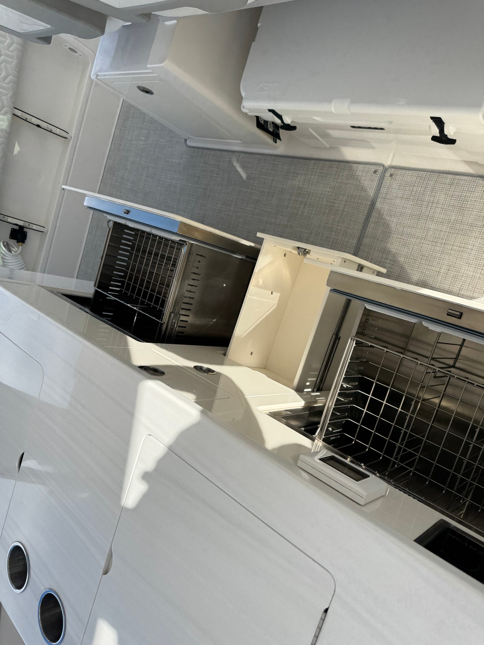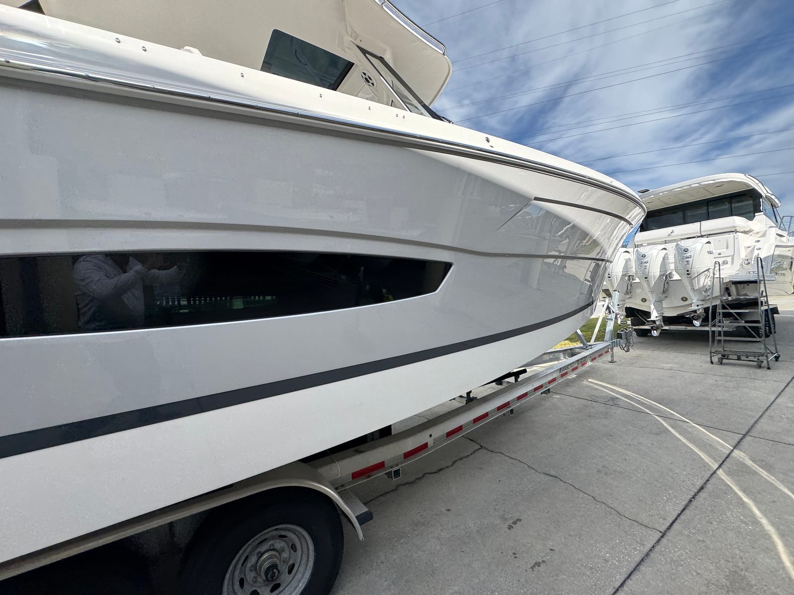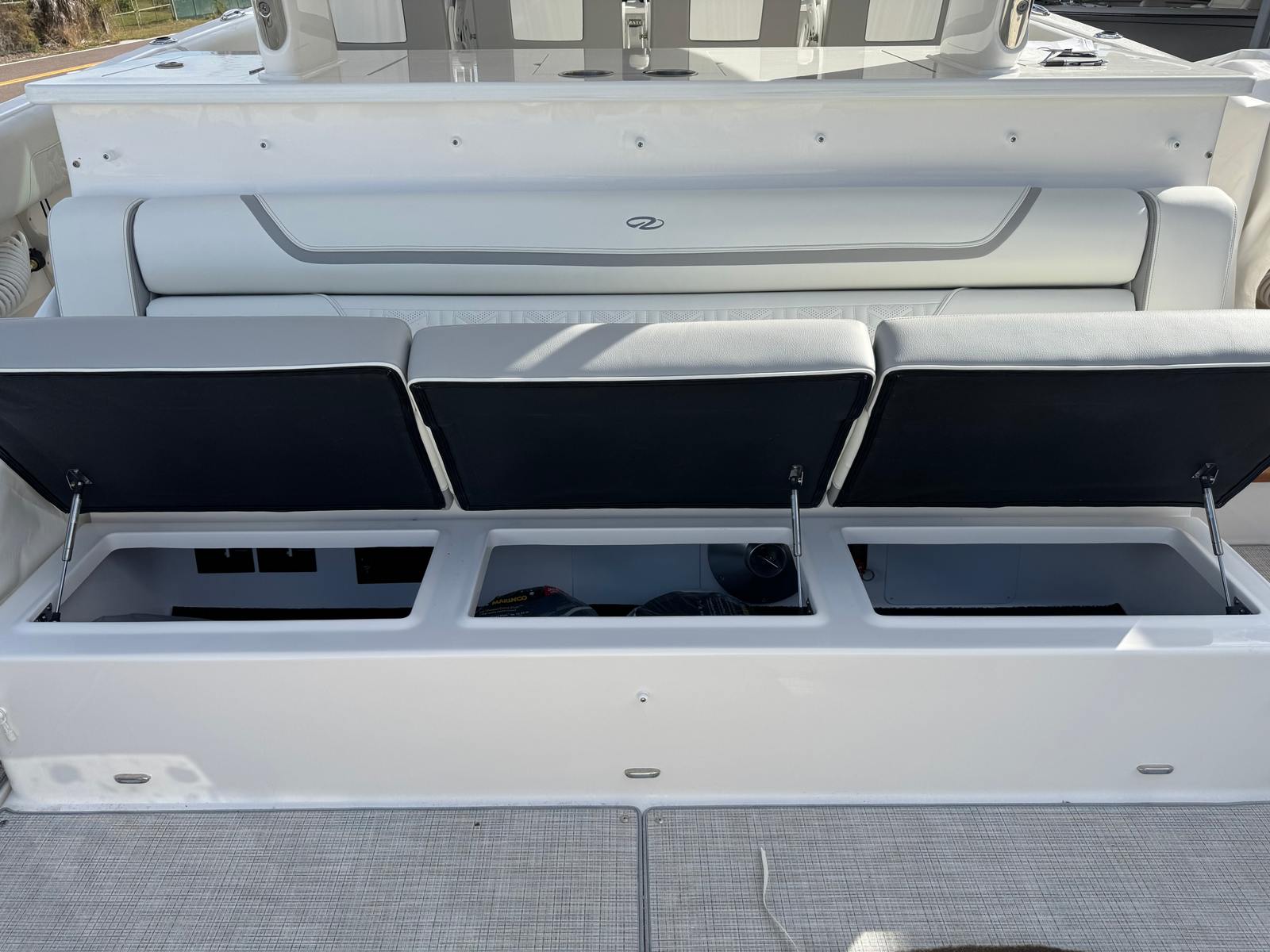The Regal 38 SAV is designed with both style and functionality in mind. Its Steel Grey hull is complemented by a Graphite bootstripe, while the bottom color in Tahiti Beach White adds a touch of elegance. The yacht’s exterior zones are thoughtfully coordinated, featuring Pure White and Lunar Grey finishes that create a harmonious and modern look. The triple Yamaha 350 engines are a standout feature, providing unmatched power and reliability.Inside and out, the Regal 38 SAV offers a spacious and inviting environment. The open deck layout is perfect for socializing, with plenty of room for guests to relax and enjoy the scenery. The yacht’s design maximizes usable space, ensuring that every inch is both practical and luxurious. High-quality materials and finishes are used throughout, reflecting Regal’s commitment to excellence.