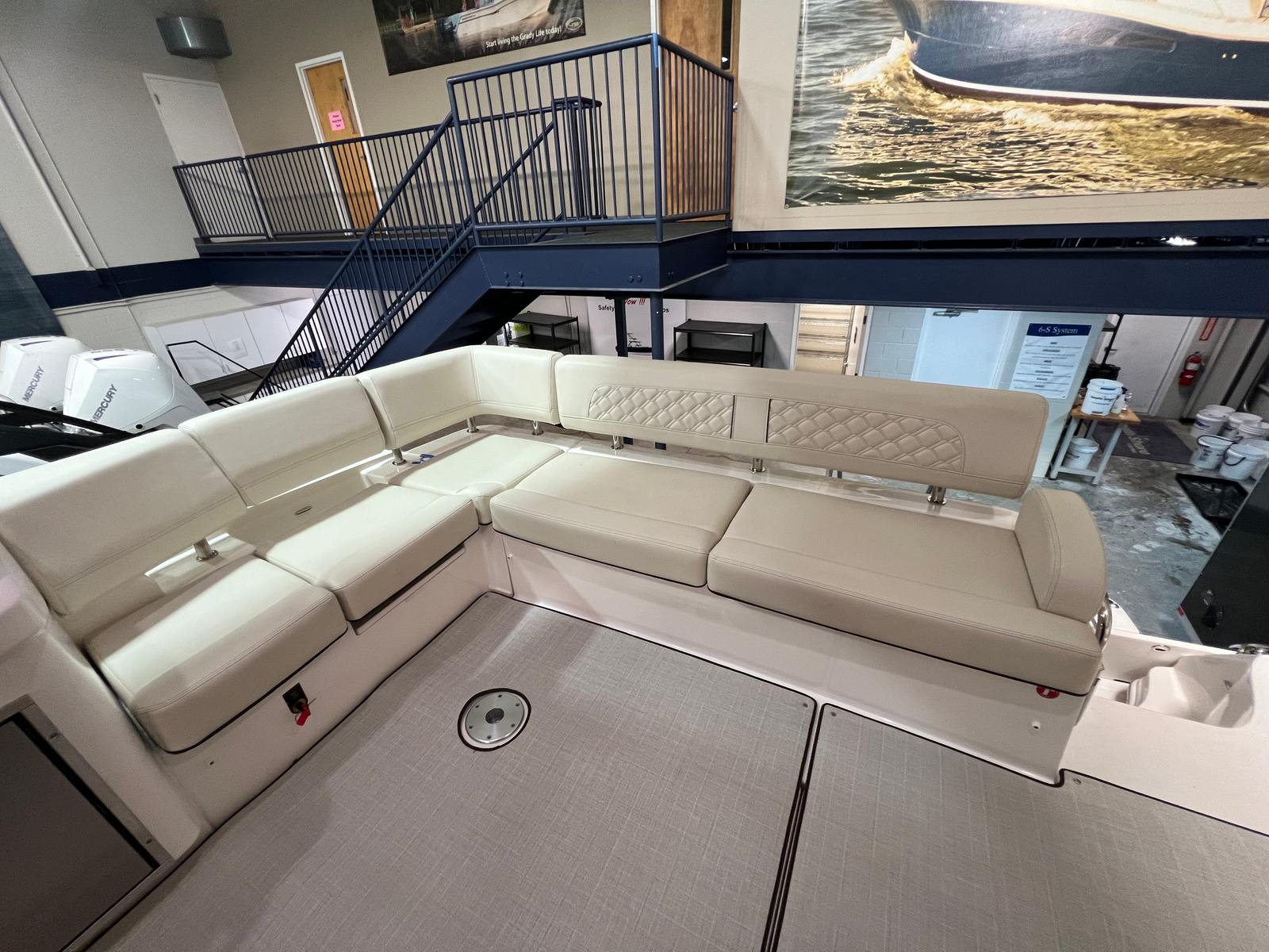 This Regal yacht is perfect for a variety of boating adventures. Imagine hosting elegant cocktail parties on the spacious deck, with the stunning black hull and Tahiti Beach White accents providing a beautiful backdrop. Family outings become unforgettable experiences, with plenty of room for everyone to relax and enjoy the ride. The yacht’s powerful engines and smooth handling make it ideal for exploring new destinations, whether you’re cruising along the coast or venturing into open waters. The comfortable seating and luxurious finishes create a welcoming environment for fishing trips, romantic getaways, or simply unwinding with friends.