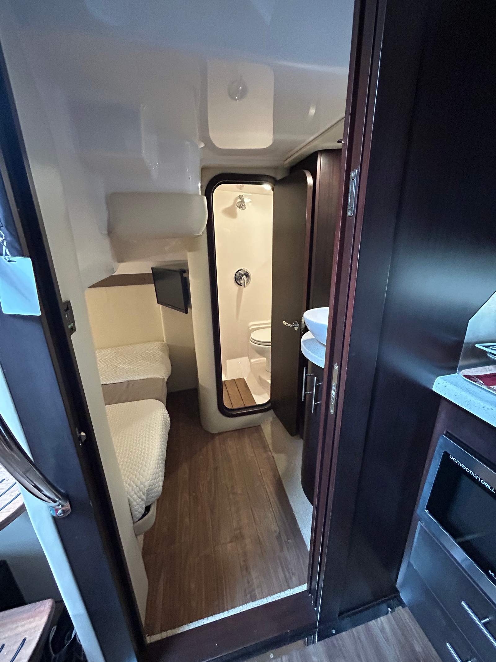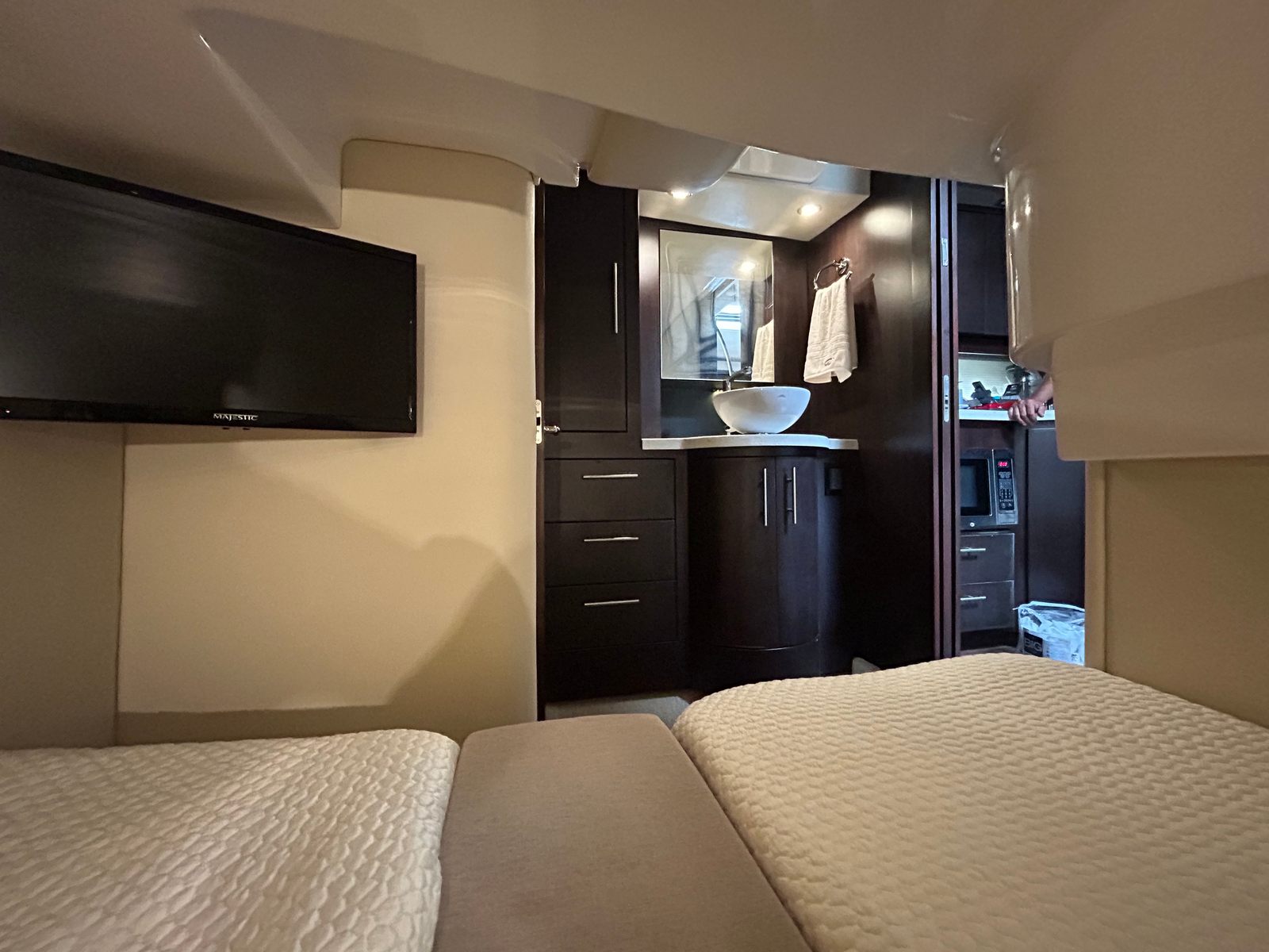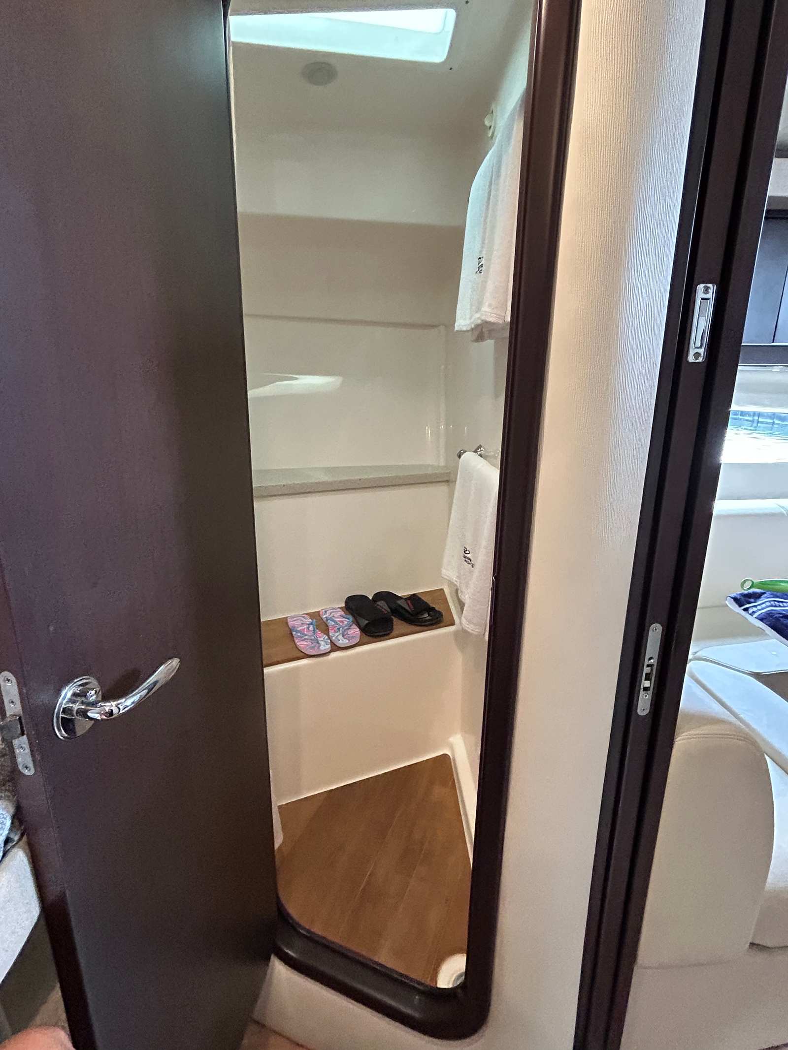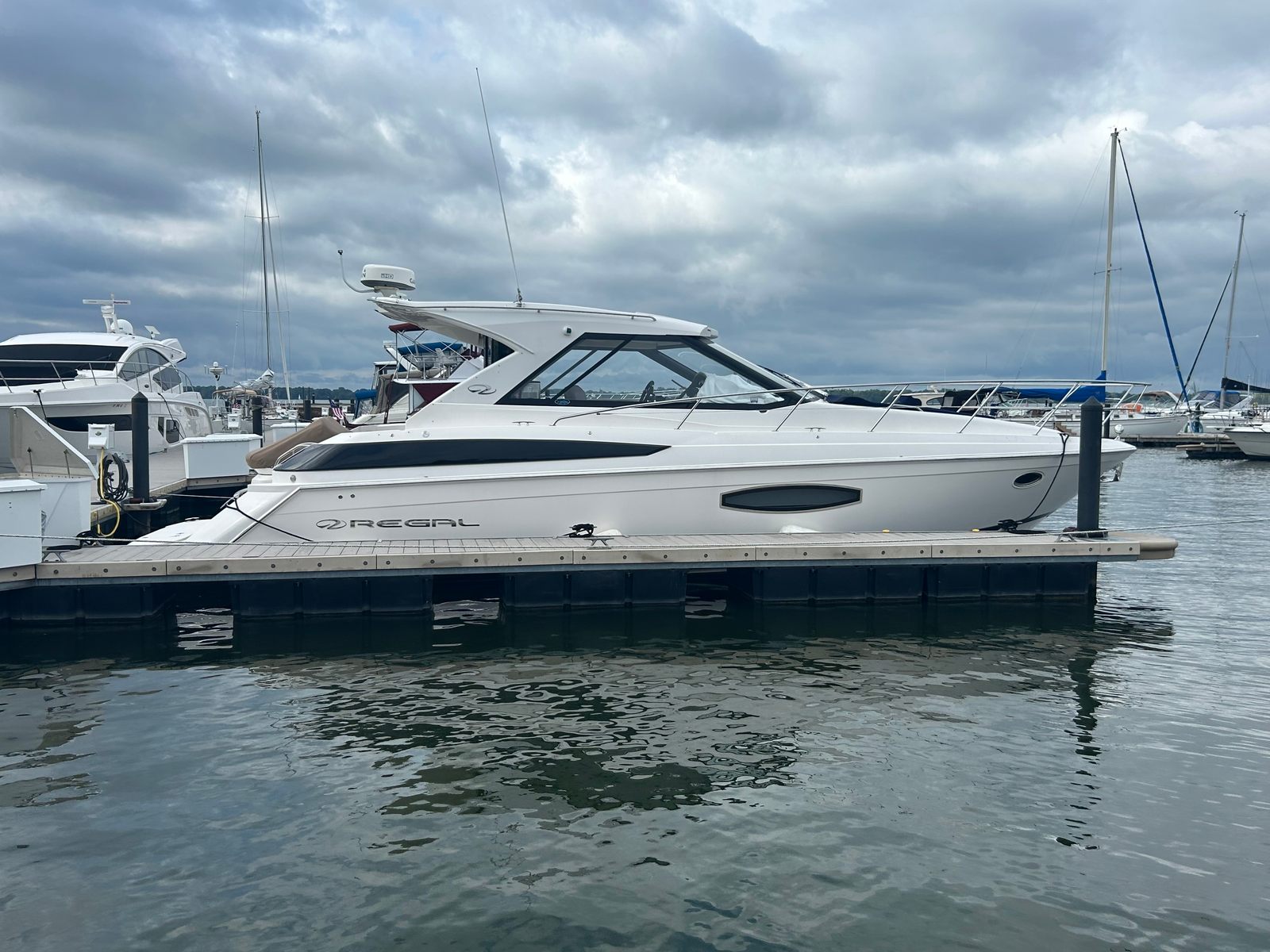 Practicality meets luxury in the Regal 42 Sport Coupe. The generous storage options throughout the yacht ensure that all your gear, supplies, and personal items are neatly stowed and easily accessible. The extended swim platform makes boarding and disembarking a breeze, while also providing a safe and convenient spot for water activities. The yacht's efficient design and reliable battery system help maximize fuel efficiency and minimize downtime, so you can spend more time enjoying the water and less time worrying about maintenance. Docking is simplified by the yacht's responsive handling and intuitive controls, making it easy for both seasoned captains and newcomers to enjoy stress-free boating.