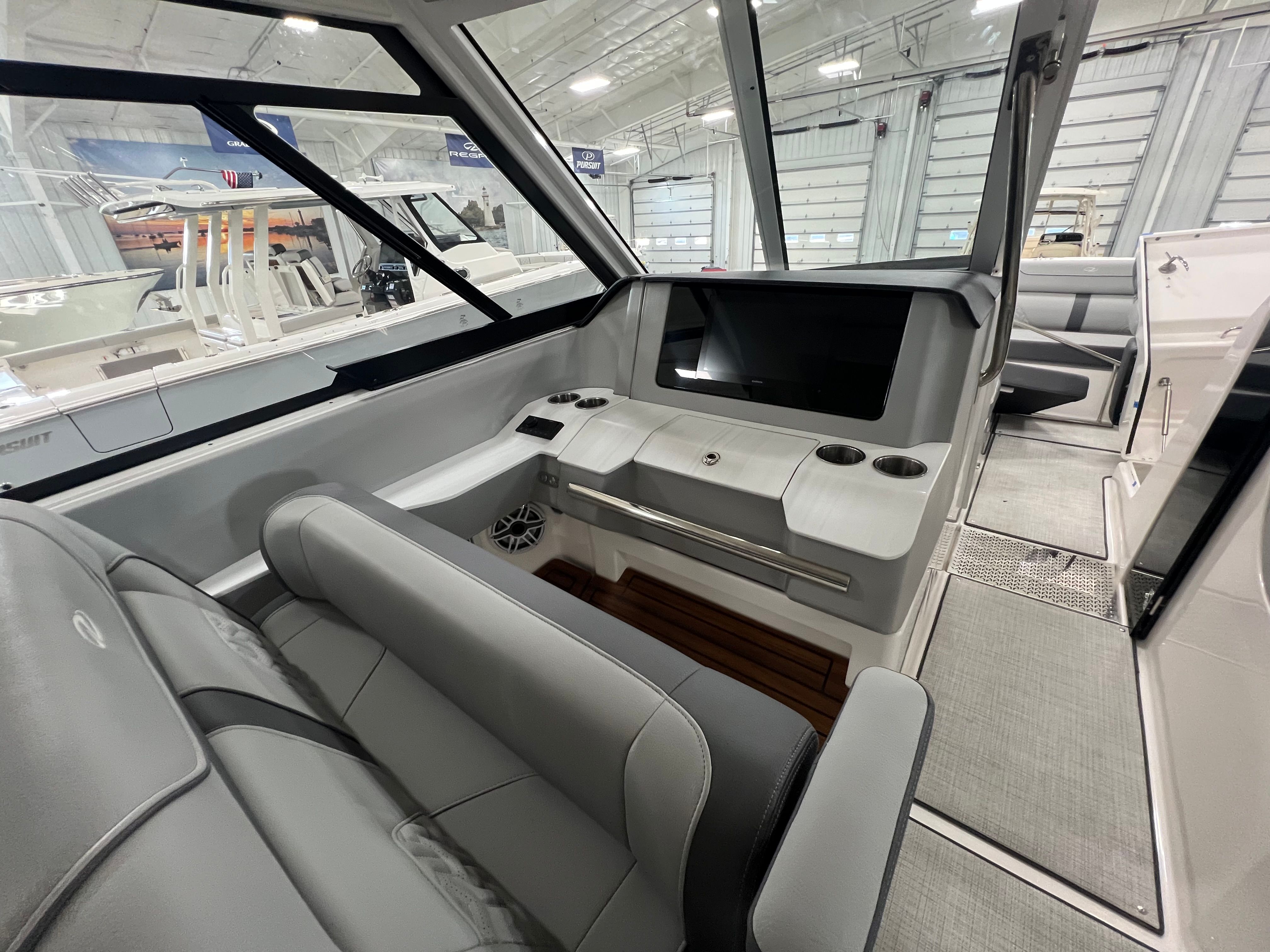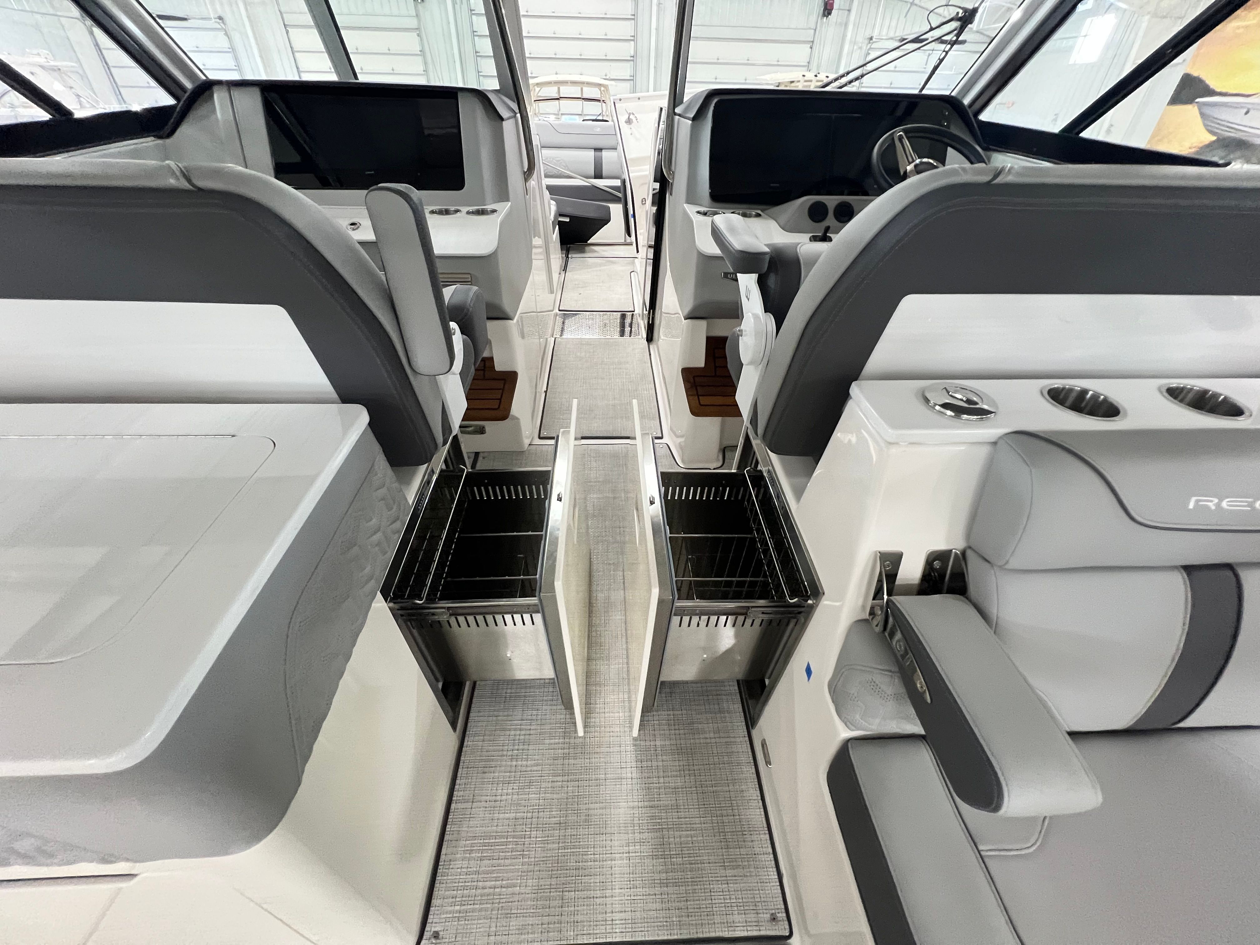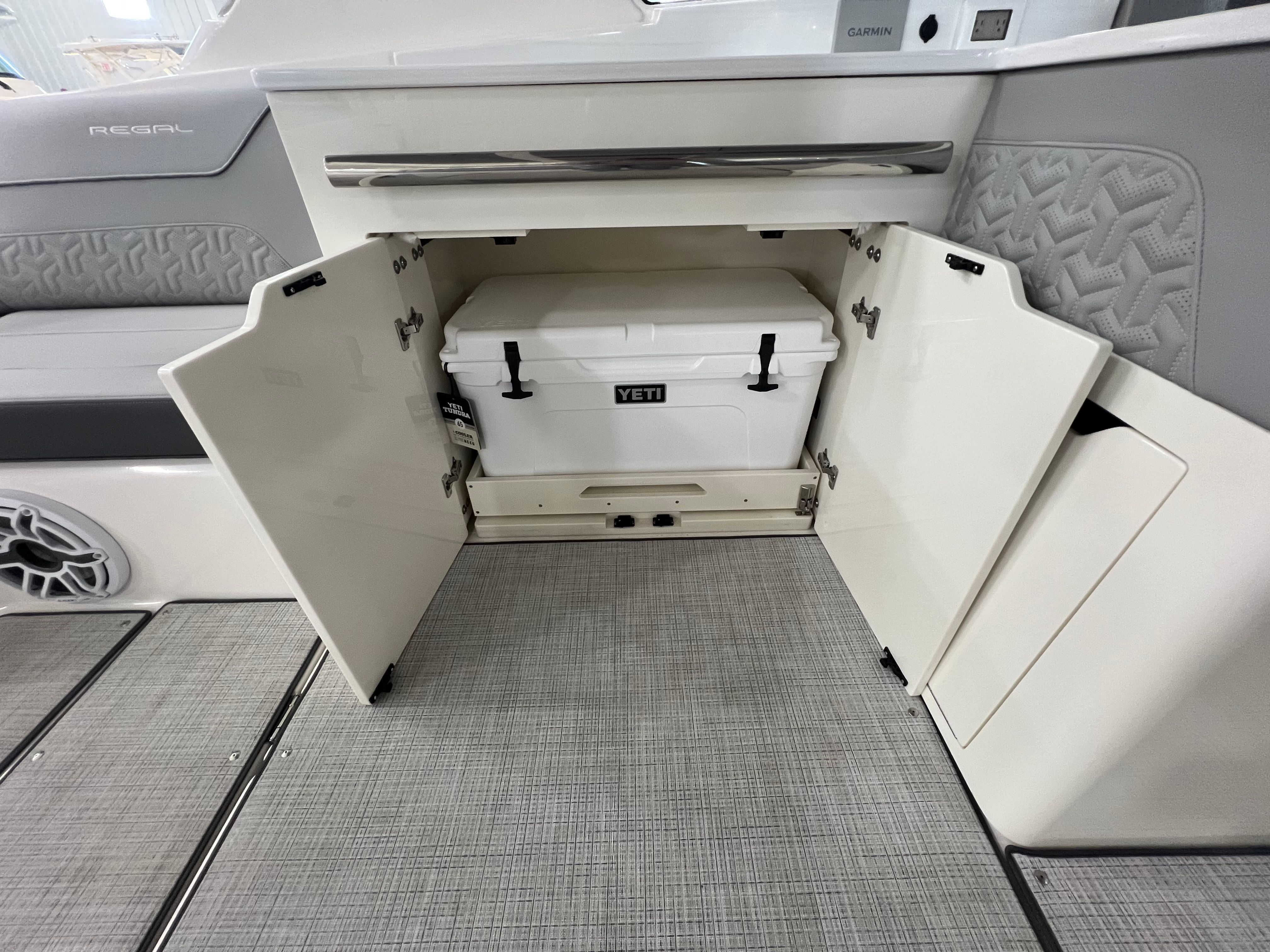 The Regal LS36 is designed with the needs of modern boaters in mind. The ample storage throughout the boat ensures that all your gear, water toys, and personal items are neatly stowed yet easily accessible. The bow thruster simplifies docking, making it stress-free to maneuver in tight spaces or busy marinas. The efficient design of the twin engines helps maximize fuel economy, so you can spend more time enjoying the water and less time refueling.The durable materials and thoughtful construction mean that maintenance is straightforward, allowing you to focus on what matters most—enjoying your time on the water. The versatile cockpit enclosure provides shelter when needed, extending your boating season and enhancing comfort during unpredictable weather.