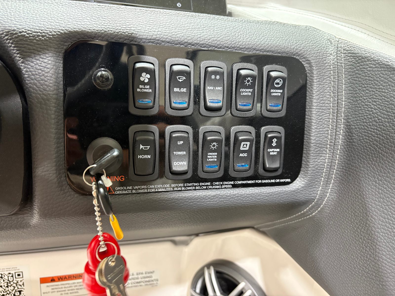 The Regal LS4 Surf is loaded with premium features designed to enhance comfort, convenience, and fun on the water. The Mediterranean Blue color scheme is complemented by Black canvas and Titanium accents, creating a stylish and inviting atmosphere throughout the boat. The included travel storage cover in Black ensures your investment is protected when not in use, while the Black canvas adds a touch of elegance and durability.Step into the cockpit and you will find a plush Seagrass Mat that provides a soft, comfortable surface underfoot, perfect for barefoot relaxation. The SeaDek Swim Platform offers a non-slip, cushioned area for easy access to the water, making it ideal for swimming, boarding, or lounging at anchor. The dual battery switch with tray and cables ensures reliable power management, so you can enjoy your day on the water without worry.