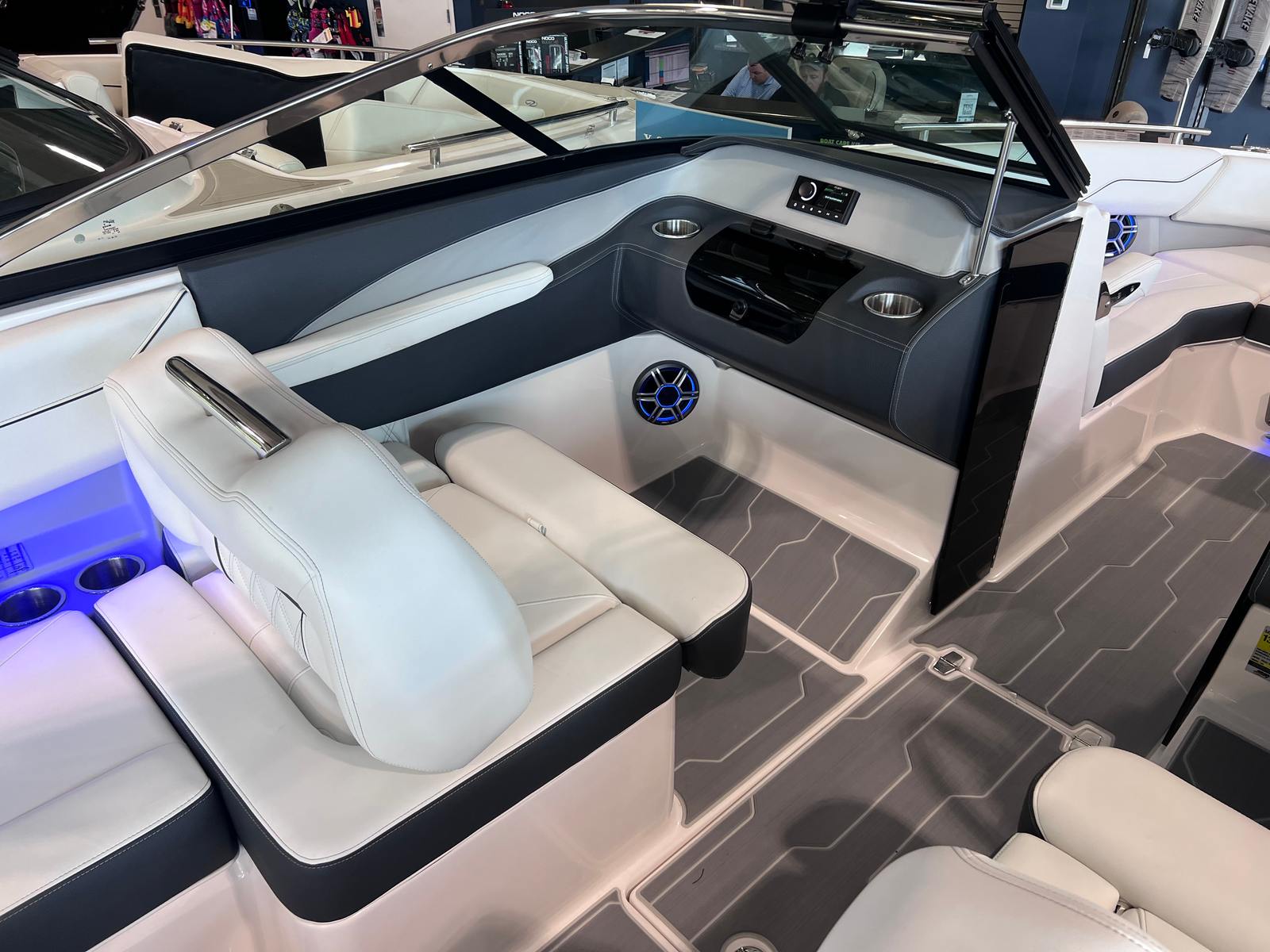 The 2026 Regal LS4 Surf is packed with premium features designed to maximize your enjoyment and convenience. The hull, bootstripe, and bottom colors in Tahiti Beach White and Graphite create a striking visual statement, while the Titanium accents add a touch of modern elegance. The included travel storage cover in black and black canvas provide protection and style, keeping your boat in pristine condition when not in use.Step aboard and you will immediately notice the SeaDek cockpit sole and SeaDek swim platform, offering a comfortable, non-slip surface that is perfect for barefoot relaxation or gearing up for water sports. The dual battery switch with tray and cables ensures reliable power management, giving you peace of mind during long days on the water.