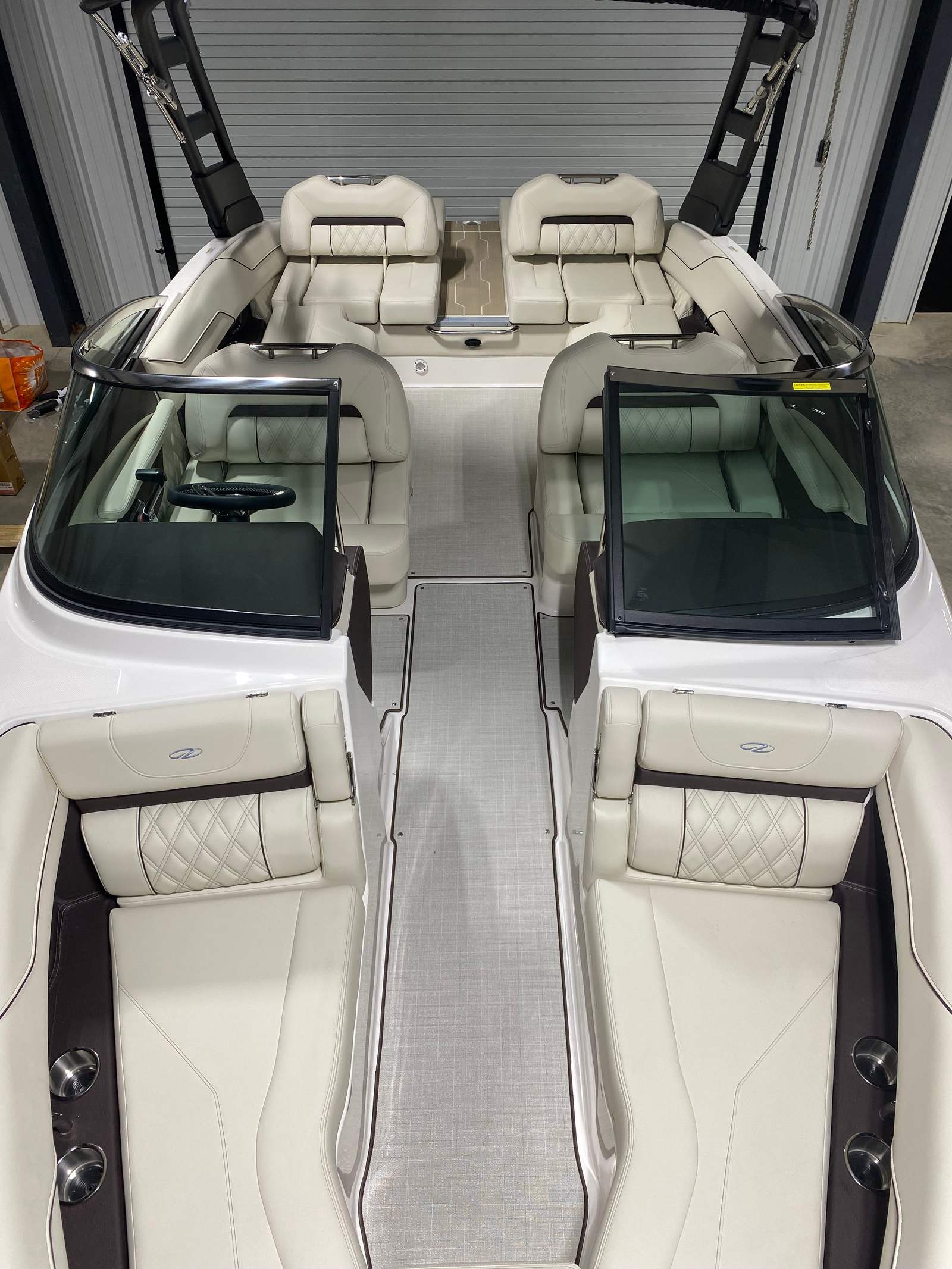 The 2025 Regal LS4 LTD is a brand-new bowrider, measuring an impressive 24.42 feet in length. This spacious design provides ample room for friends and family to stretch out and enjoy the ride, while the sleek lines and modern profile ensure you’ll turn heads wherever you go. Regal’s reputation for quality craftsmanship is evident in every detail, from the premium materials to the innovative layout. The LS4 LTD’s striking Tahiti Beach White hull, accented with a bold black bootstripe and matching bottom color, creates a sophisticated look that’s both timeless and contemporary.