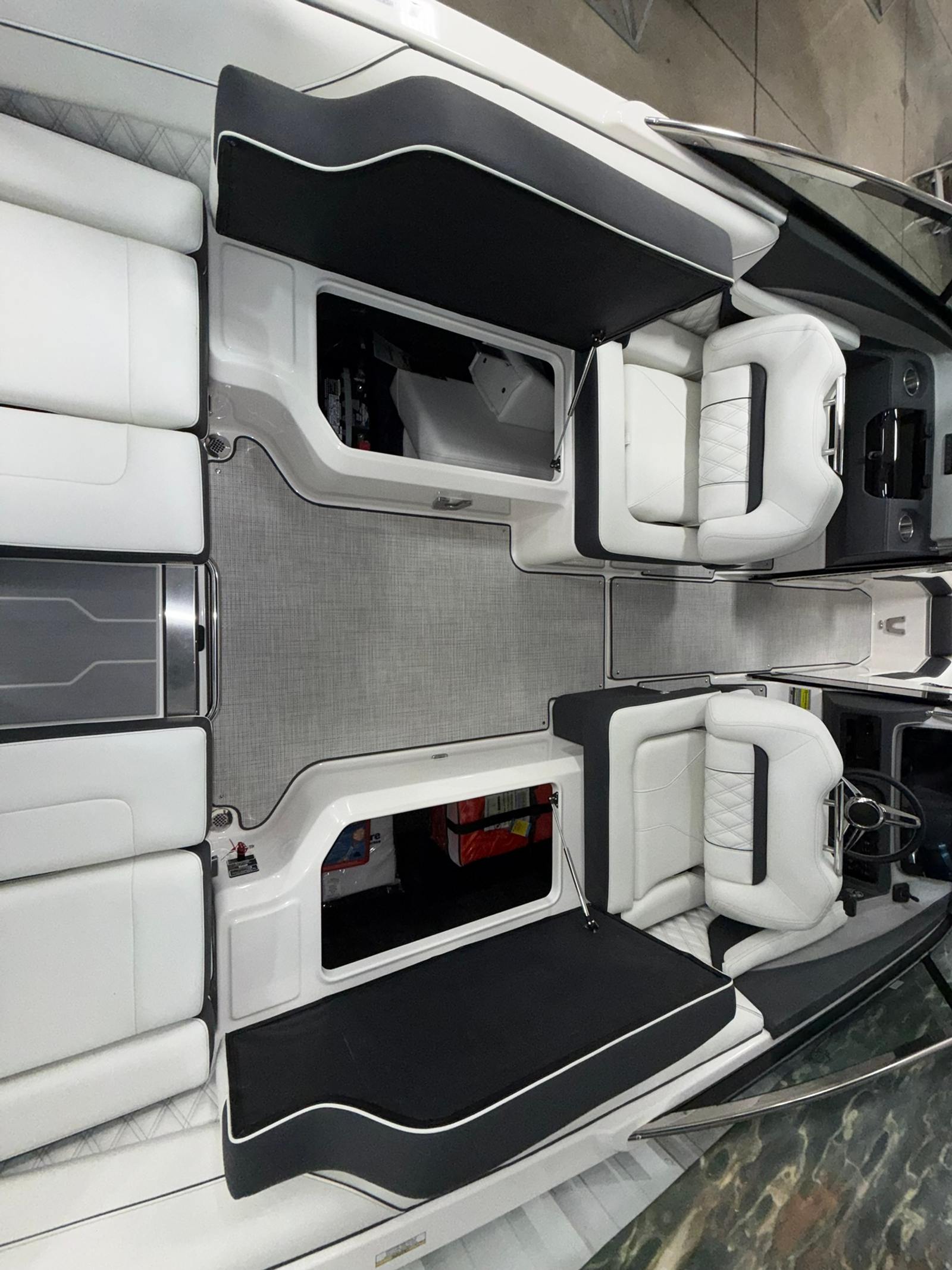 The Regal LS4 is as practical as it is luxurious. Its user-friendly design makes docking and maneuvering a breeze, thanks to the integrated Bow Thruster and Bow Walk-Thru Doors. The included covers help protect your boat from sun and weather, preserving its beauty and value for years to come. The Battery Charger keeps your systems powered up and ready, so you can focus on enjoying your time on the water. Storage is thoughtfully integrated throughout the LS4, allowing you to stow gear, water toys, and personal items with ease. The Cockpit Seagrass Mat not only adds comfort but is also easy to clean, making maintenance simple and stress-free. Every detail of the LS4 is designed to enhance your boating experience, from the moment you step aboard to the end of your adventure.