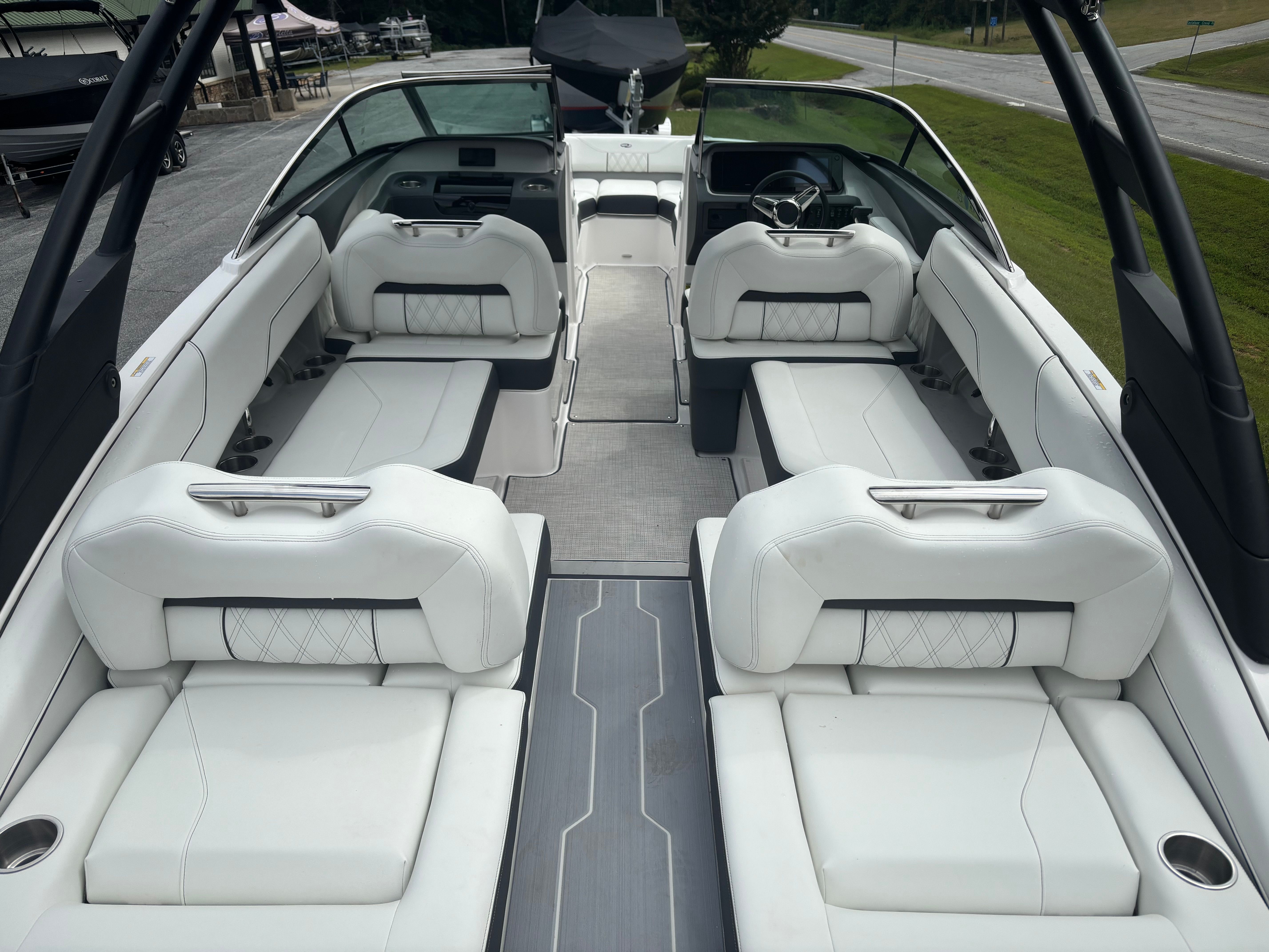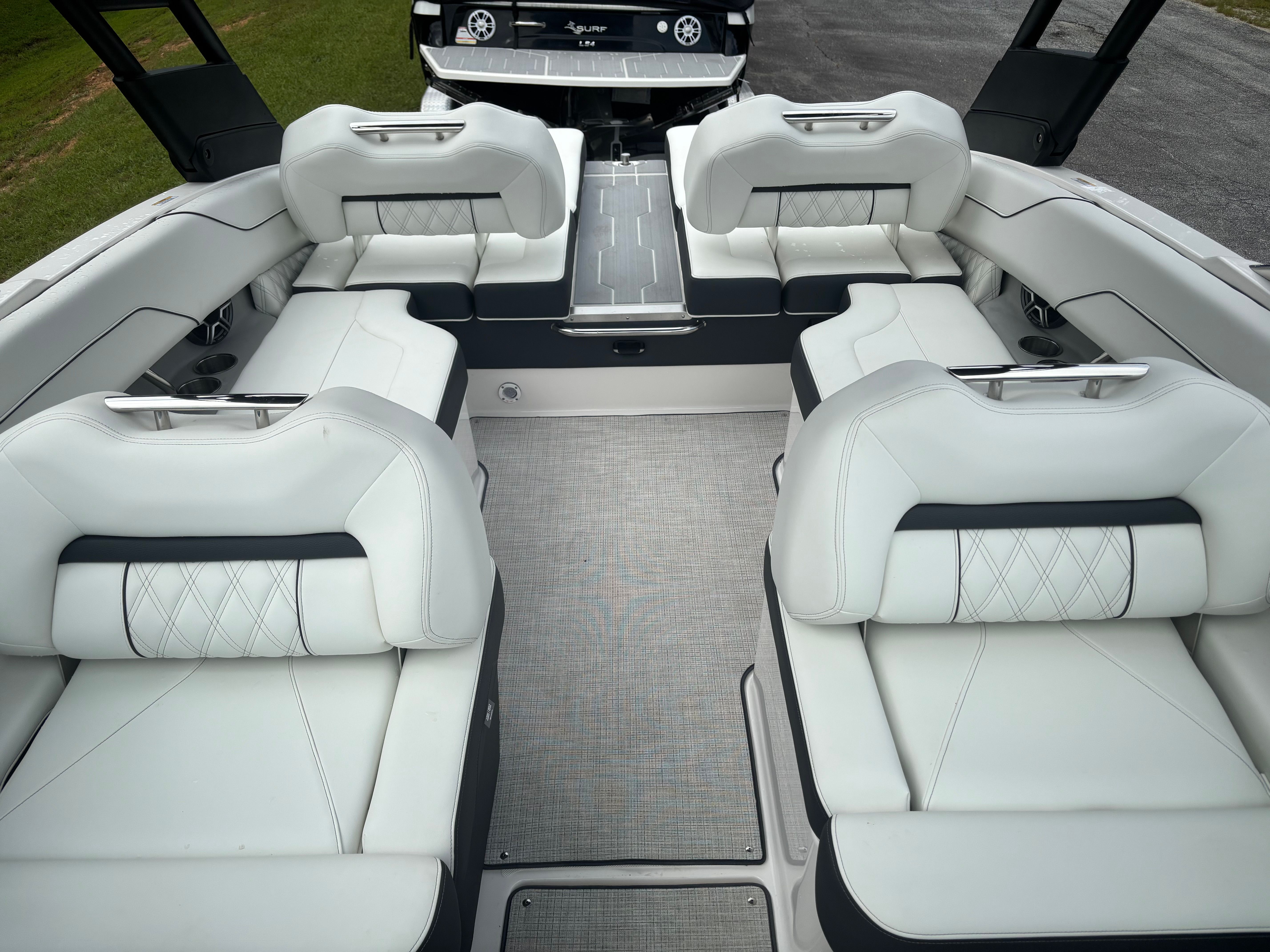 The Regal LS4 Bowrider is packed with premium features that elevate your boating experience. The Titanium and Graphite accents give the boat a contemporary, upscale look, while the Tahiti Beach White finish adds a touch of elegance and sophistication. The Cockpit Seagrass Mat offers a plush, comfortable surface underfoot, enhancing the overall ambiance and making every trip feel like a luxury escape.For added convenience, the LS4 is equipped with Fender Clips, making docking and mooring a breeze. The Dual Garmin 943 navigation system provides state-of-the-art technology for chart plotting and route planning, ensuring you stay on course with confidence. The PowerTower S2 in sleek black not only adds to the boat’s striking appearance but also offers practical benefits for watersports and storage.Show your patriotic spirit with the Stainless Steel Flag Pole and U.S. Flag, a stylish touch that sets your boat apart. The Stereo Performance & Lighting Package transforms the LS4 into the ultimate entertainment hub, allowing you to set the mood with vibrant lighting and crystal-clear sound for every occasion.