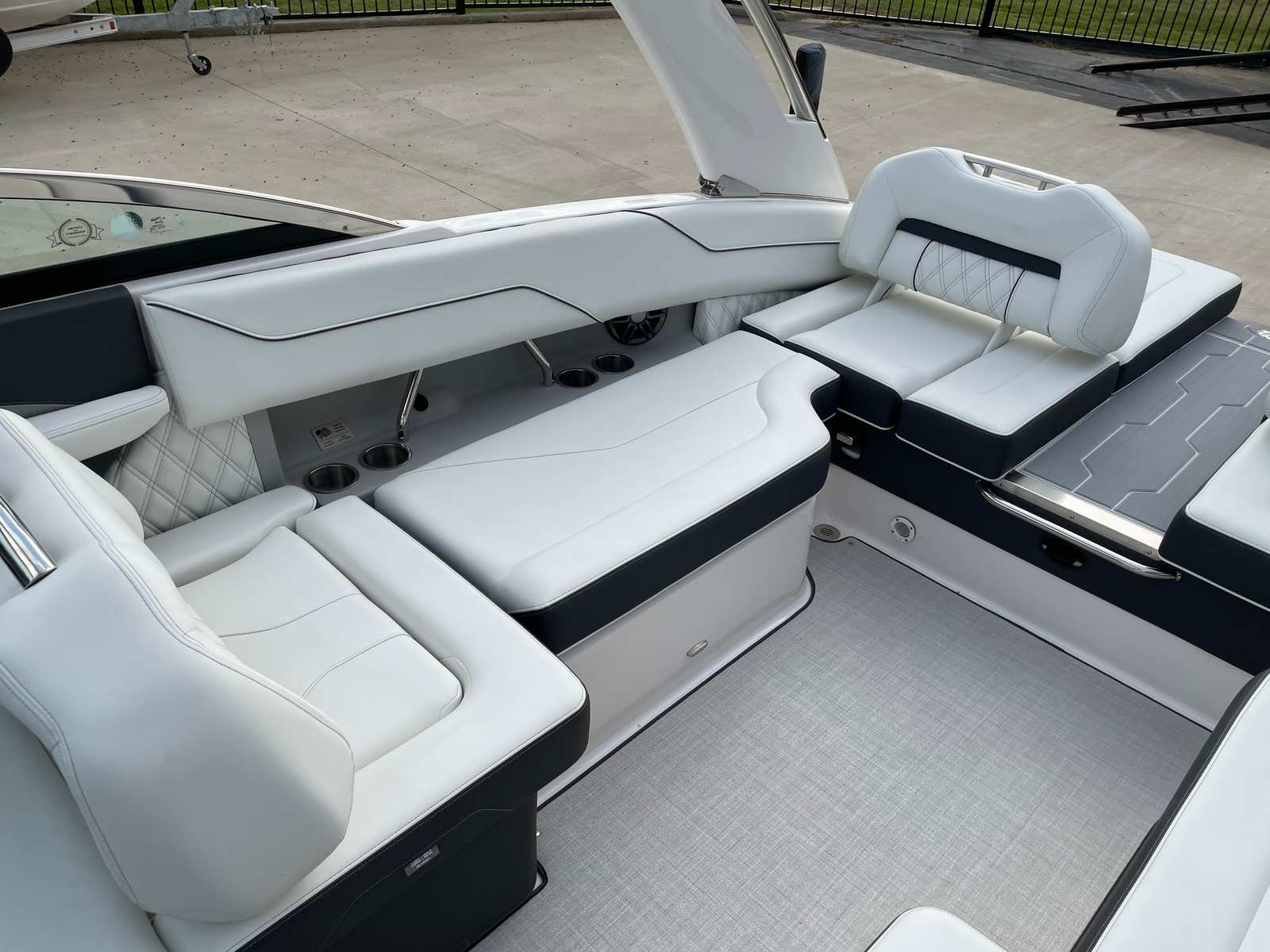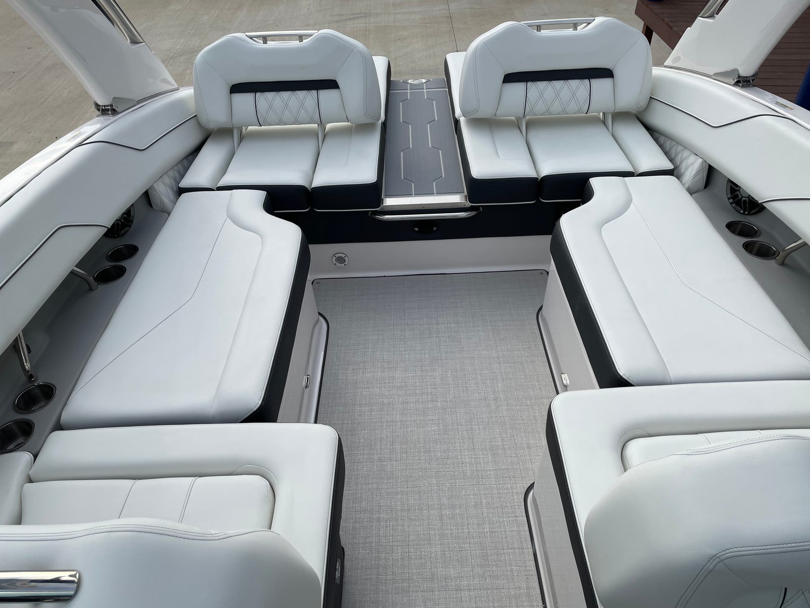 Under the hood, the Regal LS4 is powered by a robust single engine delivering an impressive 350 horsepower. This powerful setup ensures exhilarating acceleration, smooth cruising, and responsive handling, whether you’re slicing through waves or enjoying a leisurely ride. The advanced engineering behind the LS4’s propulsion system guarantees a thrilling yet controlled boating experience, making it ideal for water sports, day trips, or simply soaking up the sun. The dual battery switch with tray and cables, along with a battery charger, ensures you have reliable power for all your adventures, giving you peace of mind on every outing.