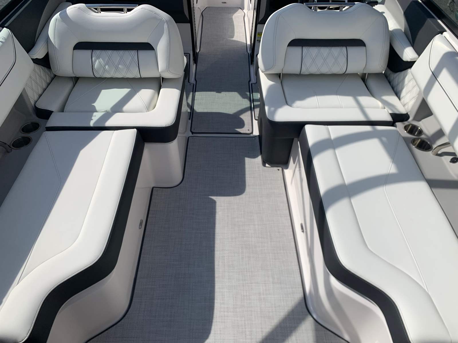 Practicality meets luxury in the Regal LS4 Bowrider. The generous storage options make it easy to stow gear, water toys, and personal items, keeping the deck clutter-free and organized. The Travel Storage Cover protects your investment, while the Cockpit Seagrass Mat ensures easy cleanup after a day of fun. The Dual Battery Switch and Battery Charger provide peace of mind, allowing you to power electronics and accessories without draining the main battery.Docking is a breeze thanks to the LS4’s responsive handling and manageable size. Whether you’re pulling into a marina or anchoring in a secluded cove, this Regal boat for sale offers the maneuverability and control you need for stress-free operation. Fuel efficiency is enhanced by the single Volvo V8 engine, making it economical to run and maintain.