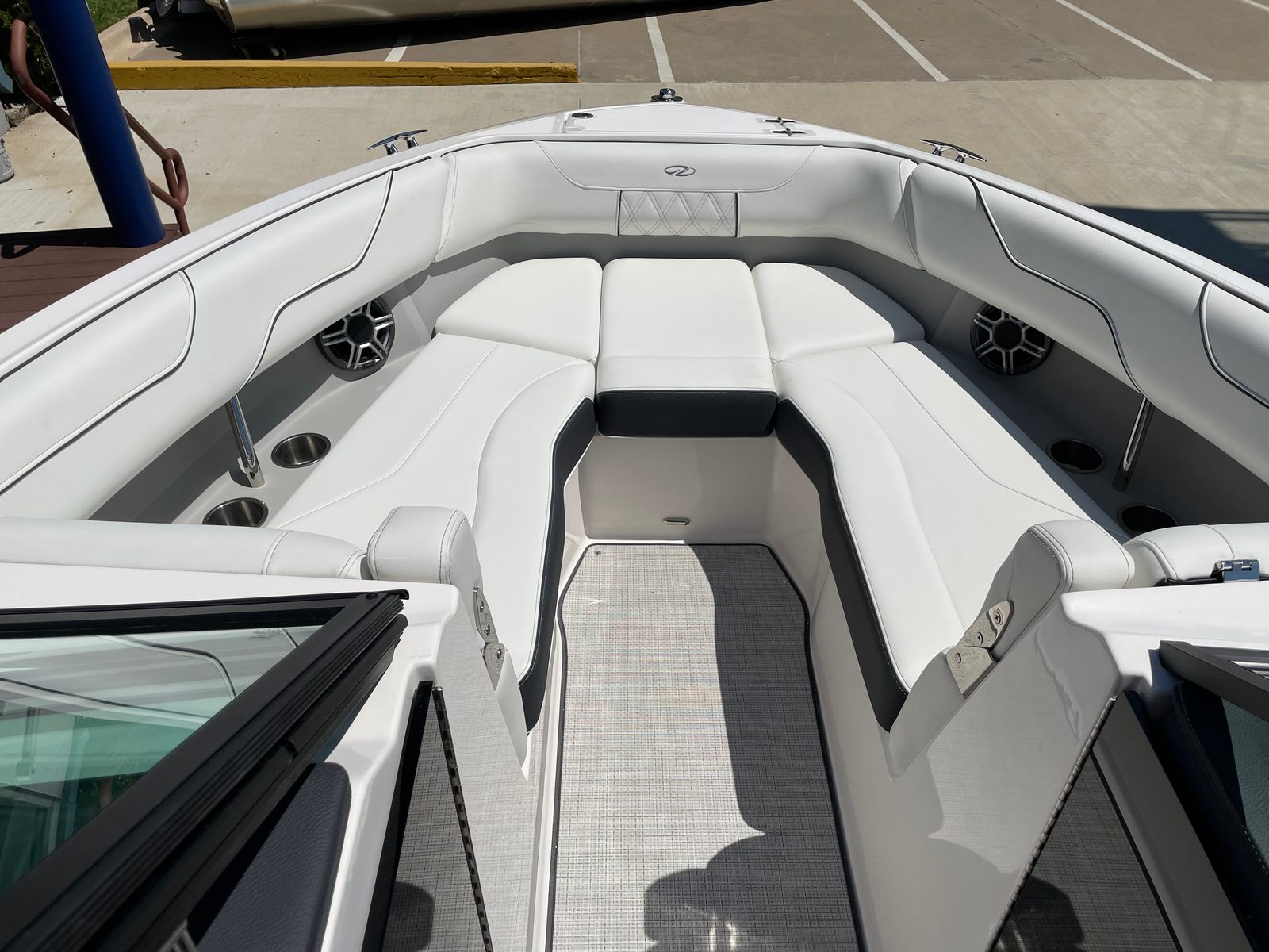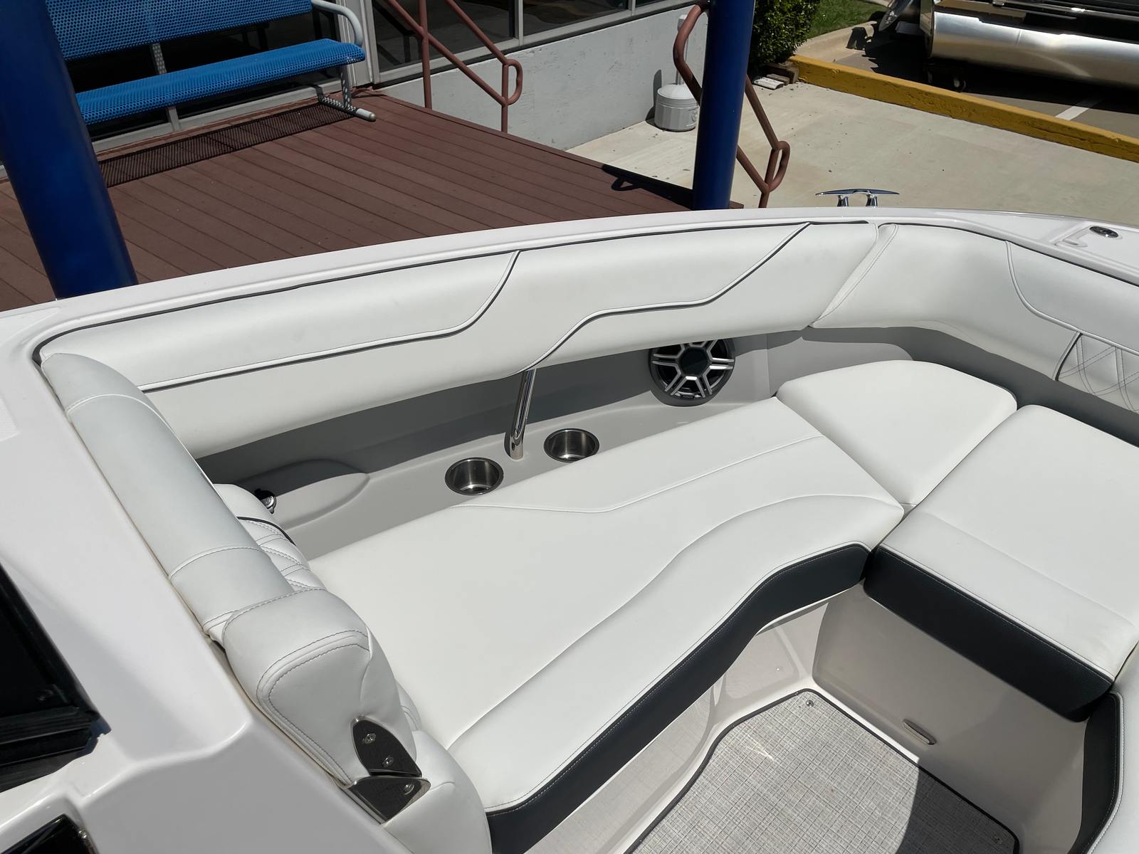 The 2026 Regal LS6 Surf is a 26.33-foot Bowrider that exudes sophistication and style from bow to stern. With its sleek Steel Grey and Belle Isle Blue exterior, complemented by Graphite and Titanium accents, this boat commands attention both on the water and at the dock. The LS6 Surf is designed for those who demand the best in both aesthetics and functionality, making it a standout option among Bowrider boats for sale. Its spacious layout ensures ample room for guests, while its innovative features cater to a wide range of boating adventures.