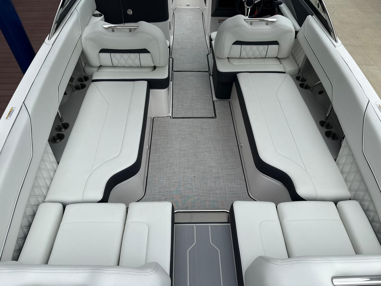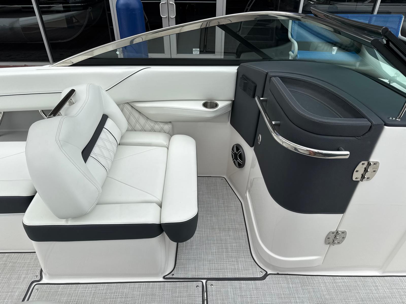 The Regal LS6 is designed with practicality in mind, making every aspect of ownership more enjoyable. The travel storage cover helps protect your boat from the elements, while the dual battery switch system offers peace of mind by ensuring you always have backup power when you need it. The docking lights simplify nighttime arrivals and departures, enhancing safety and convenience. The pump-out toilet fittings make it easy to extend your time on the water without sacrificing comfort or cleanliness. With its manageable length and advanced forward drive system, the LS6 is easy to dock and maneuver, even for those new to boating.