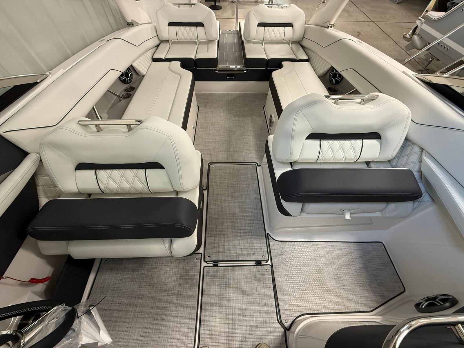 At the heart of the Regal LS6 is a powerful Volvo V8 350 EVC2 DP CAT engine, delivering an exhilarating 350 horsepower. This single-engine setup provides smooth acceleration, responsive handling, and impressive top speeds, making it ideal for water sports, cruising, or simply enjoying a spirited ride. Whether you’re navigating open waters or gliding through tight turns, the LS6’s advanced hull design ensures stability and efficiency, while the engine’s modern technology offers reliable performance and fuel economy.