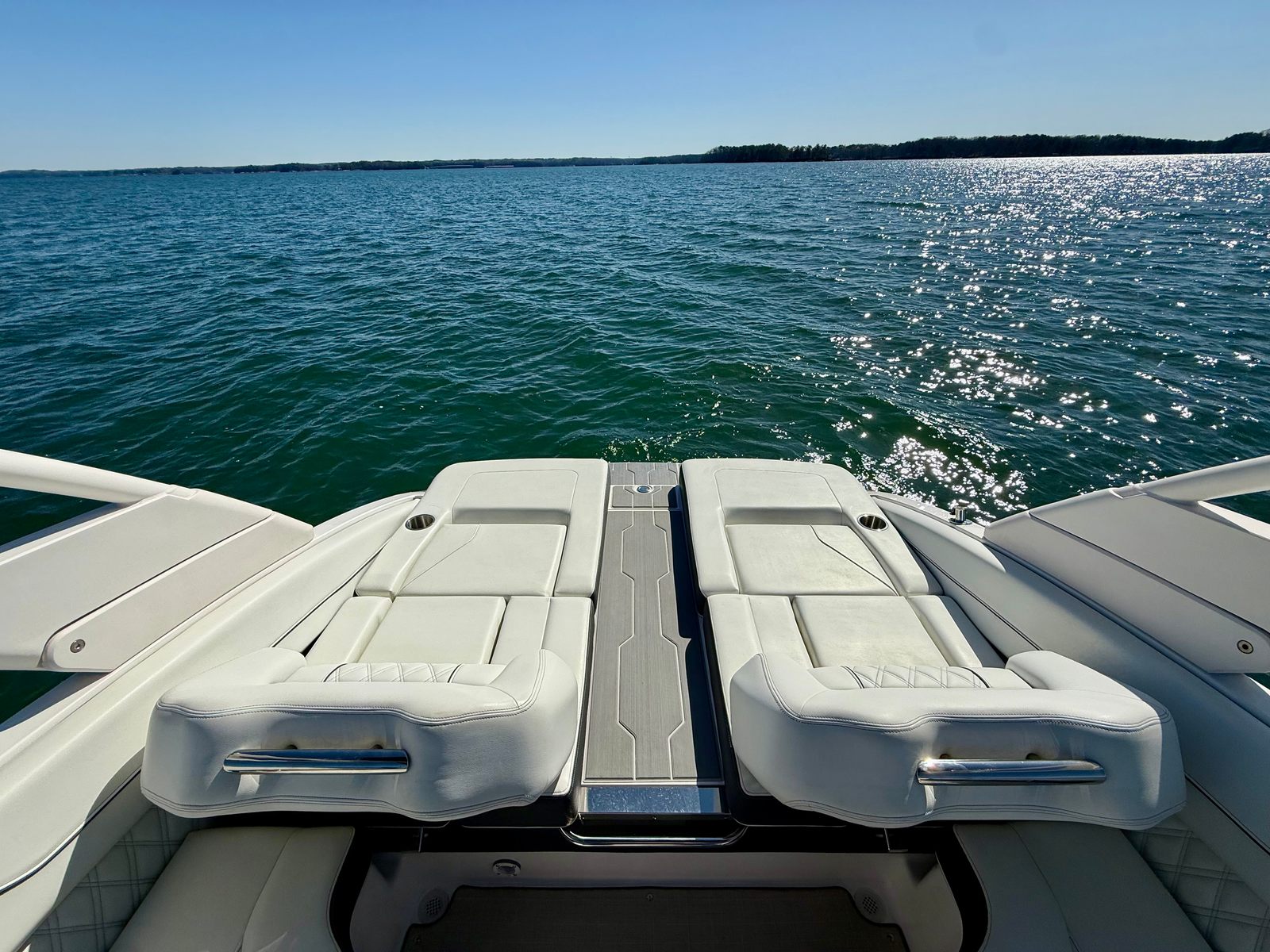The striking Mediterranean Blue, Flame Red, and Tahiti White exterior is complemented by a Titanium interior, creating a bold and modern look. The spacious cockpit with wraparound seating makes entertaining easy, while the large swim platform and transom access keep water activities simple and fun. Regal’s thoughtful design and FasTrac hull combine comfort, style, and efficient handling, giving you a premium boating experience in a 26 plus foot platform.