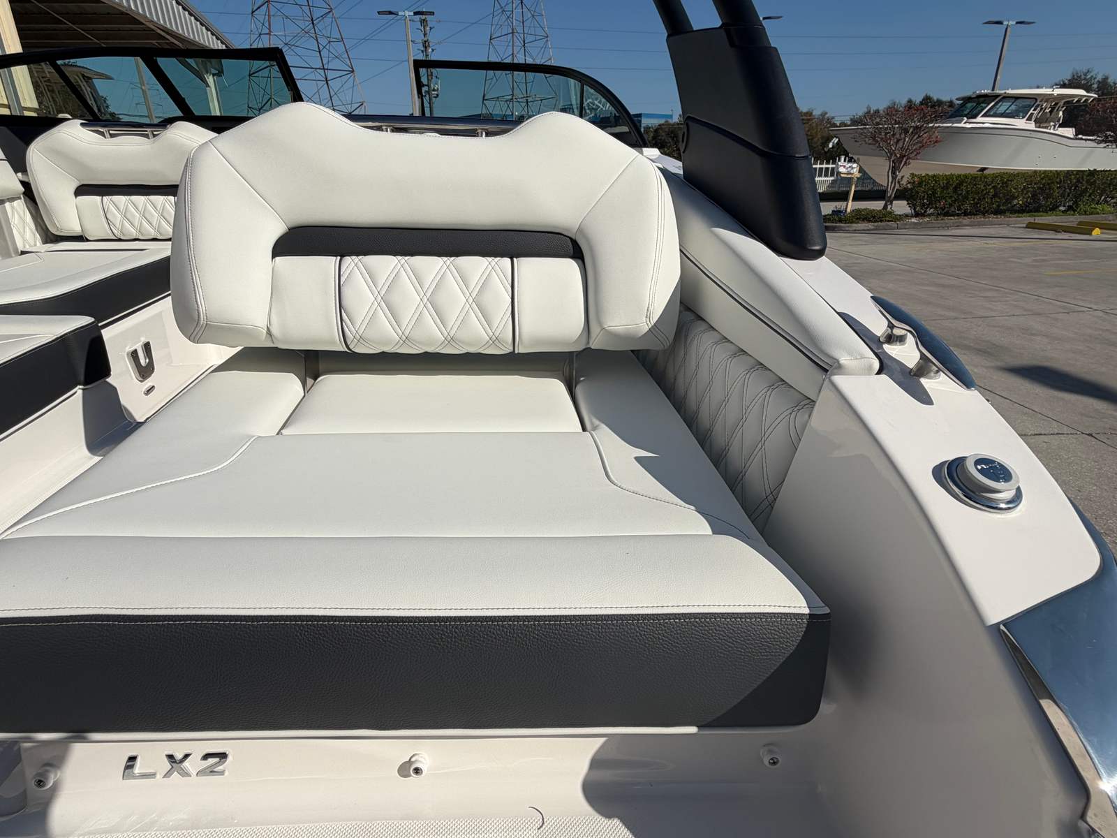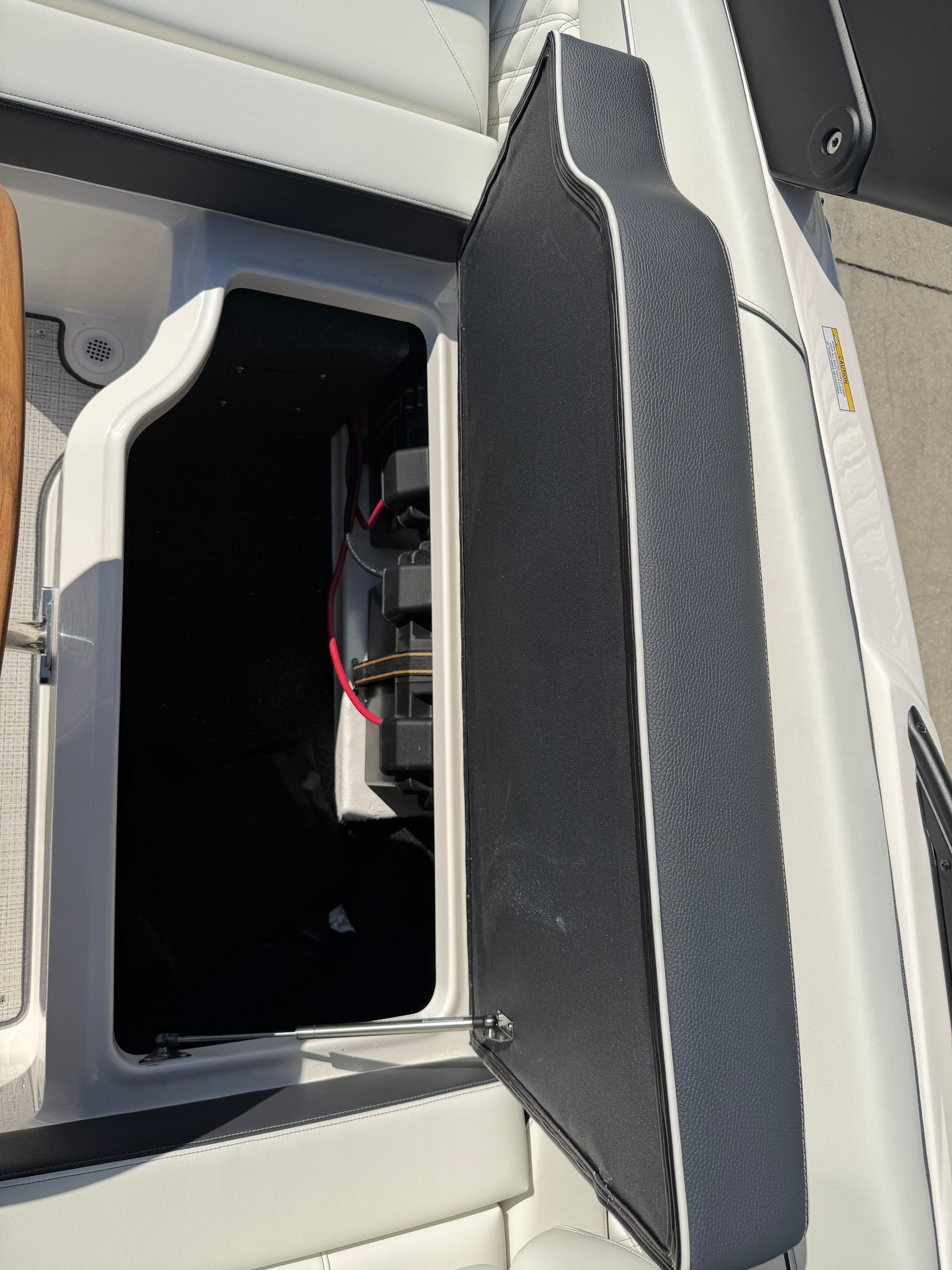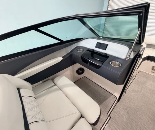 The Regal LX2 Bowrider is loaded with features designed to enhance your boating experience. The Bow & Cockpit Covers provide essential protection from the elements, keeping your boat in pristine condition when not in use. Step onto the Cockpit Seagrass Mat and enjoy the comfort and style it brings to the interior, creating a welcoming space for relaxation and socializing. The Dual Battery Switch with Tray and Cables ensures reliable power management, giving you peace of mind during extended outings. The included Battery Charger keeps your systems ready to go, so you can focus on making memories instead of worrying about maintenance.The LX2’s thoughtful design extends to every detail, from the spacious seating arrangements to the intuitive layout that maximizes both comfort and functionality. The Titanium accents and premium materials elevate the onboard atmosphere, making every journey feel like a special occasion.